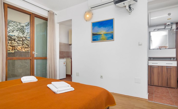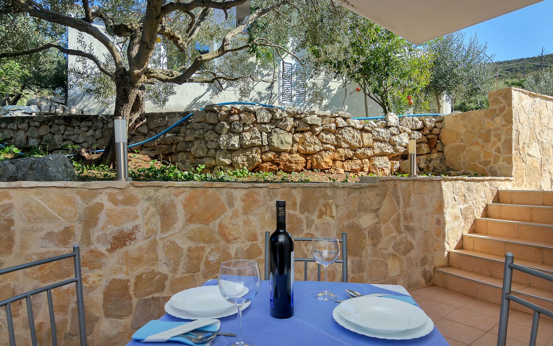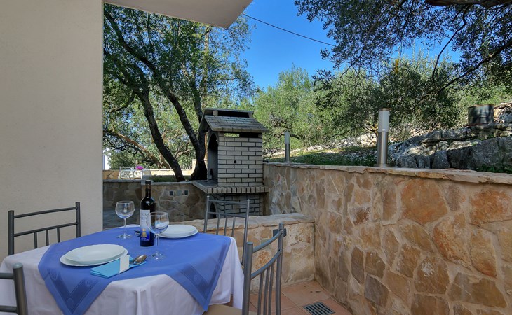 Apartment house "Cico". 6 km from the centre of Gdinj, in a quiet, sunny position, 10 m from the sea, 10 m from the beach. For shared use: property 200 m2 (fenced). Terrace (20 m2), garden furniture, barbecue. In the house: internet access, bicycle rental. Parking at the house on the premises. Shop 6 km, restaurant 40 m, bus stop 50.7 km, rocky beach, concrete beach 10 m. Please note: private mooring, on request. Motor-boat rental possible (on request, extra).