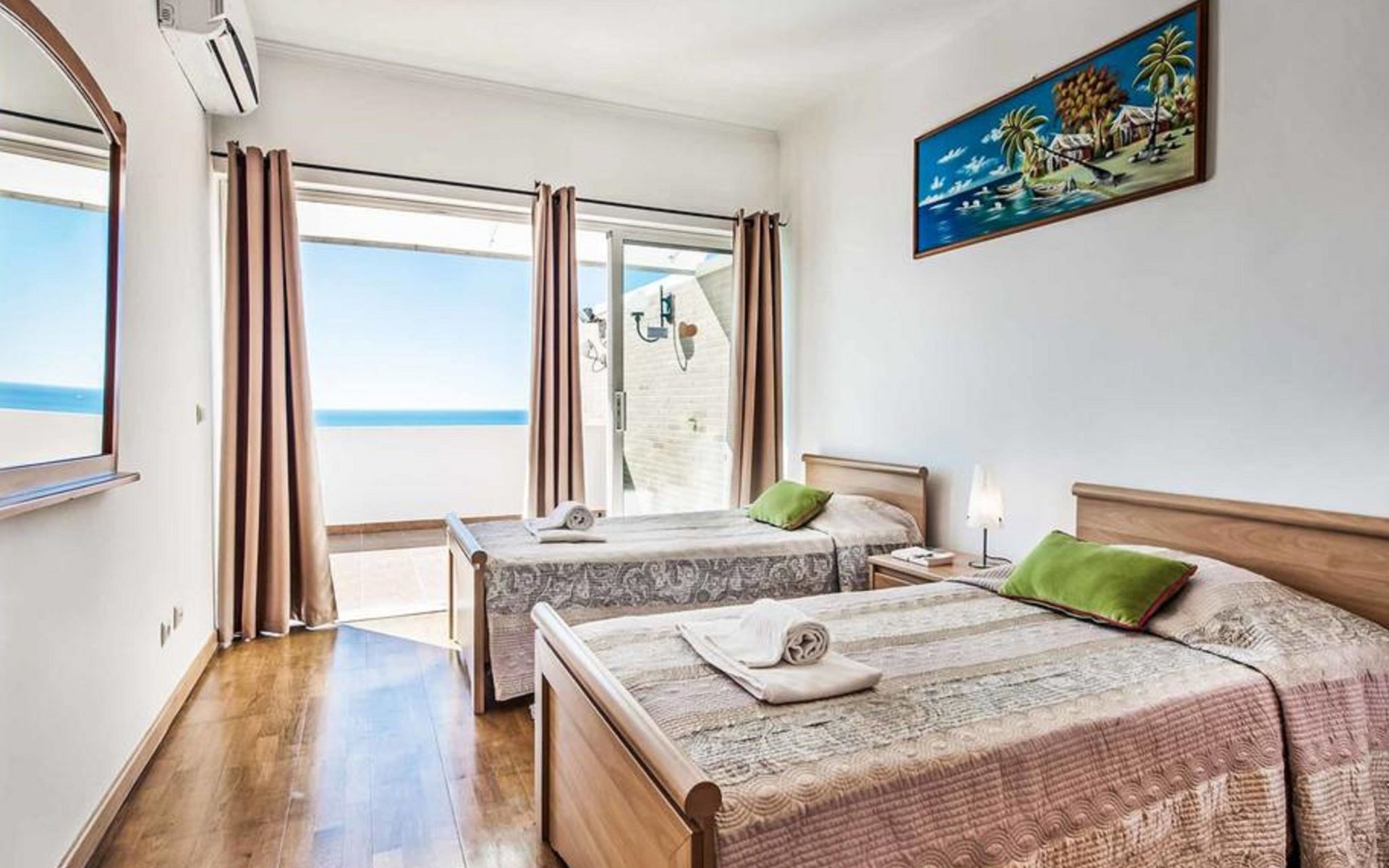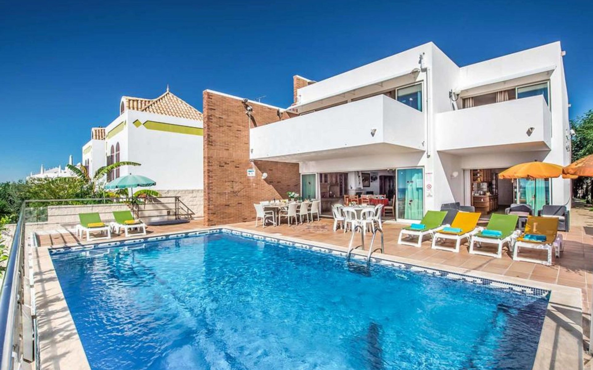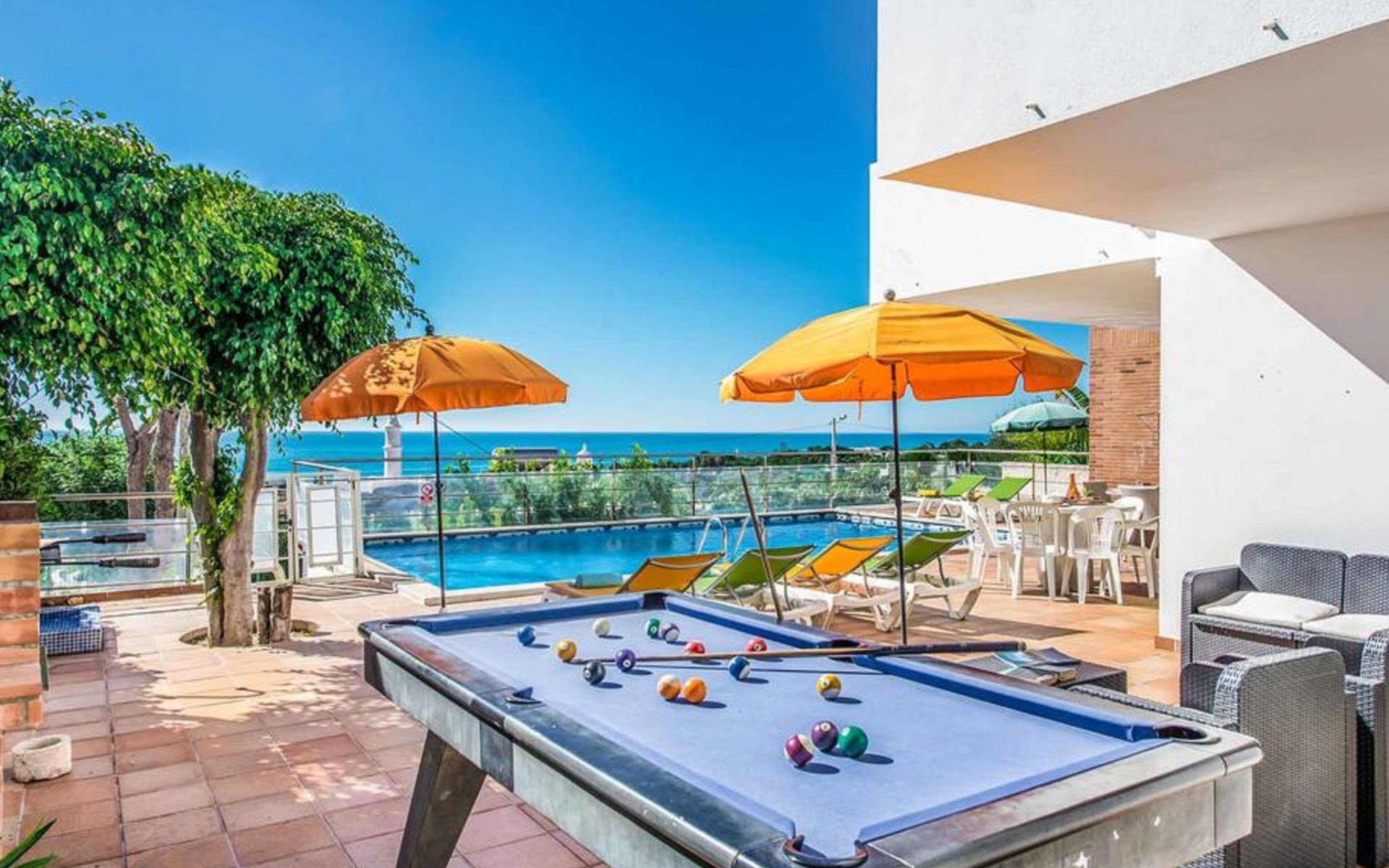 Featuring a garden, a terrace, and barbecue facilities, Villa Oceano features accommodation in Albufeira with free WiFi and sea views. Boasting free private parking, the villa is in an area where guests can engage in activities such as hiking, cycling and billiards.The air-conditioned villa consists of 4 bedrooms, a living room, a fully equipped kitchen with a fridge and a coffee machine, and 5 bathrooms with a bidet and a shower. Towels and bed linen are available in the villa.Popular points of interest near the villa include Vigia Beach, Arrifes Beach and Praia de Sao Rafael. The nearest airport is Faro, 48 km from Villa Albuar, and the property offers a paid airport shuttle service.