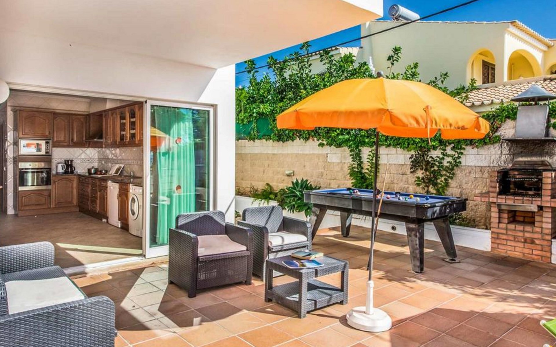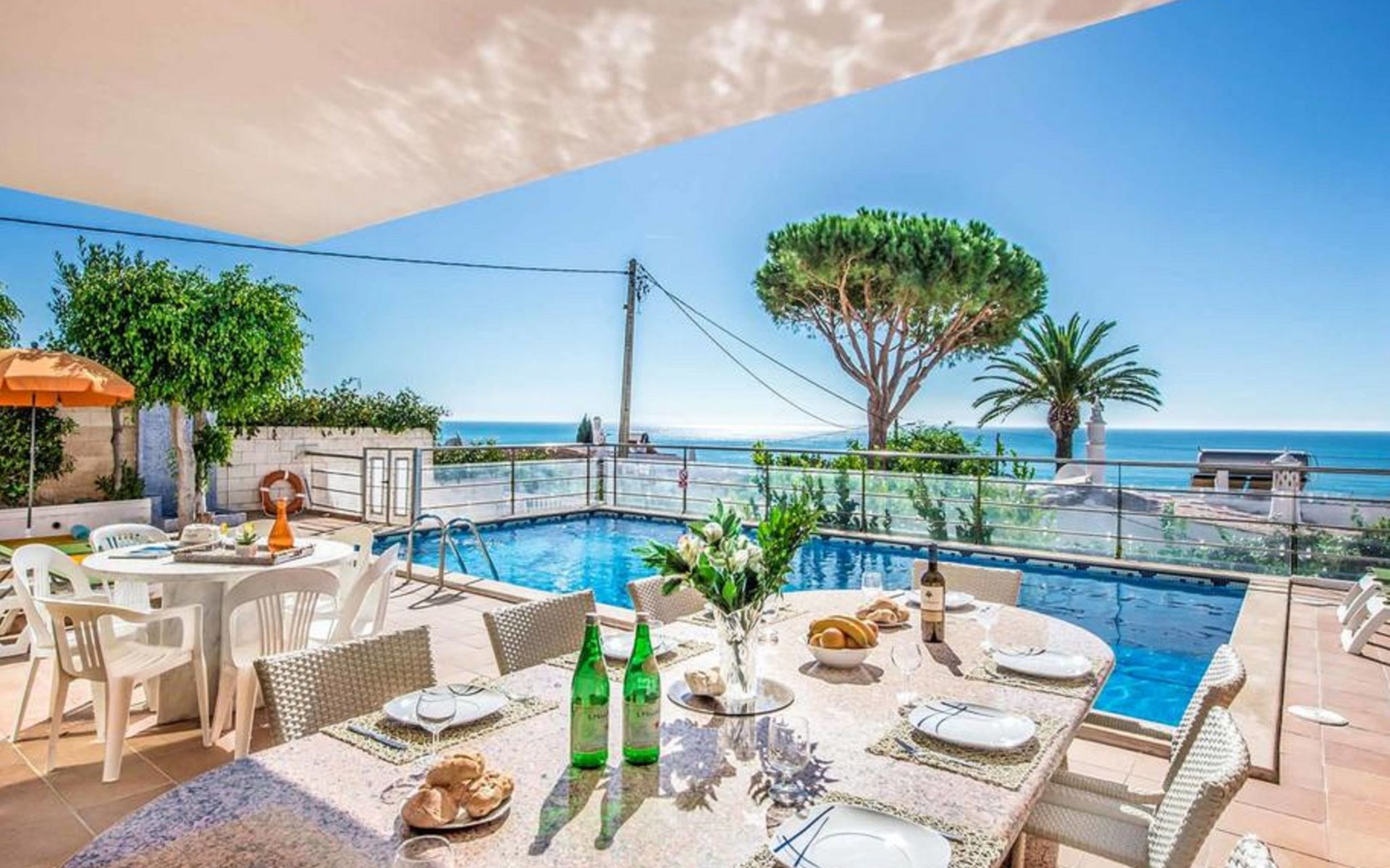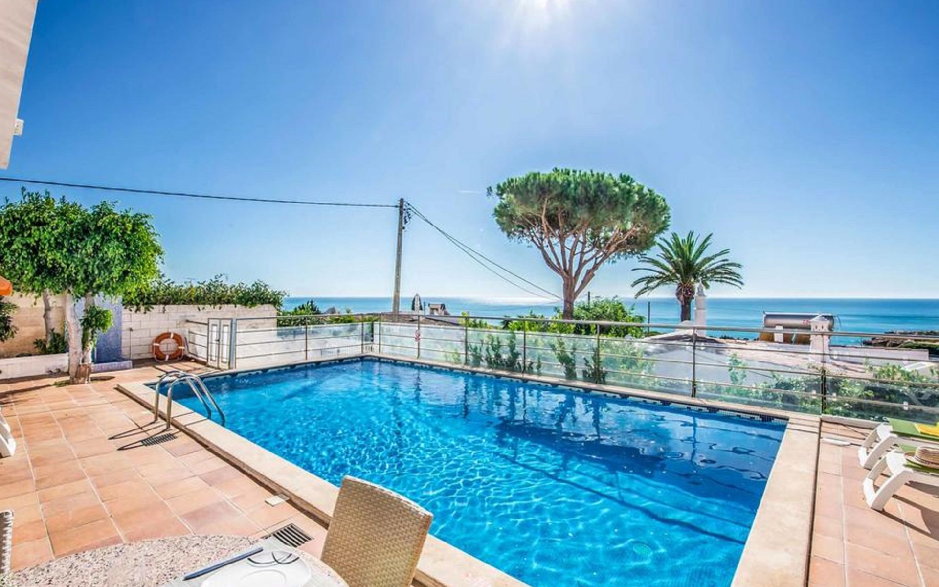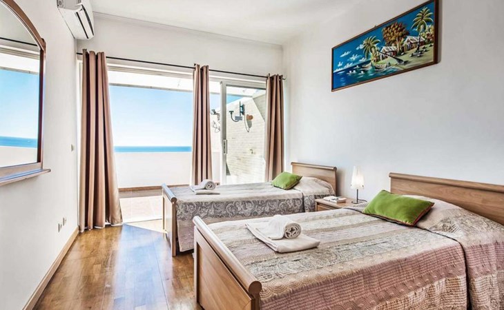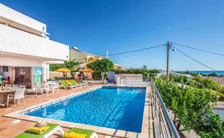 Villa 'Oceano' with Sea View, Pool, Garden & Wi-Fi Overlooking the sea, the villa 'Albuar' impresses guests with its fantastic views.This 2-storey property consists of a living room, a fully-equipped kitchen with dishwasher, 4 bedrooms and 4 bathrooms as well as an additional toilet and can therefore accommodate 8 people.Additional amenities include high-speed Wi-Fi, air conditioning, a washing machine, a dryer as well as satellite TV.A table tennis game and a pool table are also available on the property.A baby cot and a high chair are available.The villa features a private outdoor space including a heated pool, a garden and a BBQ.The villa also boasts an open terrace where you can chill out in the evening.Hop in your pool for an afternoon of family fun while enjoying fantastic views over the sea!Bedroom 1 has 2 single beds. Bedroom 2 has 2 single beds. Bedroom 3 has 1 queen-size bed. Bedroom 4 has 1 double bed.Walking/driving distance to nearest restaurant: 174m.Walking/driving distance to beach: 750m Praia dos Arrifes.Walking/driving distance to nearest bar: 531m.Walking/driving distance to nearest cafe: 1.46km.Walking/driving distance to nearest supermarket: 551m.Distance to the airport: 46.7km Faro Airport.2 parking spaces are available on the property. Free parking is available on the street.Pets are allowed upon request.Wi-Fi is suitable for video calls.Towels are included in the price.Bed linen is included in the price.