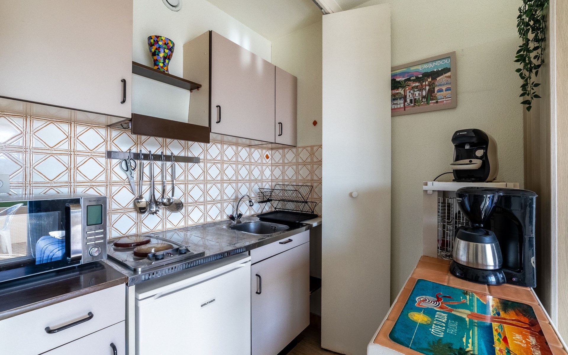 Residence "Ormarine", 5 storeys. In the centre of Le Lavandou, 300 m from the sea, 300 m from the beach, east facing position. For shared use: property (fenced) with trees. In the complex: lift. Shop, grocery, supermarket 100 m, shopping centre 200 m, bakery 100 m, bus stop "Lavandou Gare routière" 800 m, sandy beach "Le Lavandou" 300 m. Minigolf 500 m. Nearby attractions: Saint Tropez 40 km, Magic World 26 km, Parc Olbius Riquier 21 km, Le Jardin des Méditerranées 15 km. Hiking paths: Sentiers du Littoral. Guarded residence. Residence with electric gates. The keys‘ handover takes place by the agency Interhome in Le Lavandou.