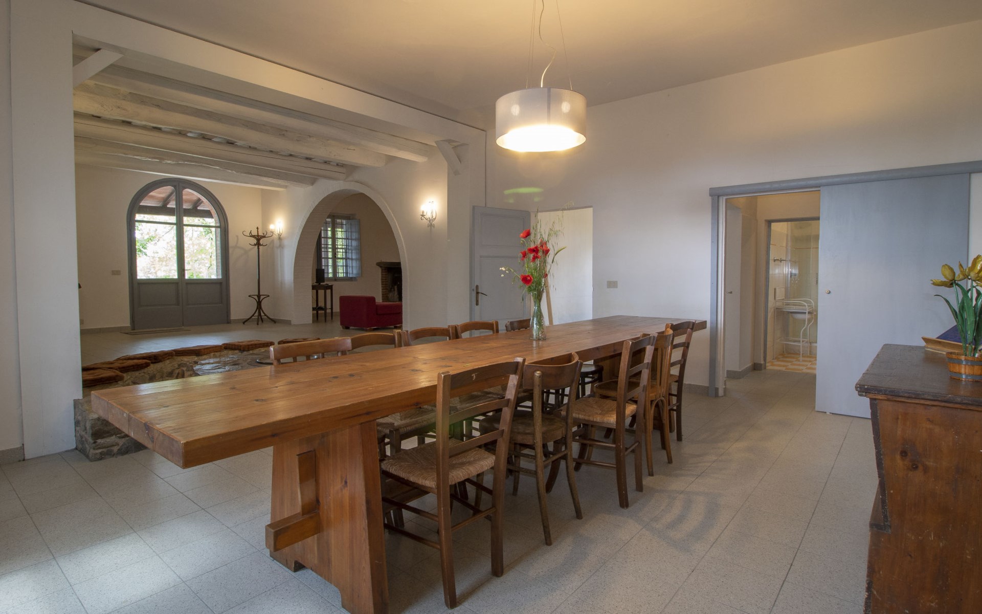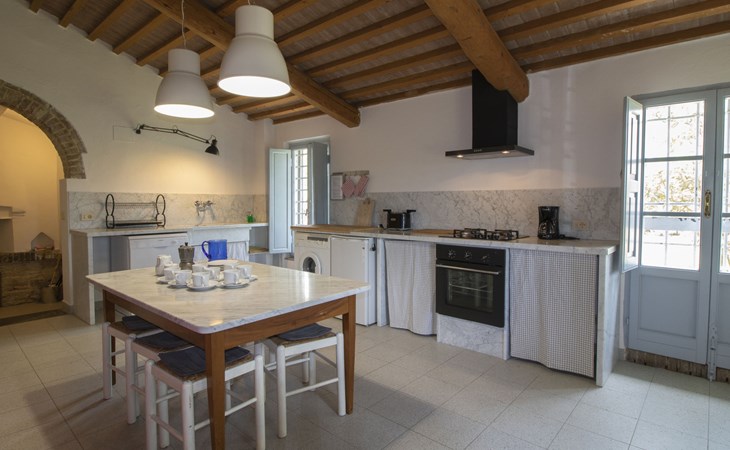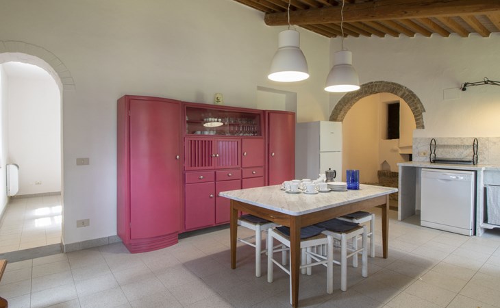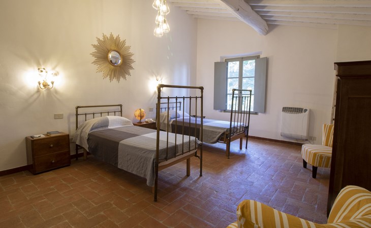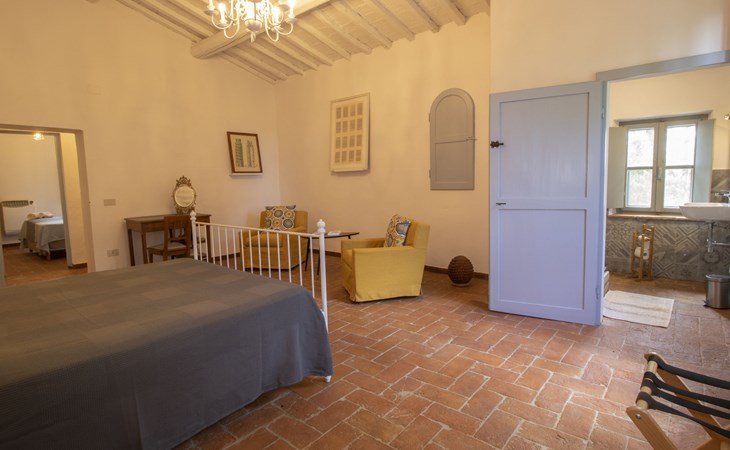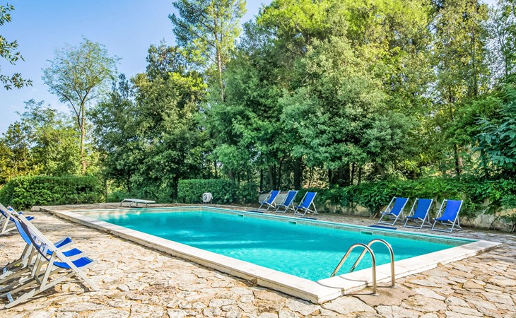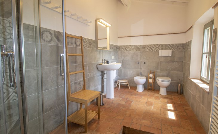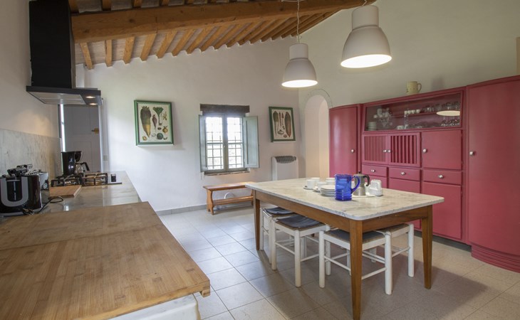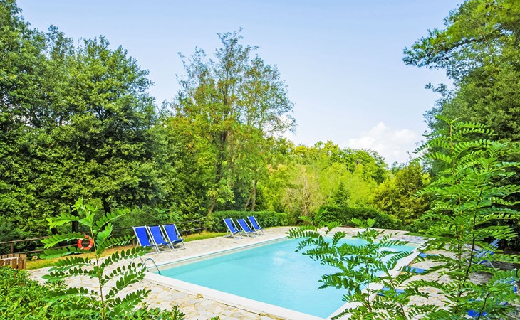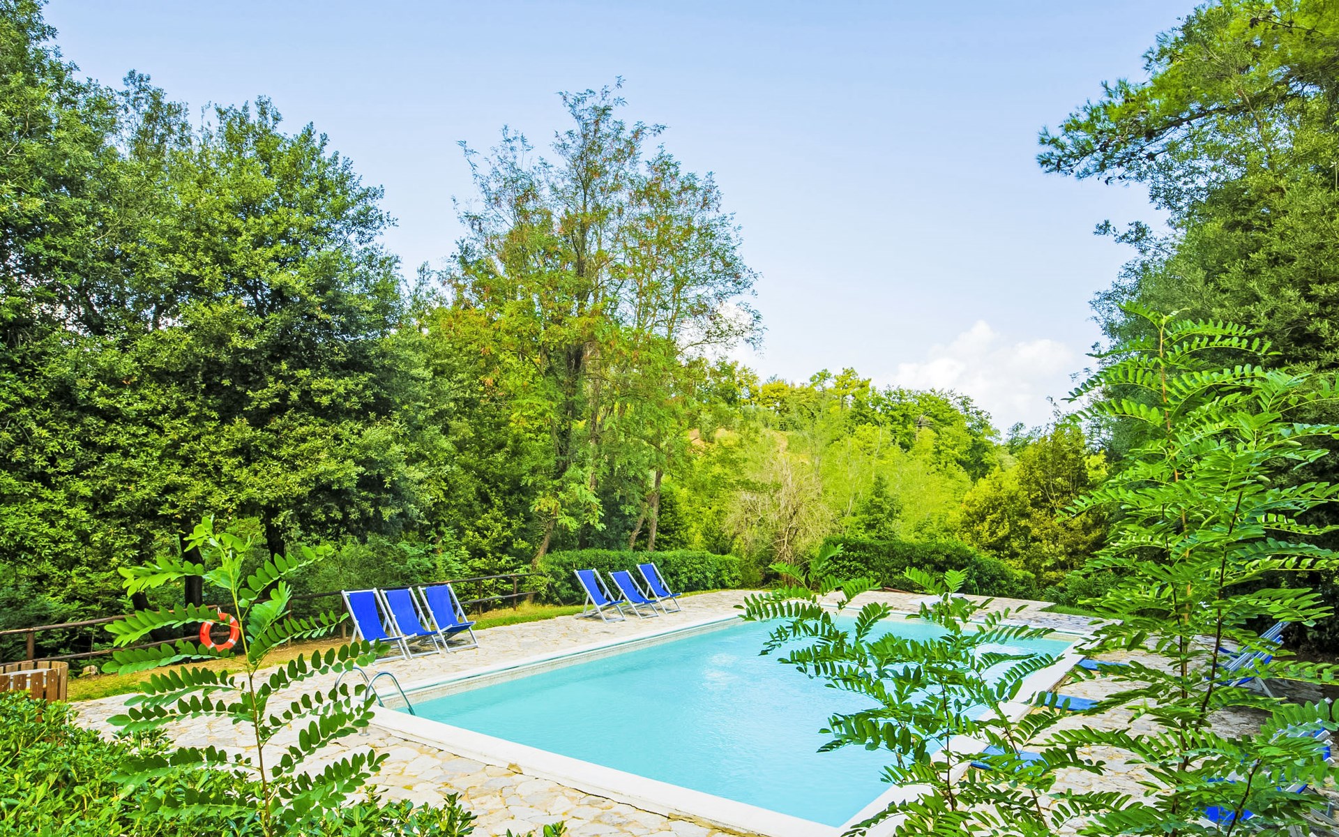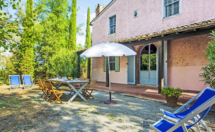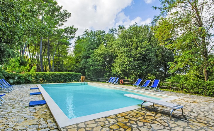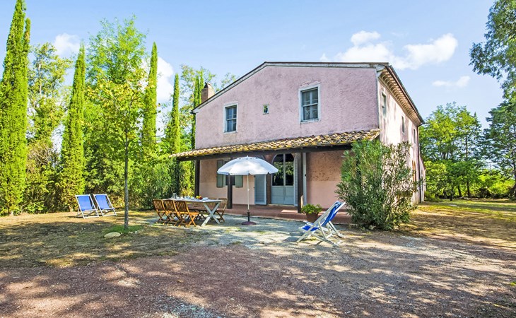 Lorenzana 12 km from Casciana Terme: The house we propose is located within a farm where there are 2 other houses, completely independent of each other. The pool is located from Casa Bianca about 300 m single-family house "Bianca", detached, surrounded by trees and vineyards. 3 houses in the resort. 2 km from the centre of Lorenzana, 30 km from the centre of Pisa, 80 km from the centre of Firenze, in a quiet, sunny, elevated position on top of a hill, 20 km from the sea, in the countryside. For shared use: property 200 ha, swimming pool (14 x 7 m, depth 100 - 230 cm, seasonal availability: 13.May. - 30.Sep.). Shower/WC in the pool area, tennis (1 x hard court), table tennis, garden furniture, barbecue. In the house: central heating system, heating to be paid on the spot, heating available only from 01.Nov. - 07.Apr.. Motor access to the house (500 m via unmade road). Parking at the house. Grocery 2 km, restaurant 2 km, bus stop 2.5 km, sandy beach 22 km, rocky beach 22 km, thermal baths 12 km. Golf course (18 hole) 26 km, tennis 1 km. Nearby attractions: Livorno 28 km, Castellina Marittima 23 km, San Miniato 40 km, Volterra 45 km, Lucca 65 km, Viareggio 68 km.