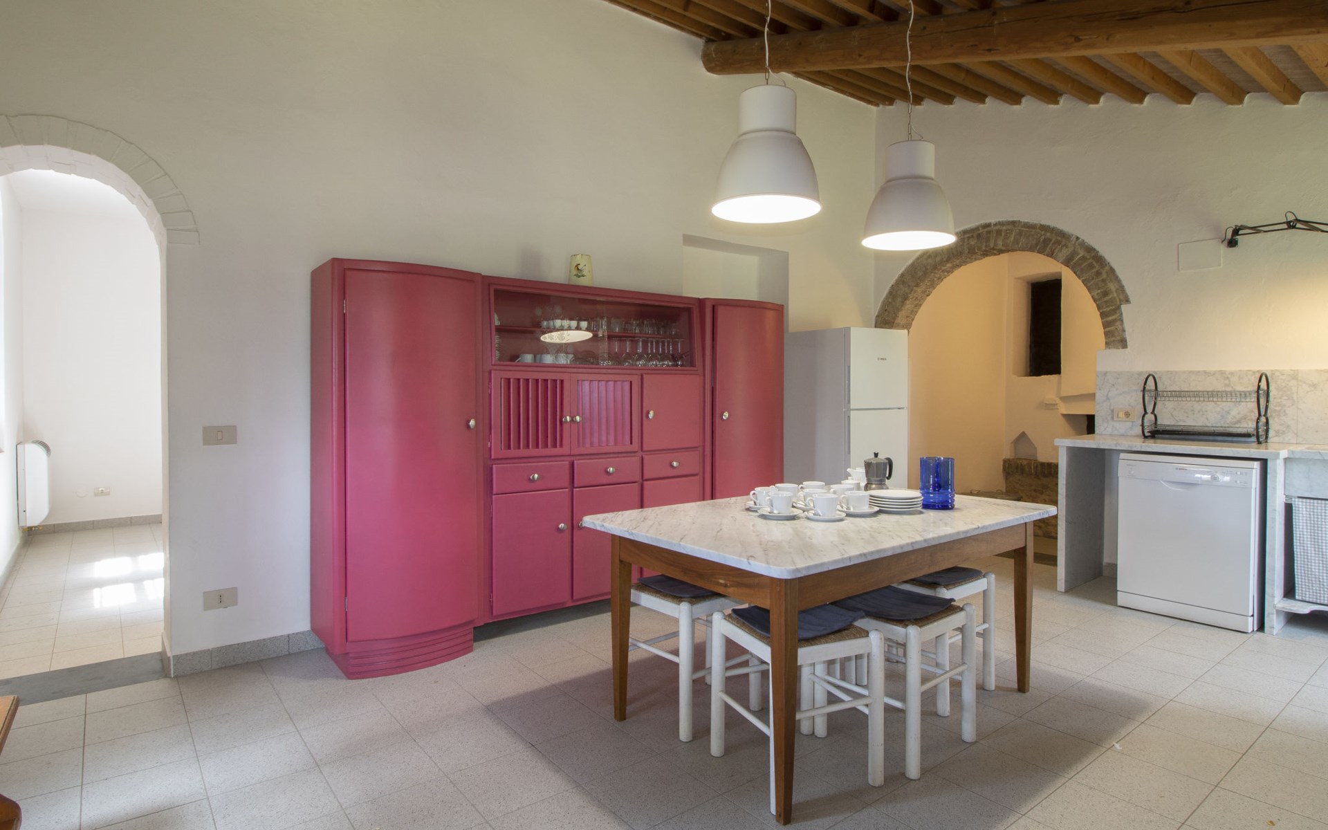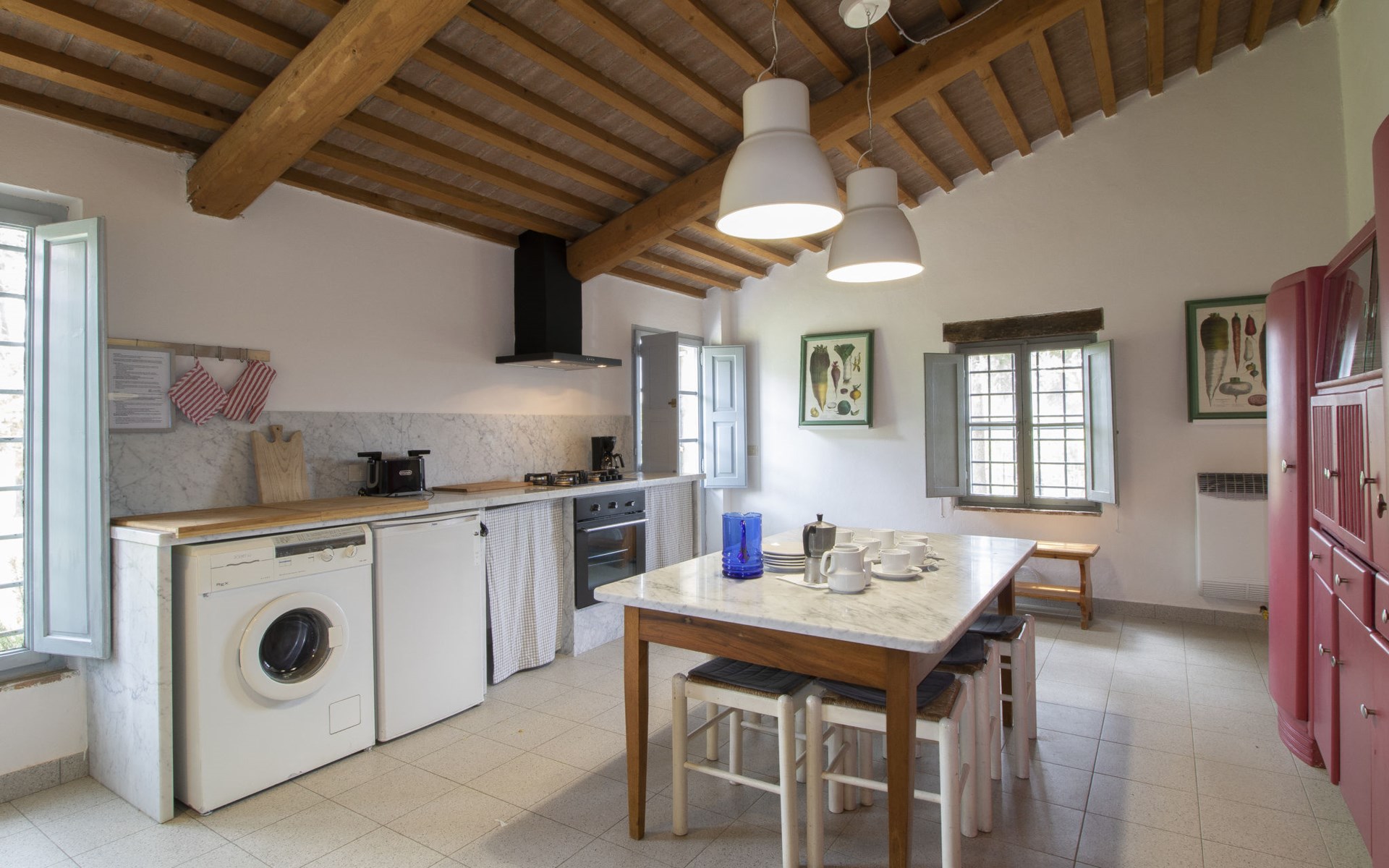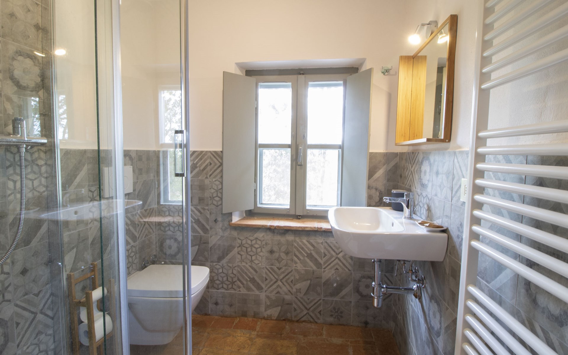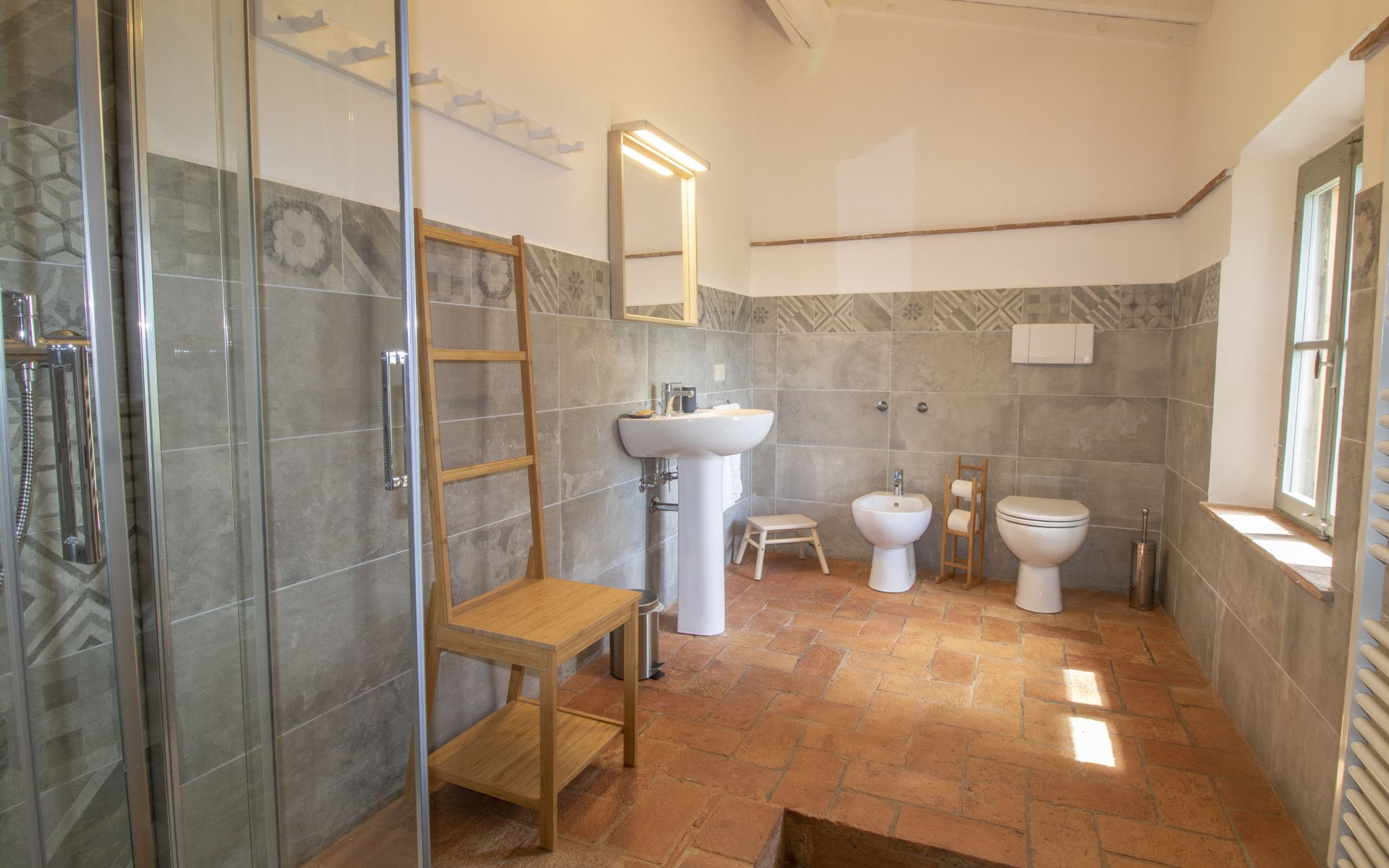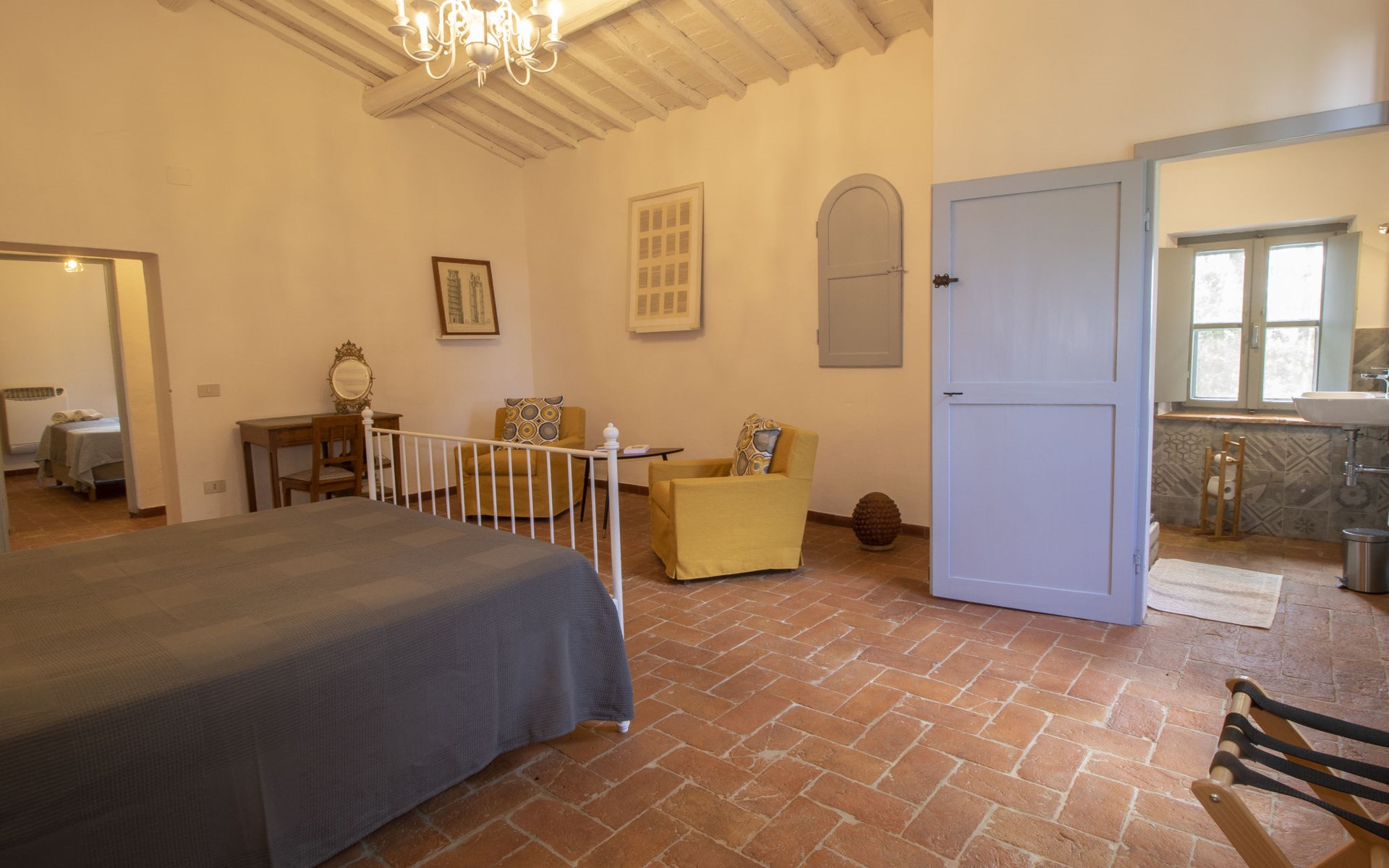 Lorenzana 12 km from Casciana Terme: The house we propose is located within a farm where there are 2 other houses, completely independent of each other. The pool is located from Casa Bianca about 300 m single-family house "Bianca", detached, surrounded by trees and vineyards. 3 houses in the resort. 2 km from the centre of Lorenzana, 30 km from the centre of Pisa, 80 km from the centre of Firenze, in a quiet, sunny, elevated position on top of a hill, 20 km from the sea, in the countryside. For shared use: property 200 ha, swimming pool (14 x 7 m, depth 100 - 230 cm, seasonal availability: 13.May. - 30.Sep.). Shower/WC in the pool area, tennis (1 x hard court), table tennis, garden furniture, barbecue. In the house: central heating system, heating to be paid on the spot, heating available only from 01.Nov. - 07.Apr.. Motor access to the house (500 m via unmade road). Parking at the house. Grocery 2 km, restaurant 2 km, bus stop 2.5 km, sandy beach 22 km, rocky beach 22 km, thermal baths 12 km. Golf course (18 hole) 26 km, tennis 1 km. Nearby attractions: Livorno 28 km, Castellina Marittima 23 km, San Miniato 40 km, Volterra 45 km, Lucca 65 km, Viareggio 68 km.