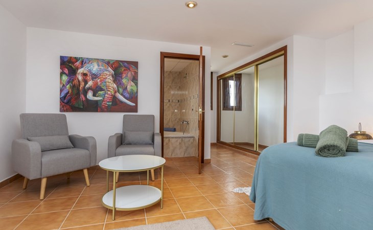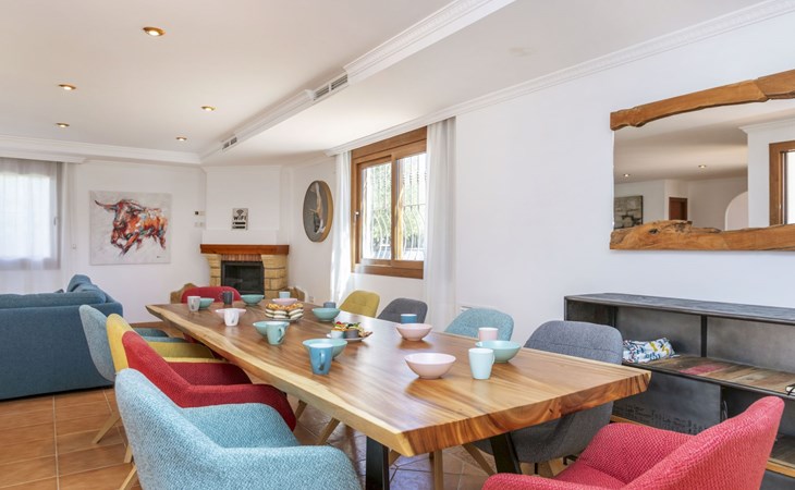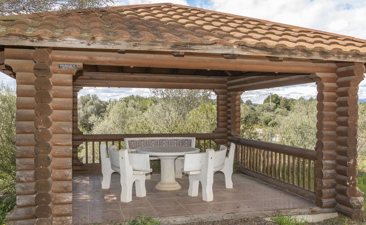 Sant Jordi: Large villa "Hacienda Azahar", 2 storeys. In a secluded, quiet, sunny position, 10 km from the sea, 10 km from the beach. Private: natural state property (fenced), swimming pool angular (58 m2, seasonal availability: 01.May. - 30.Sep.). Paddling pool, outdoor shower, arbour, barbecue. In the house: air conditioning. Parking. Bus stop "Vinaròs - Calle 29 Septiembre" 13 km, railway station "Vinaròs" 14 km, sandy beach "Playa Vinaròs" 15 km. Golf course (18 hole) 6 km. Nearby attractions: Peñiscola 30 km, Ciutat de les Arts i les Ciències 160 km, Sant Mateu 24 km, Delta del Ebro 42 km, Port Aventura 105 km, Morella 53 km. Hiking paths: Parque Natural Sierra de Irta 35 km, Foradada del Montsià 30 km. Please note: car recommended, no lift. Groups of teenagers on request only. Motorway close by 15 km from the property.