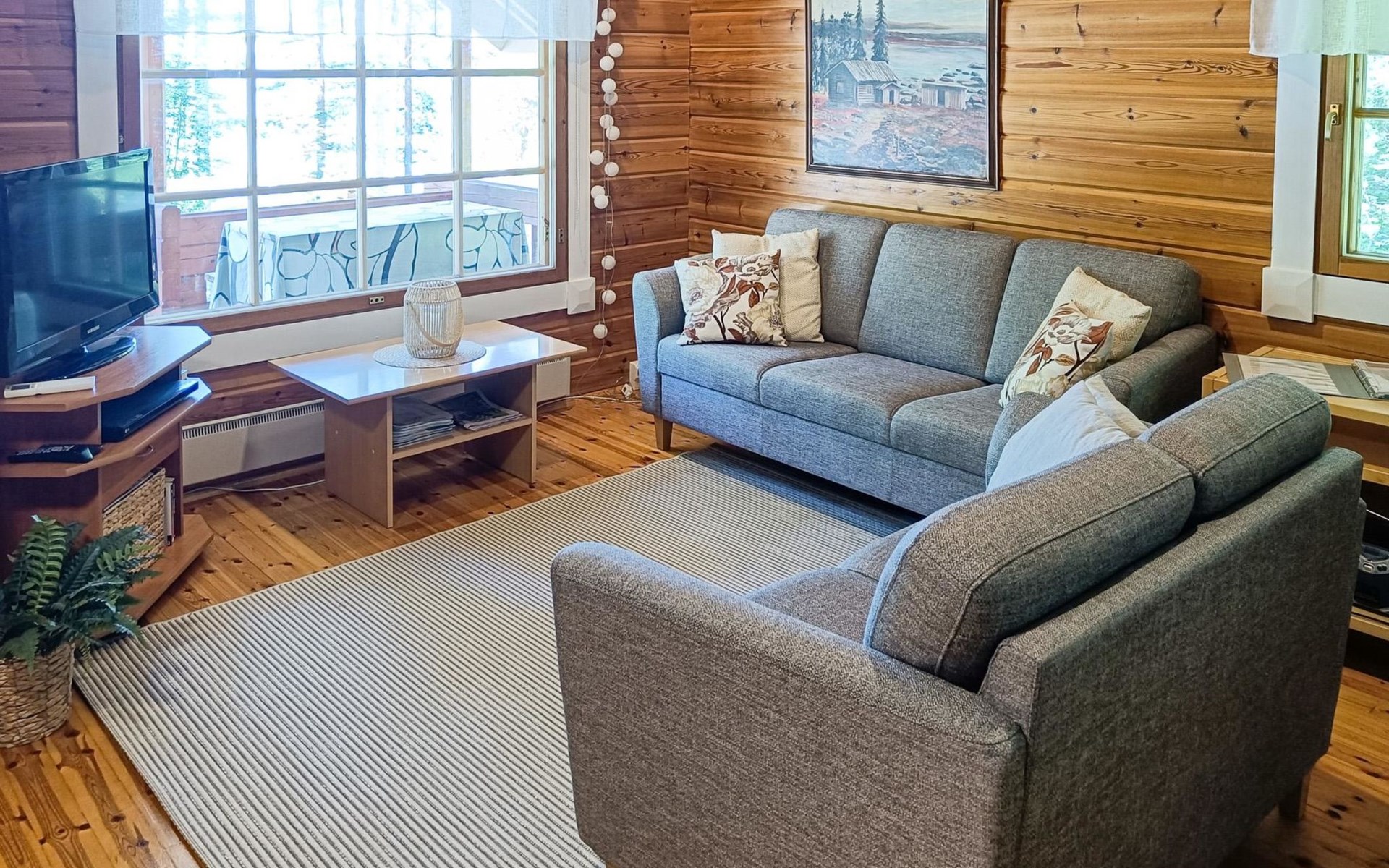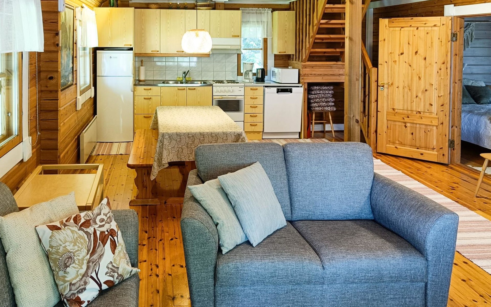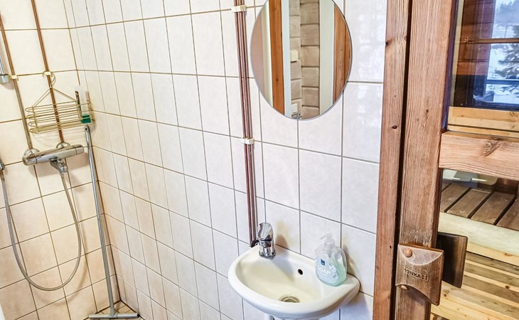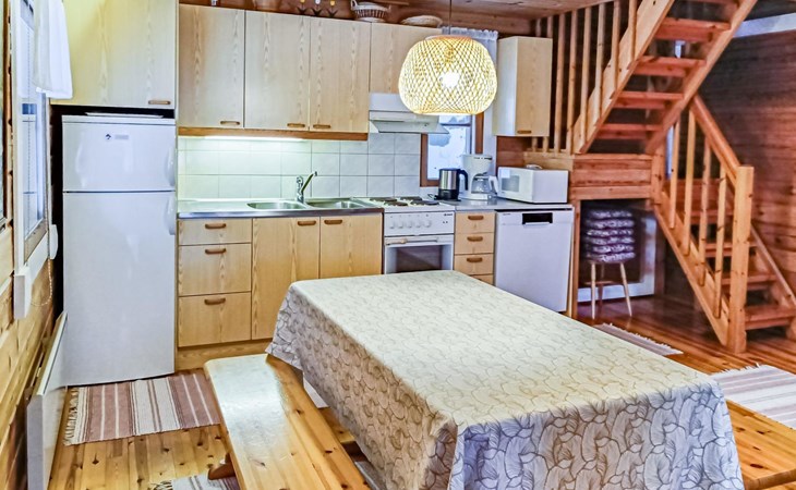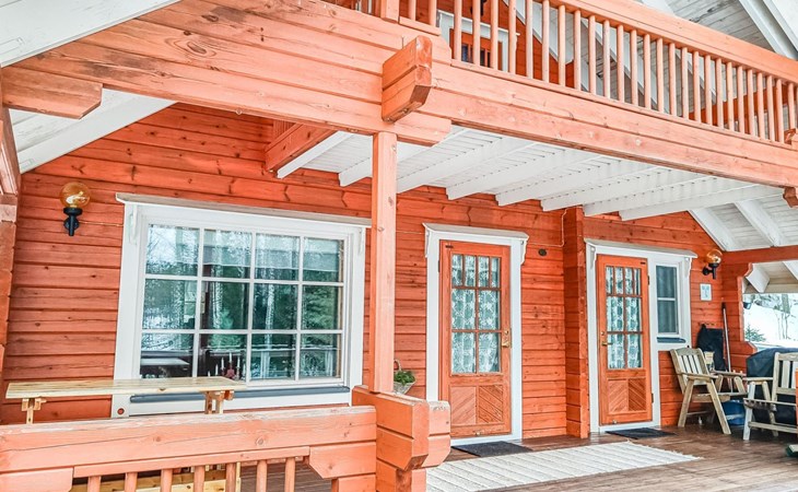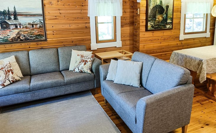 Log cabin 1997, living room/kitchen, bedroom with double bed, washing room - toilet, sauna, open veranda, terrace.