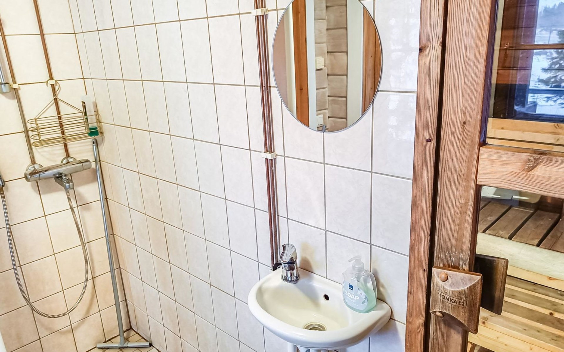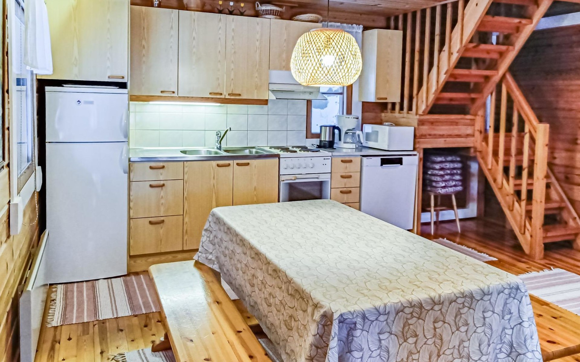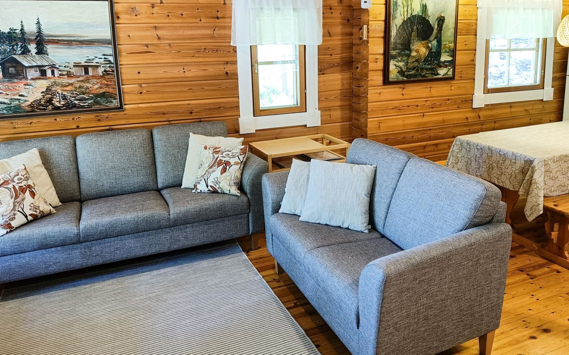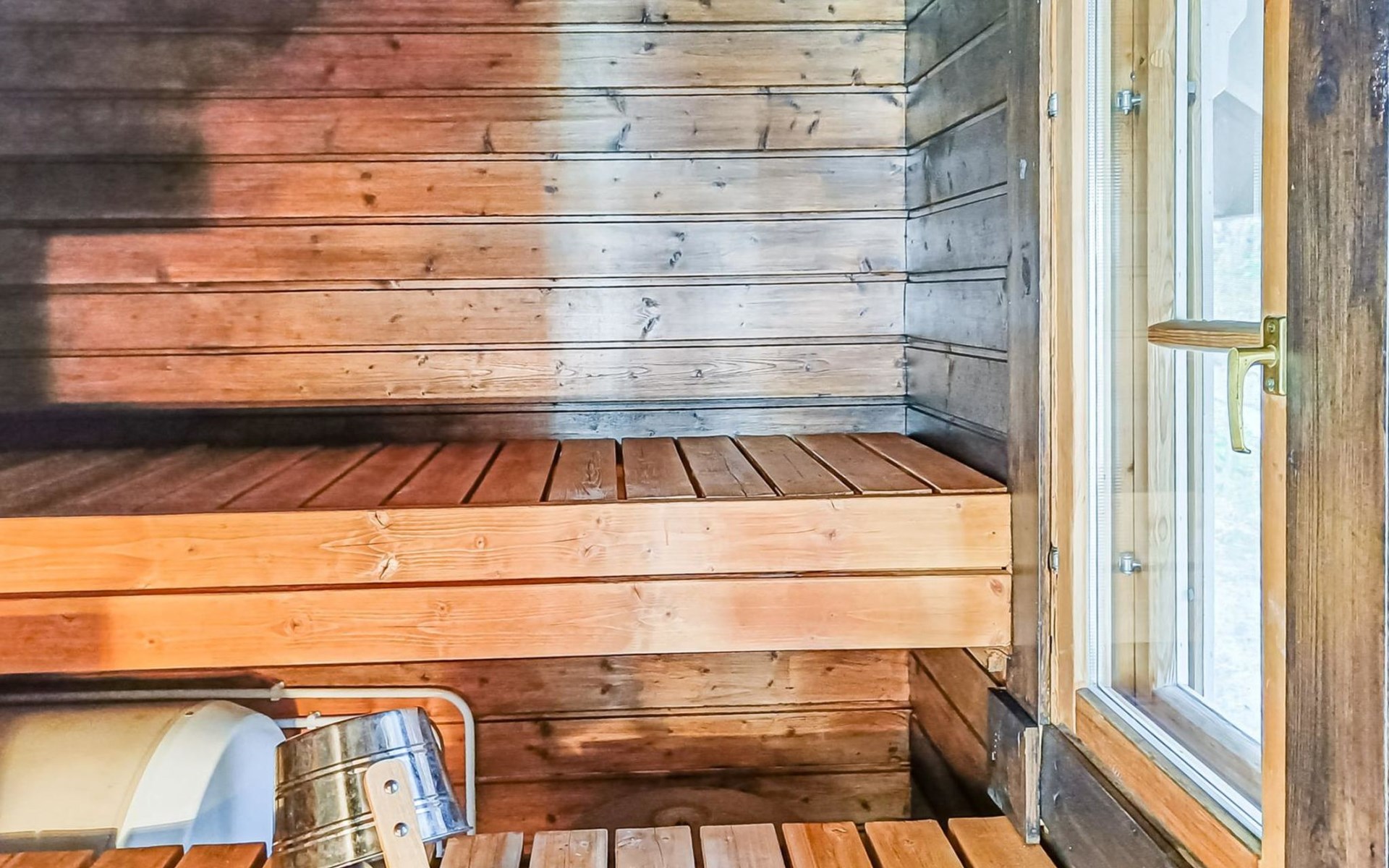 Log cabin 1997, living room/kitchen, bedroom with double bed, washing room - toilet, sauna, open veranda, terrace.