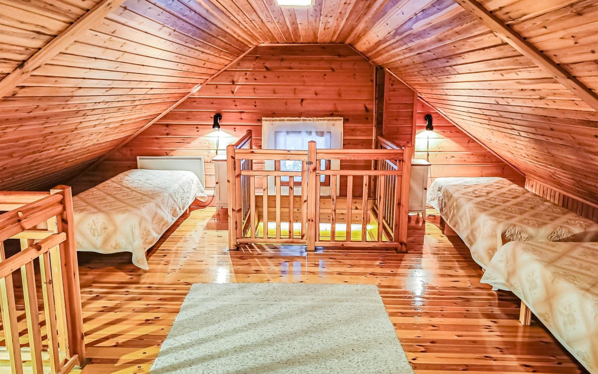 Upstairs: 3 beds, balcony.