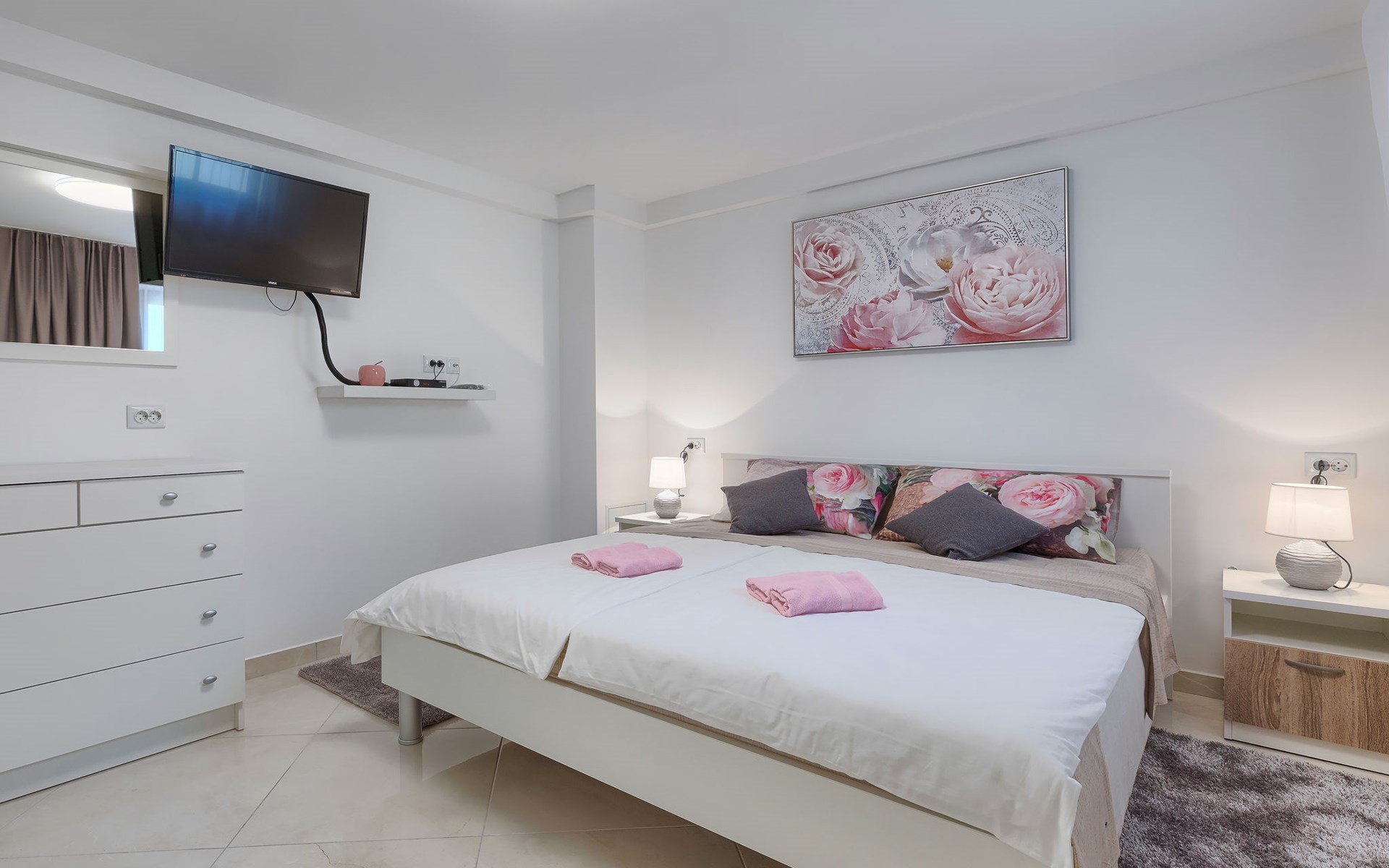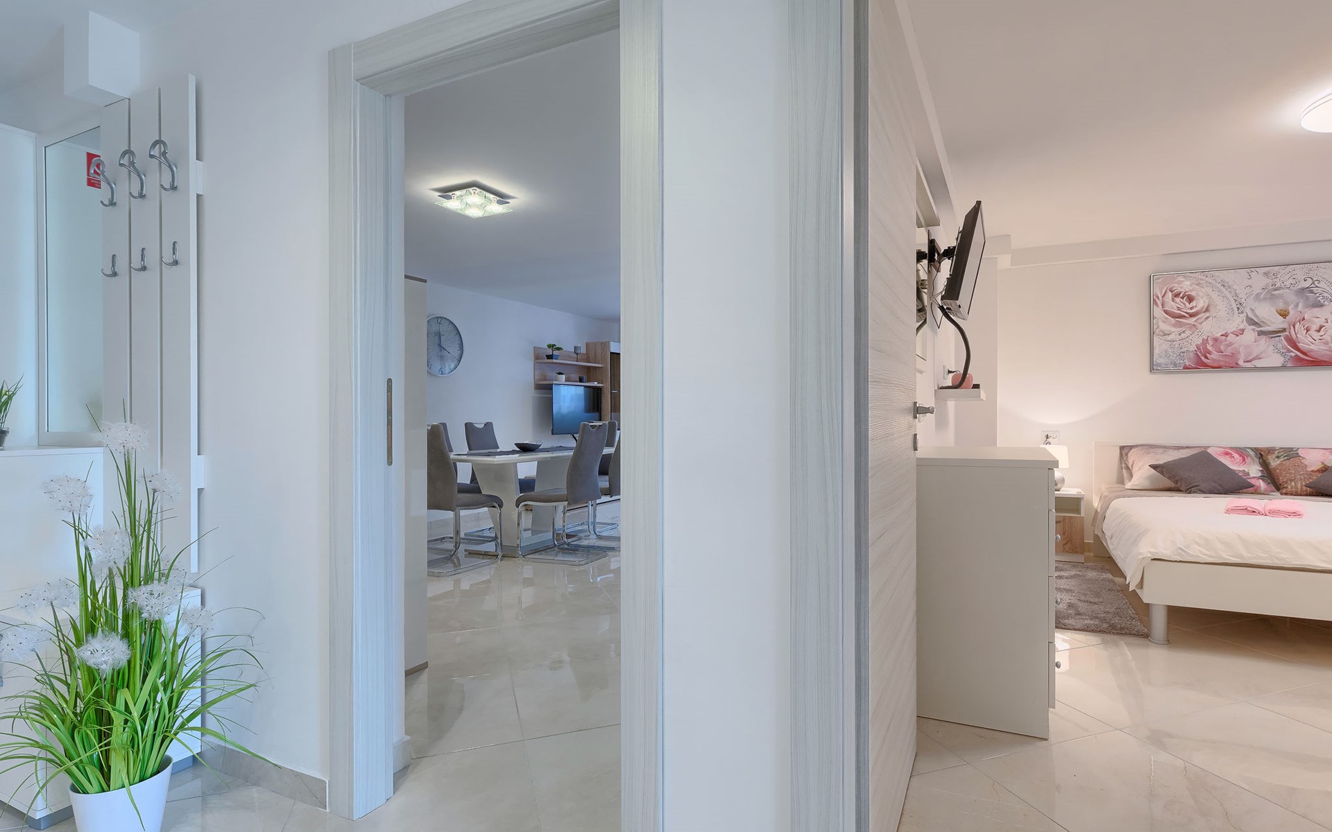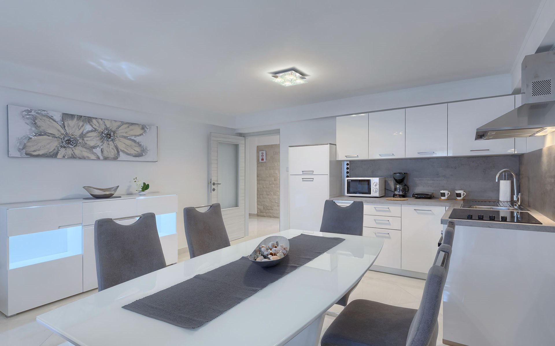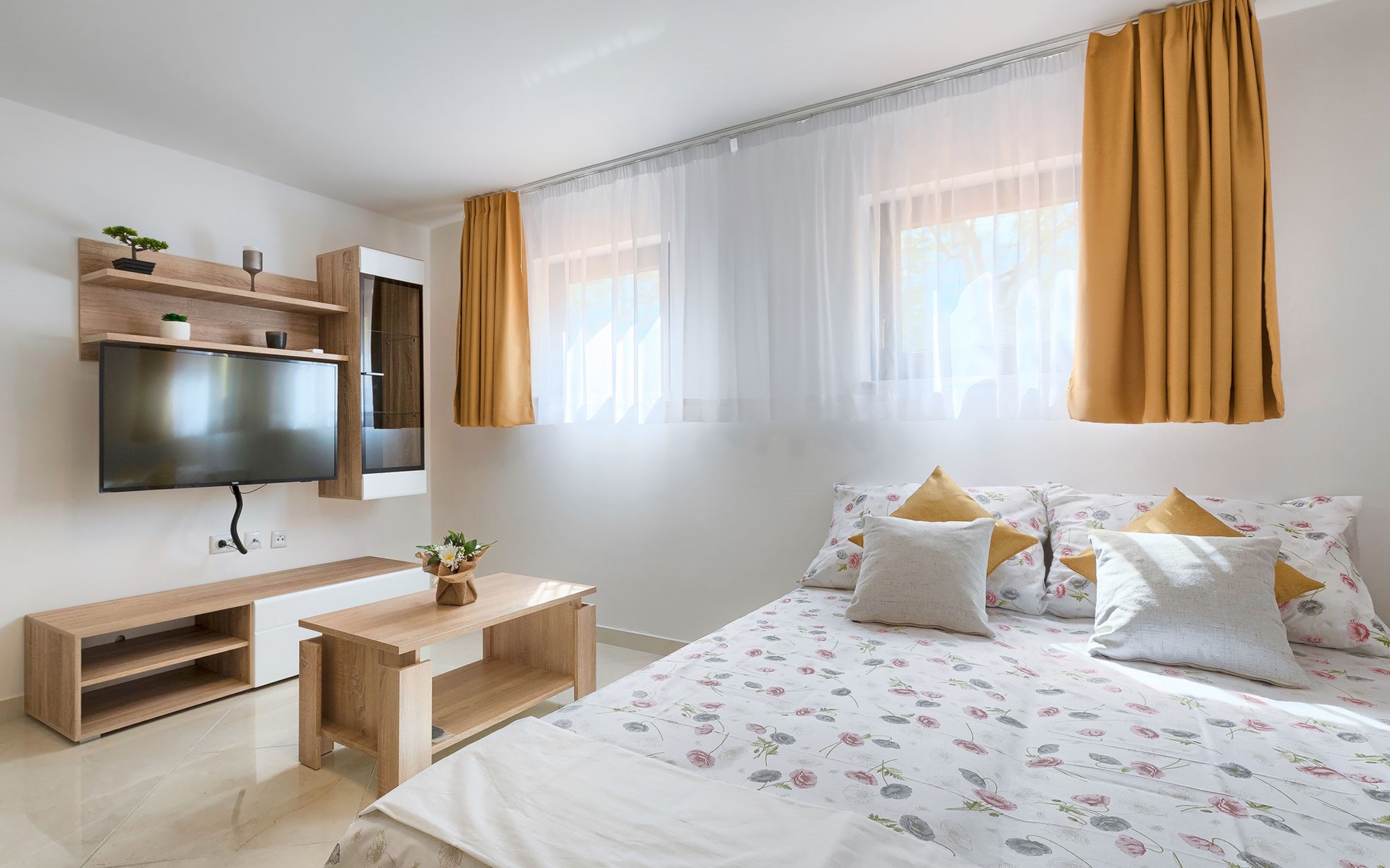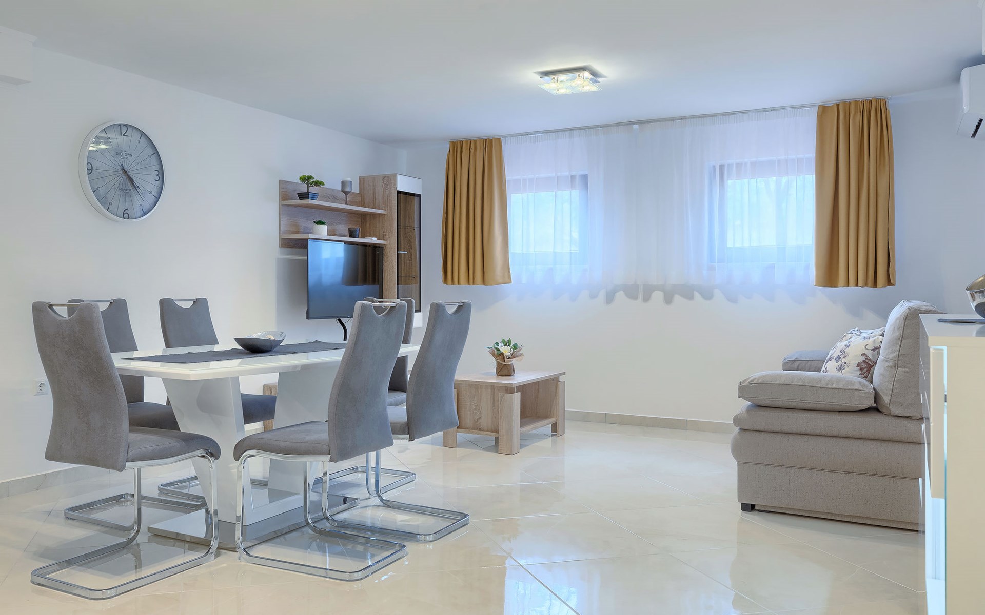 Galižana 5 km from Pula: Beautiful 2-family house "Meden". 500 m from the centre of Galižana, 5 km from the sea. For shared use: property 1'000 m2 (fenced), beautiful garden with lawn and plants. Terrace (20 m2), garden furniture, barbecue. In the house: internet access, trampoline. Parking at the house on the premises. Shop 400 m, supermarket 3 km, restaurant 3 km, bus stop 400 m, pebble beach 5 km, rocky beach 5 km.