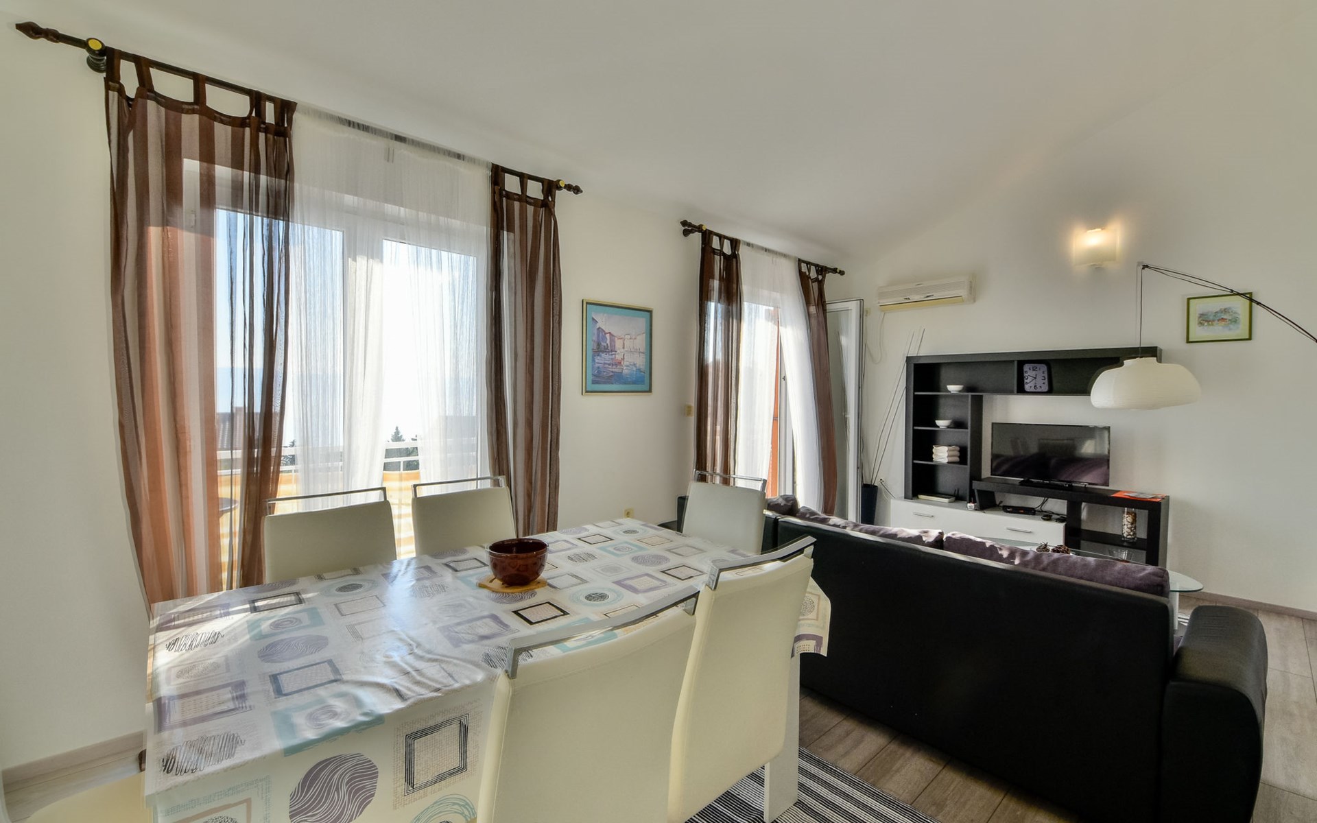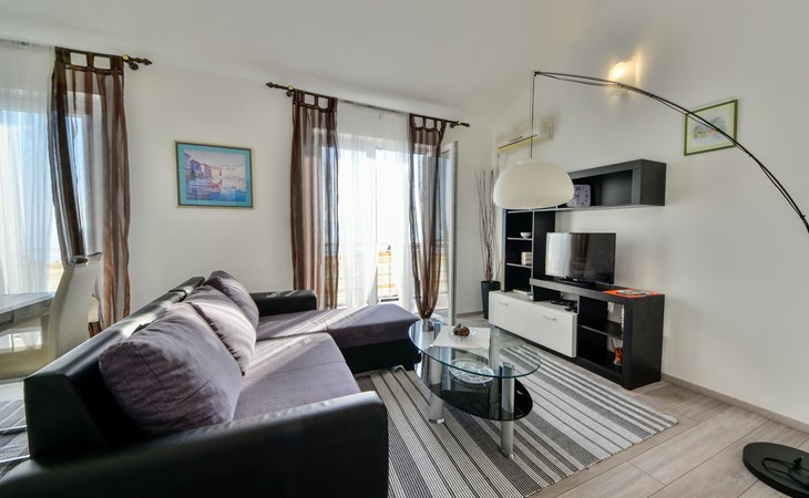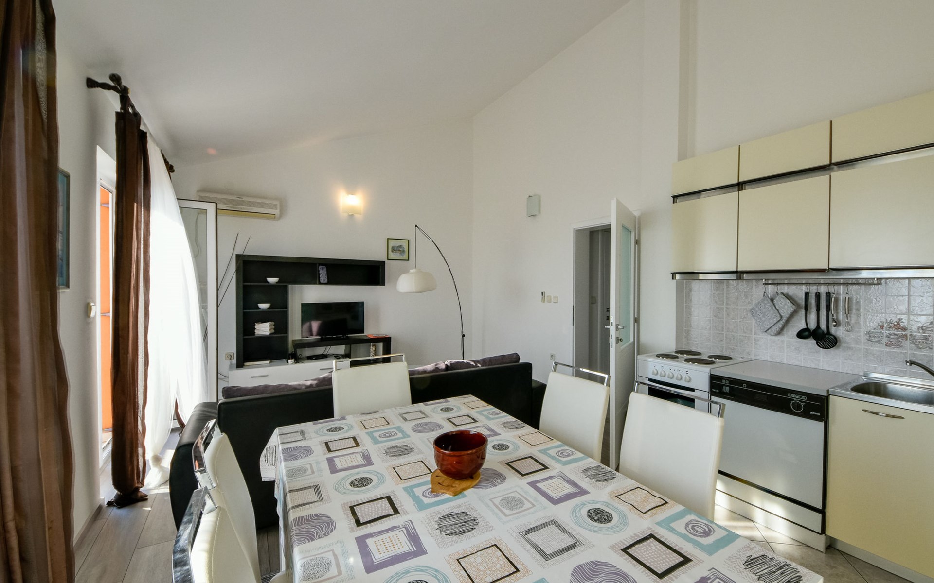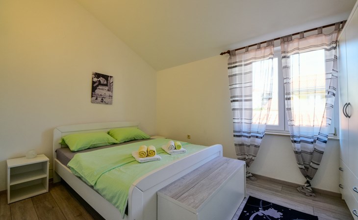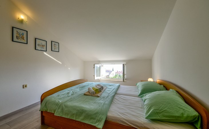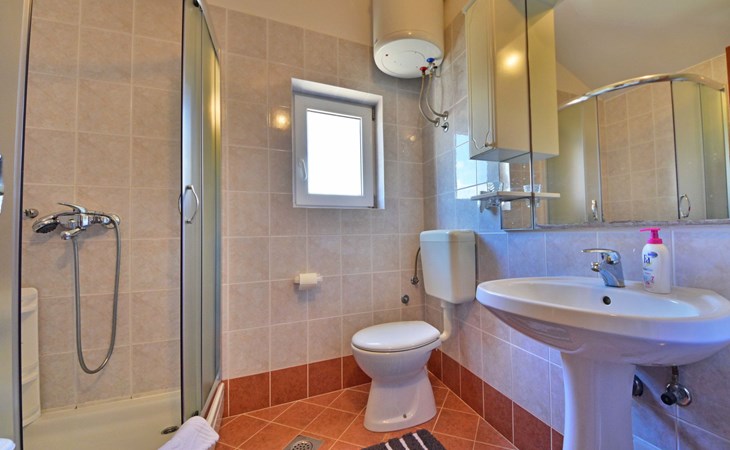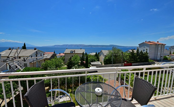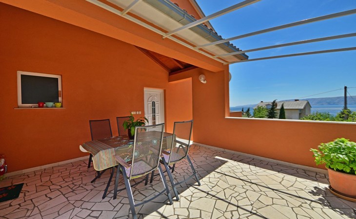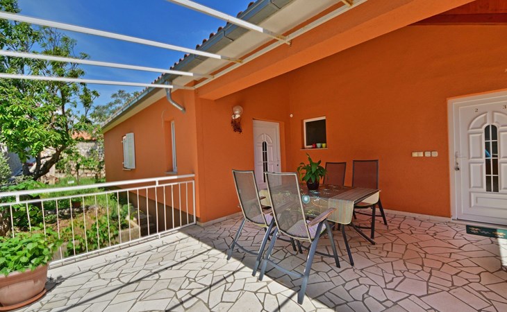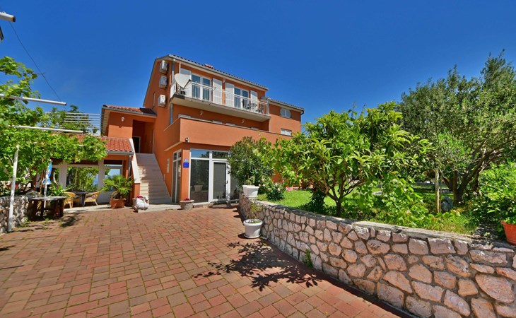Apartment house "Željka". 1 km from the centre of Novi Vinodolski, in a quiet, sunny, elevated position, 350 m from the sea, 350 m from the beach. For shared use: terrace (20 m2), garden furniture, barbecue. In the house: internet access. Parking at the house on the premises. Supermarket, restaurant 900 m, bus stop 1.7 km, pebble beach, rocky beach 350 m, public bathing area 950 m, concrete beach 350 m. For shared use:terrace 16 m2.