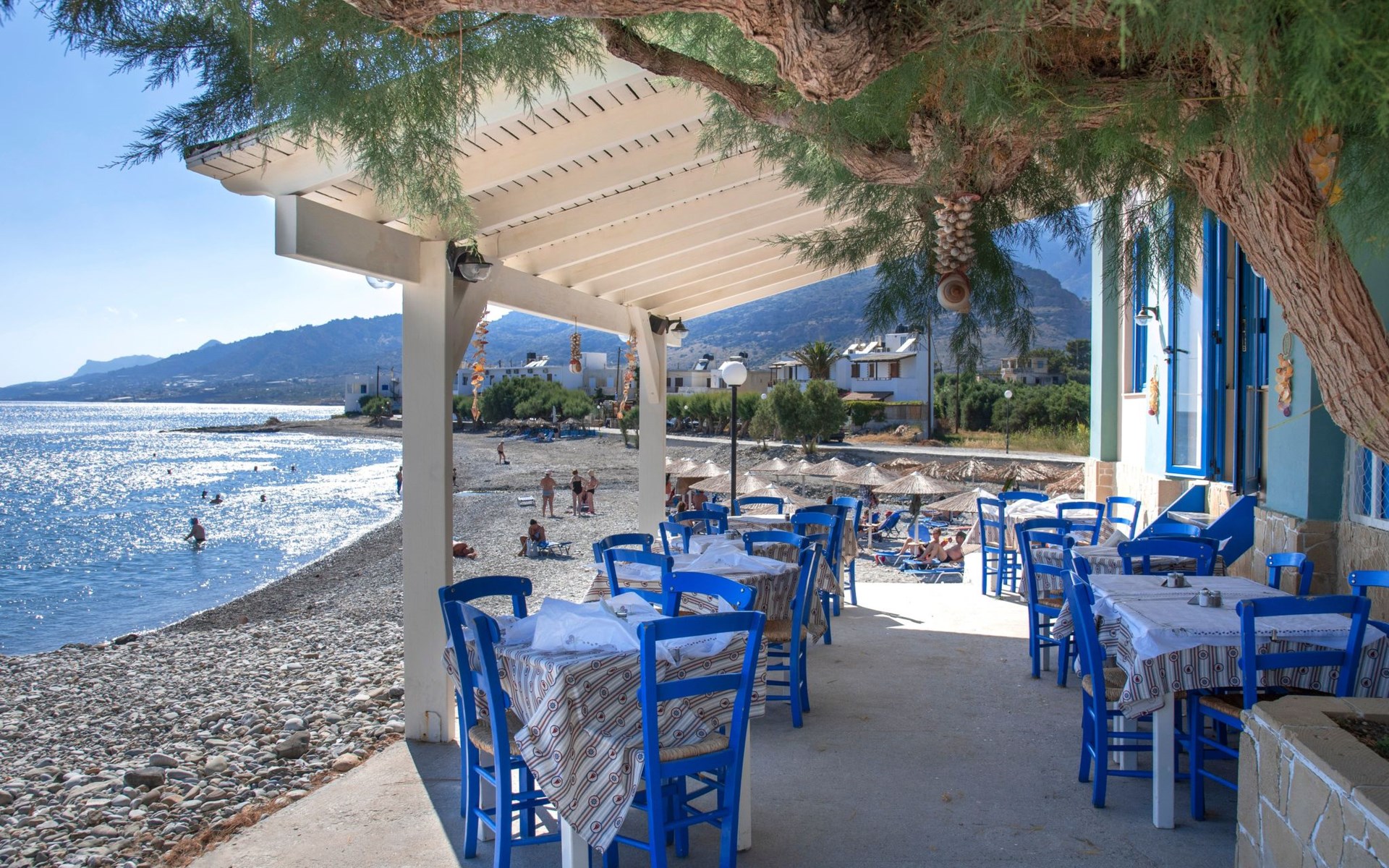 Lemonia (= Lemon tree) - Paradisos villas - is found in Koutsourás, a quiet, agricultural village in South-Eastern Crete. It is less than 2 km west of the tourist town of Makry Gialos, 23 km east of Ierapetra, and 33 km from Sitia. Located only ~3 minutes’ walk from a local pebble beach, bakery, and coffee shops, patisserie, super markets, bars, restaurants, and pharmacy, the villa combines romantic seclusion with proximity to modern comforts. A large sand beach is found only 2 km away in Makry Gialos. Breathtaking coasts, over 330 days of sunshine per year and a mild climate, are the elements that compose the unrivaled beauty of the natural environment of Southeast Crete - the area that the Minoans had chosen for recreation and relaxation can become your own destination that provides you with unforgettable experiences. Traditional Cretan villages, scenic bays and unique routes compose a really inimitable Mediterranean landscape.