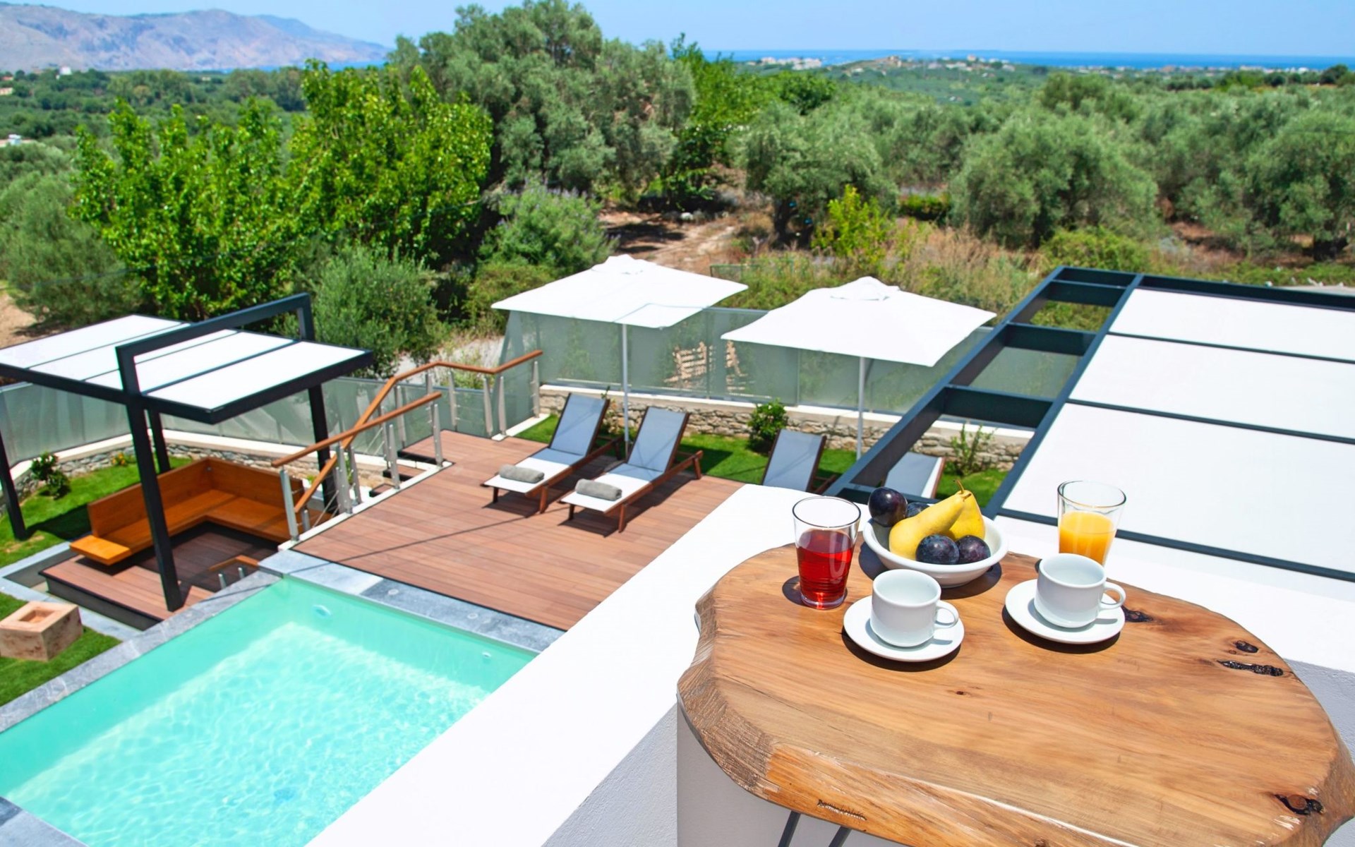 The outdoor pool is heated and can reach 6 to 8 degrees more that the 24 h average air temperature with maximum value of 29°C