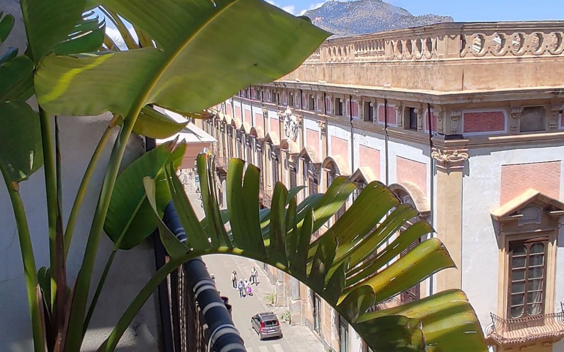 The penthouse enjoys a beautiful Flower Terrace: equipped with tables, chairs and armchairs, where you can eat or where you can relax, overlooking the street below, the beautiful Via Maqueda.The flat has balconies with splendid panoramic views over the city with its colourful roofs and the beautiful domes of its churches.