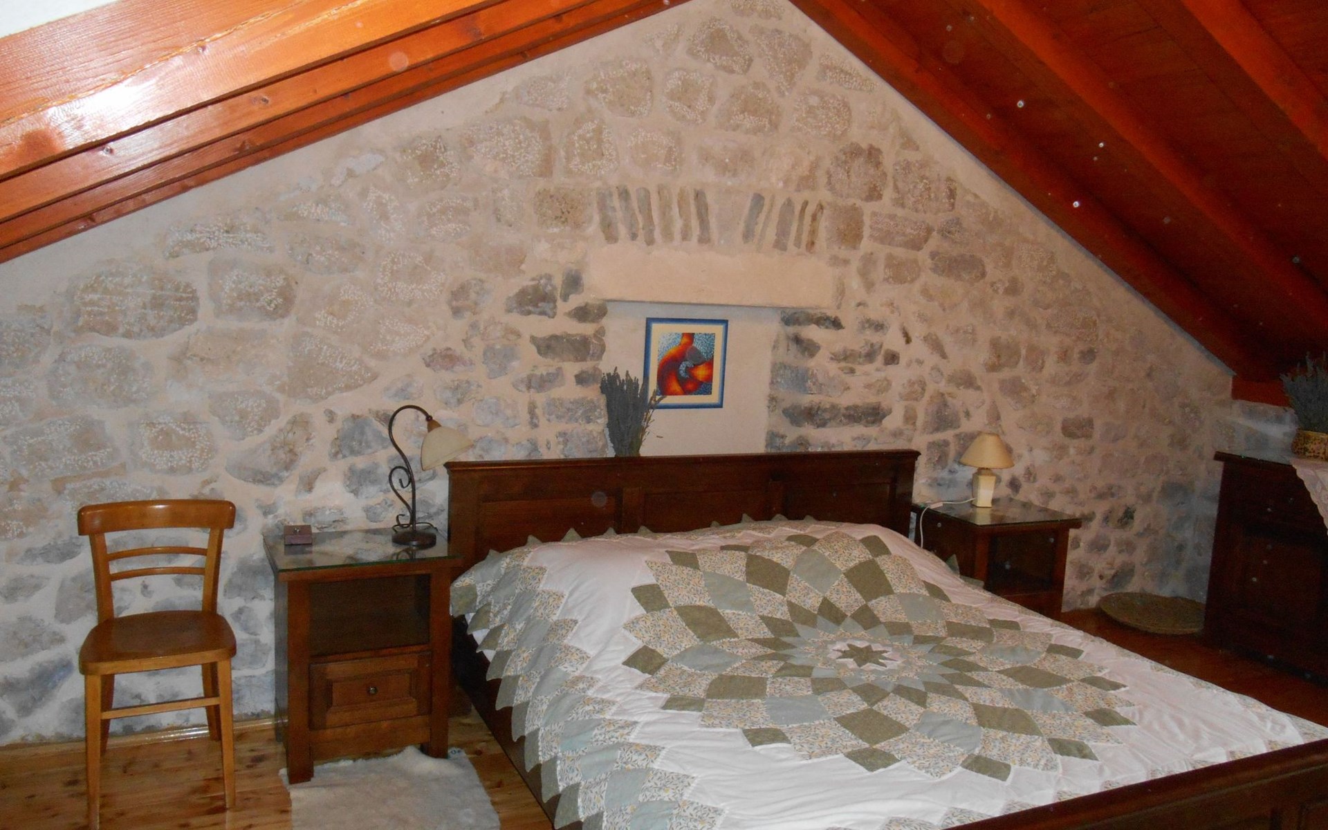 2 bedrooms, 2 bathrooms fully equiped kitchen,BBQ-wood avilable, satelite TV, Internet,Airconditioning,patio and terrace.The rooms are spacious,stone walled,equiped with high quality wood furniture for your comfort.