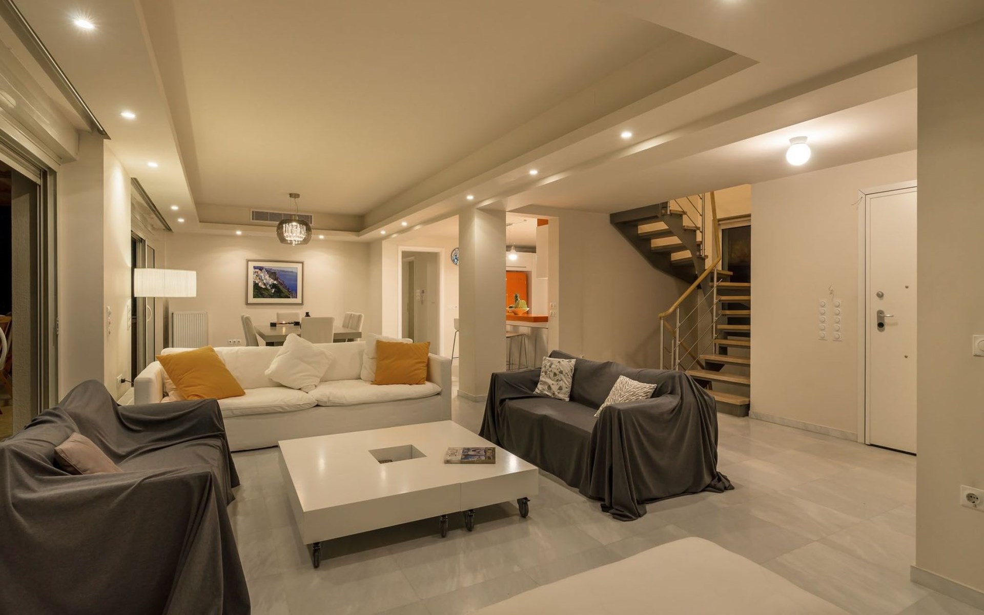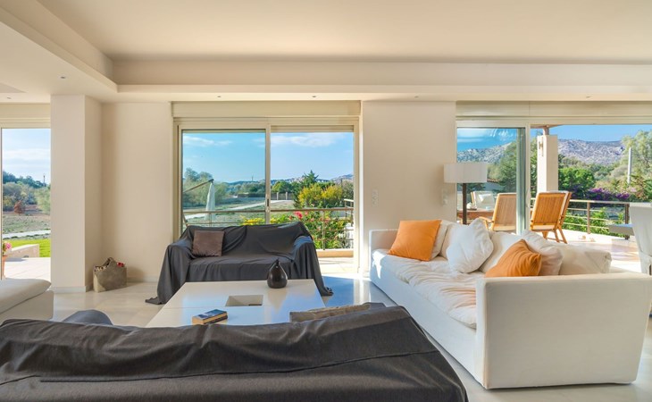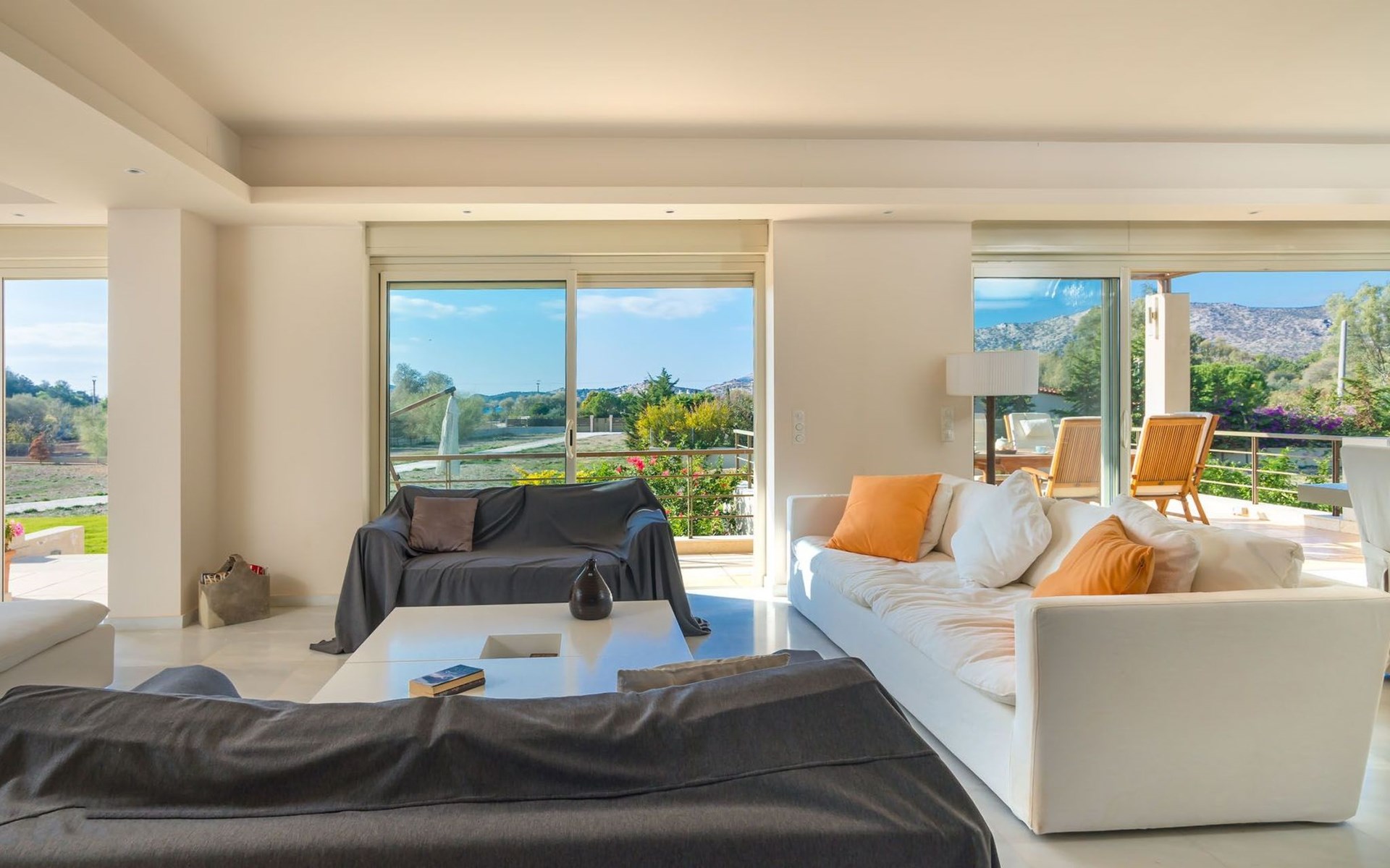 Situated in a peaceful, sparsely populated area away from the hustle and bustle of urban life, the villa's location is truly unmatched. The serene beaches and historic allure of Cape Sounio are just a stone's throw away. For your convenience, the bustling small cities of Lavrio and Anavyssos, offering shopping centers, markets, gas stations, and additional services, are only a 10-minute drive away. Plus, the villa's proximity to both the center of Athens and the Eleftherios Venizelos Athens International Airport adds to its appeal as a fantastic base for exploring this richly historic region.
