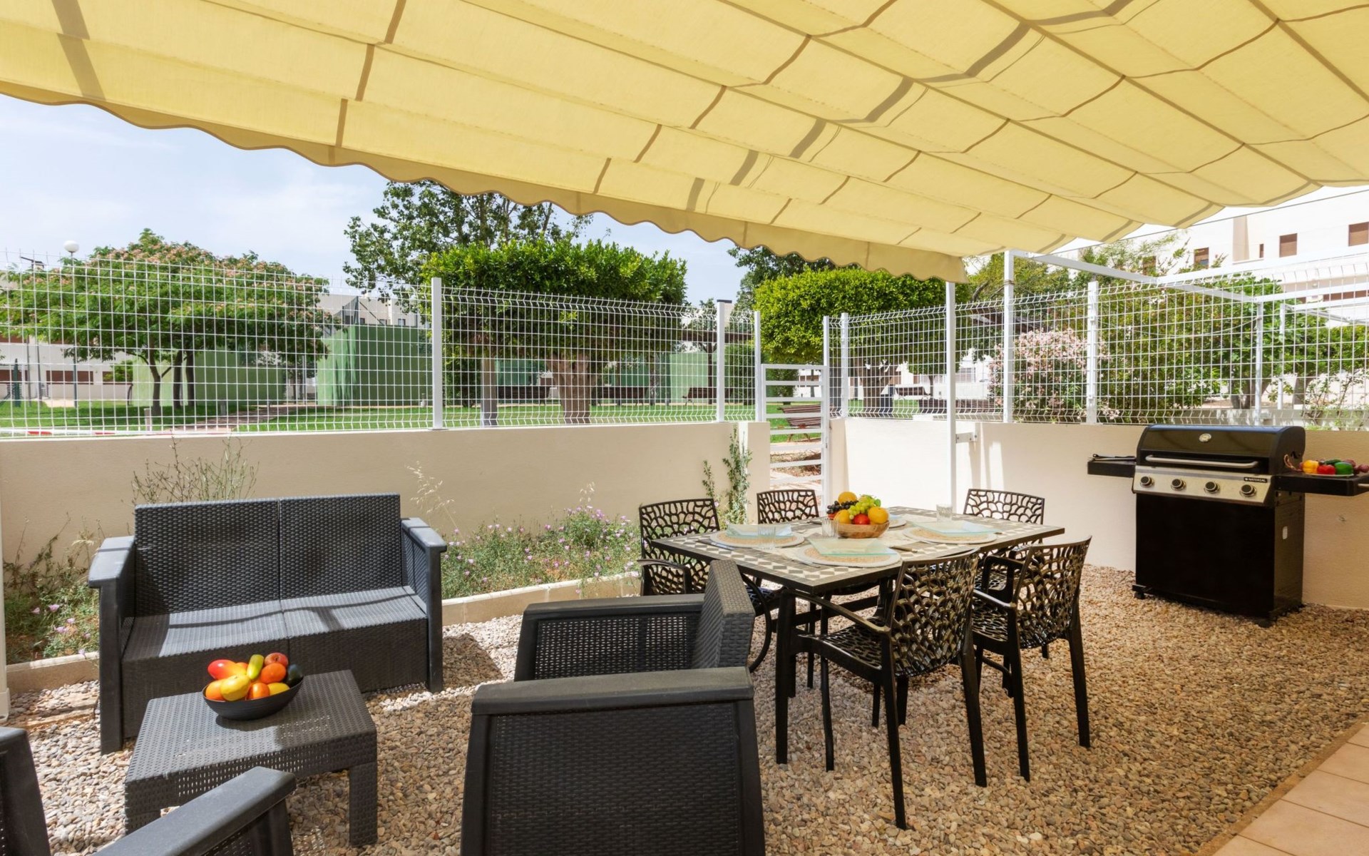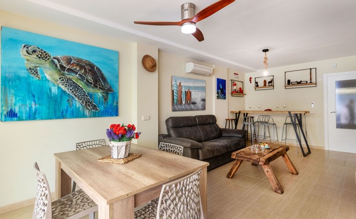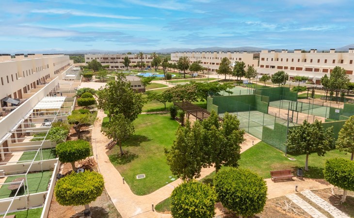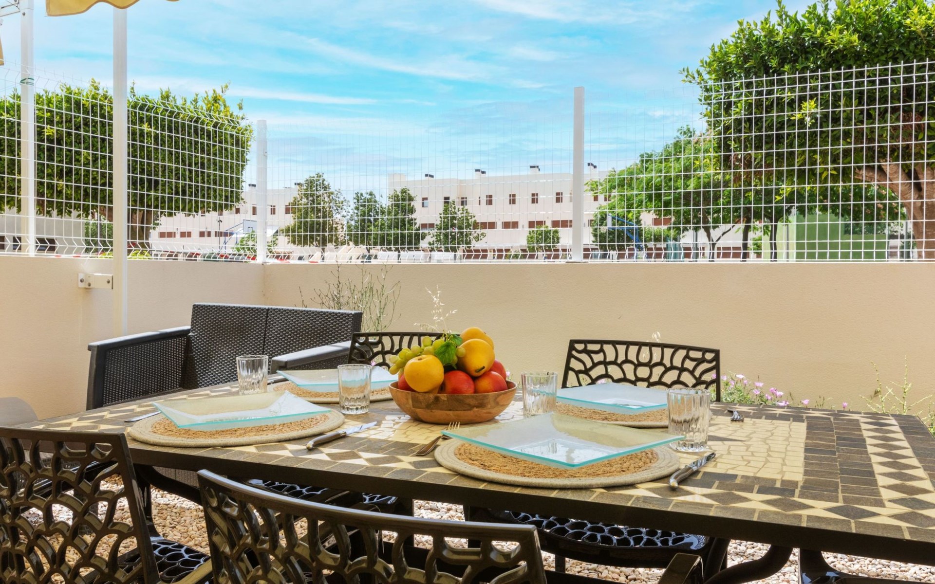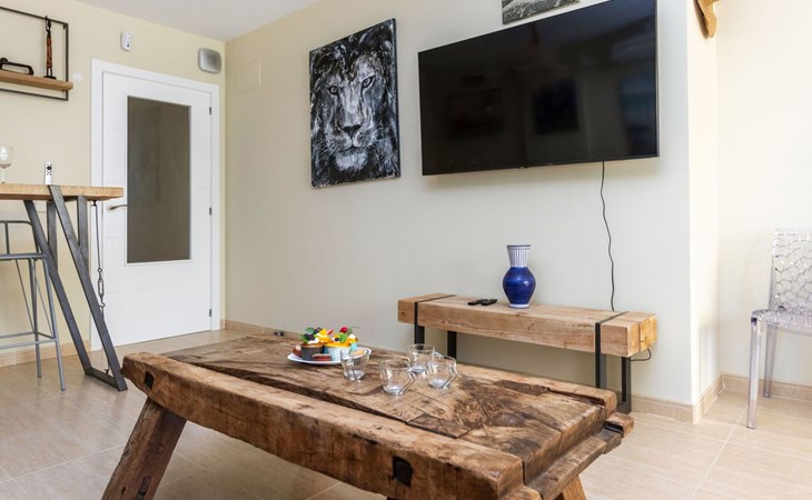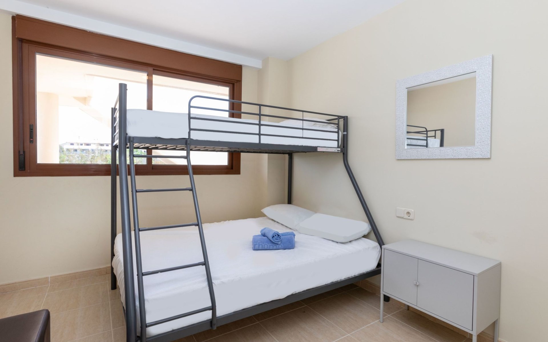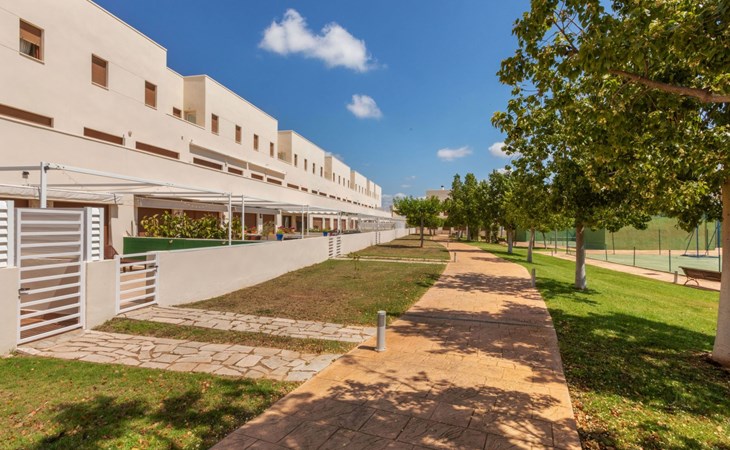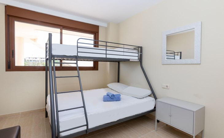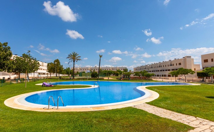Panorámica Golf 18 km from Vinaròs: Cosy apartment block "Detinsa", 2 storeys, surrounded by fields. 165 apartments in the residence. In a quiet position, 18 km from the sea, 18 km from the beach, on the golf course. For shared use: natural state property (fenced), beautiful garden to relax, swimming pool (depth 250 cm, seasonal availability: 15.Jun. - 30.Sep. pool opening hours: 10:00-21:00) with internal staircase. Unconventional pool shape. Children's pool, outdoor shower, tennis, table tennis, basketball. In the complex: restaurant, bar, fitness room, table tennis, washing machine. Supermarket 3 km, shopping centre 15 km, restaurant 2 km, bar 2 km, bus stop "Panorámica Golf" 1.5 km, railway station "Vinaròs" 18 km, sandy beach "Playa Norte" 18 km. Golf course (18 hole) 500 m, walking paths from the house 100 m. Nearby attractions: Peñiscola 40 km, Ermita de Vinaròs 25 km, Parque Natural del Delta del Ebre 60 km, La Cuitat de les Arts y les Ciencies 160 km, Port Aventura 100 km. Well-known lakes can easily be reached: Pantano de la Senia 35 km. Hiking paths: Parque Natural Sierra de Irta 45 km, La Foradada Sant Carles de la Rapita 30 km. Please note: car recommended. Object suitable for 4 adults. The owner does not accept any youth groups. Guarded residence. Additional accommodations can be booked. Property ref. ES9600.307.2 is situated on the same property. All houses/apartments are individually designed/furnished. Neighbourhood highly sensitive to noise. Quietness and good behaviour expected.