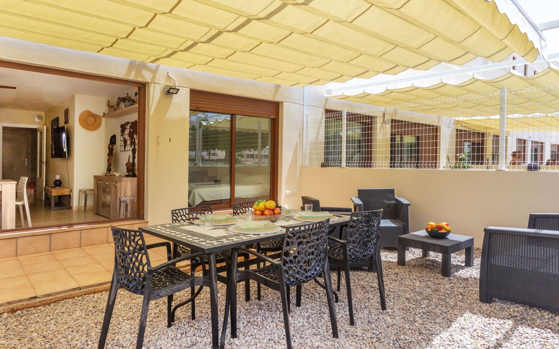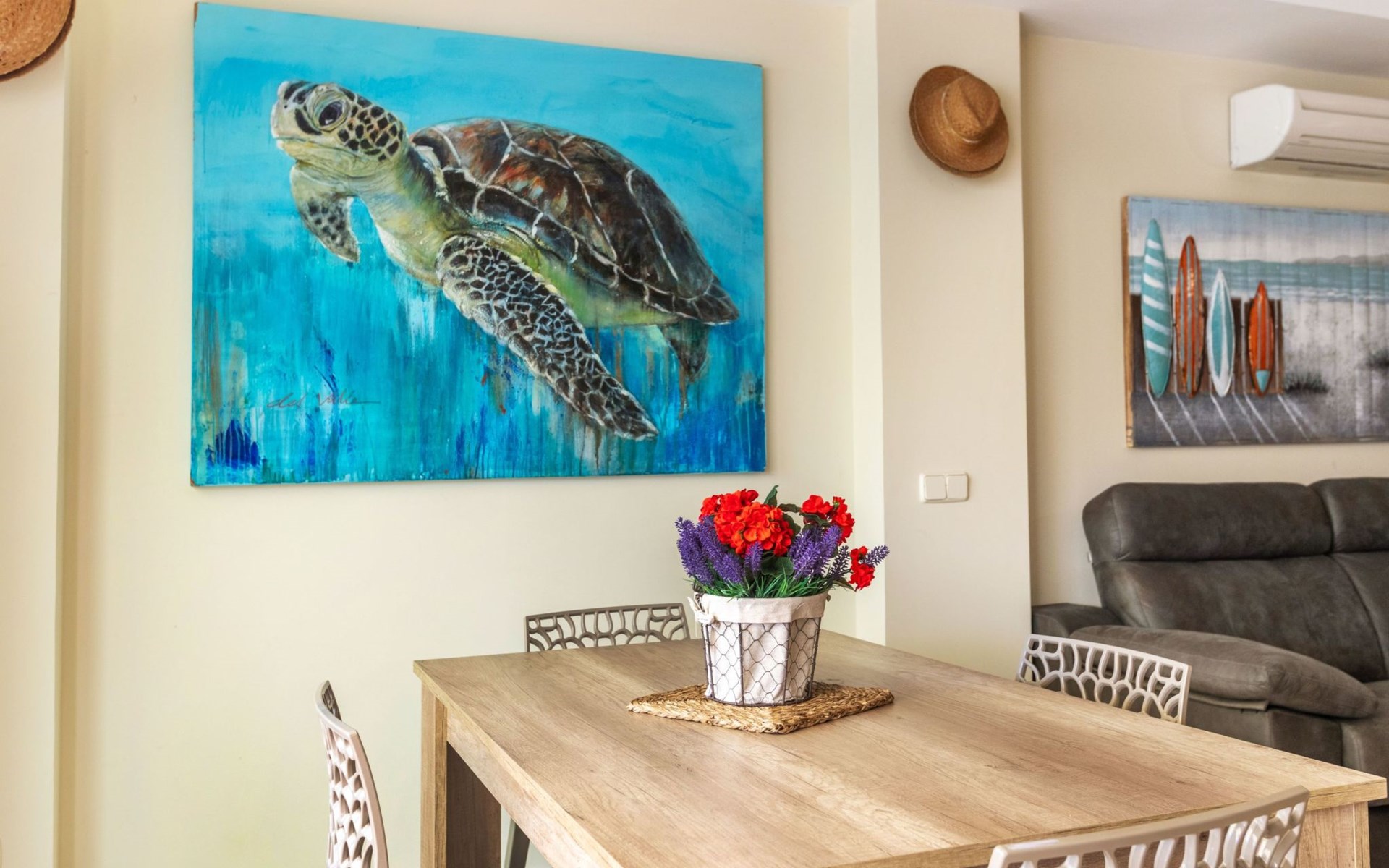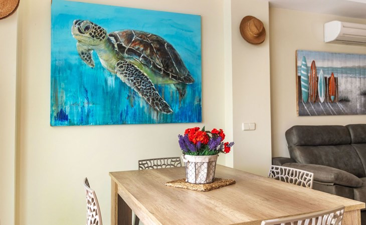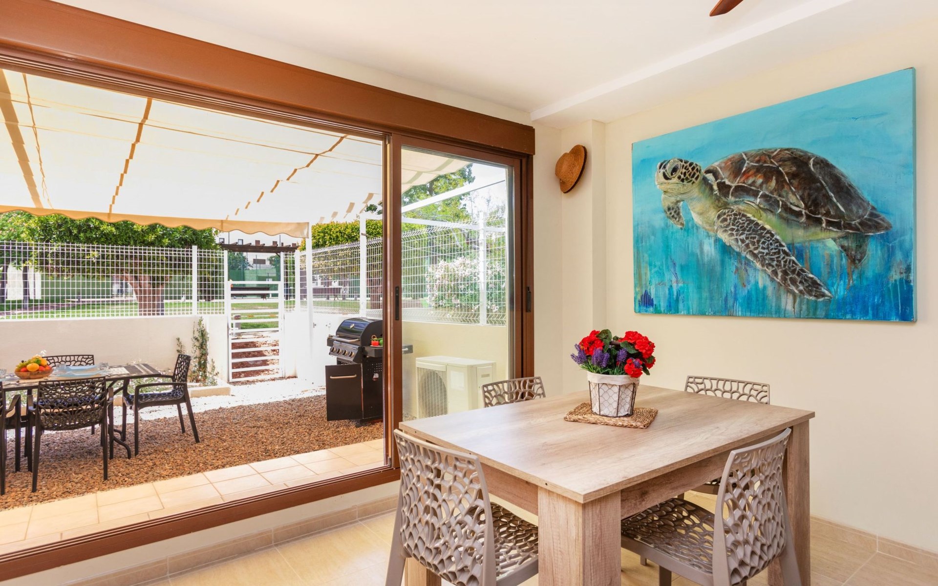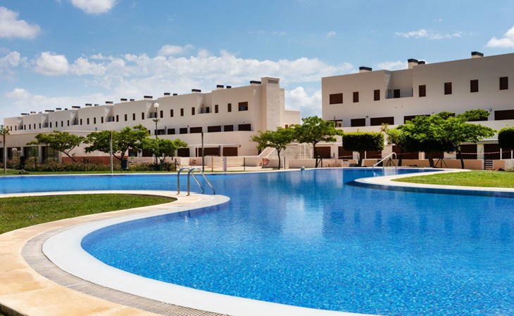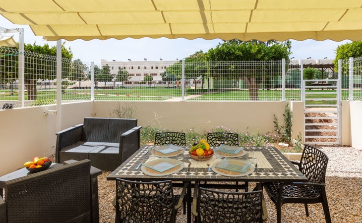 Panorámica Golf 18 km from Vinaròs: Cosy apartment block "Detinsa", 2 storeys, surrounded by fields. 165 apartments in the residence. In a quiet position, 18 km from the sea, 18 km from the beach, on the golf course. For shared use: natural state property (fenced), beautiful garden to relax, swimming pool (depth 250 cm, seasonal availability: 15.Jun. - 30.Sep. pool opening hours: 10:00-21:00) with internal staircase. Unconventional pool shape. Children's pool, outdoor shower, tennis, table tennis, basketball. In the complex: restaurant, bar, fitness room, table tennis, washing machine. Supermarket 3 km, shopping centre 15 km, restaurant 2 km, bar 2 km, bus stop "Panorámica Golf" 1.5 km, railway station "Vinaròs" 18 km, sandy beach "Playa Norte" 18 km. Golf course (18 hole) 500 m, walking paths from the house 100 m. Nearby attractions: Peñiscola 40 km, Ermita de Vinaròs 25 km, Parque Natural del Delta del Ebre 60 km, La Cuitat de les Arts y les Ciencies 160 km, Port Aventura 100 km. Well-known lakes can easily be reached: Pantano de la Senia 35 km. Hiking paths: Parque Natural Sierra de Irta 45 km, La Foradada Sant Carles de la Rapita 30 km. Please note: car recommended. Object suitable for 4 adults. The owner does not accept any youth groups. Guarded residence. Additional accommodations can be booked. Property ref. ES9600.307.2 is situated on the same property. All houses/apartments are individually designed/furnished. Neighbourhood highly sensitive to noise. Quietness and good behaviour expected.