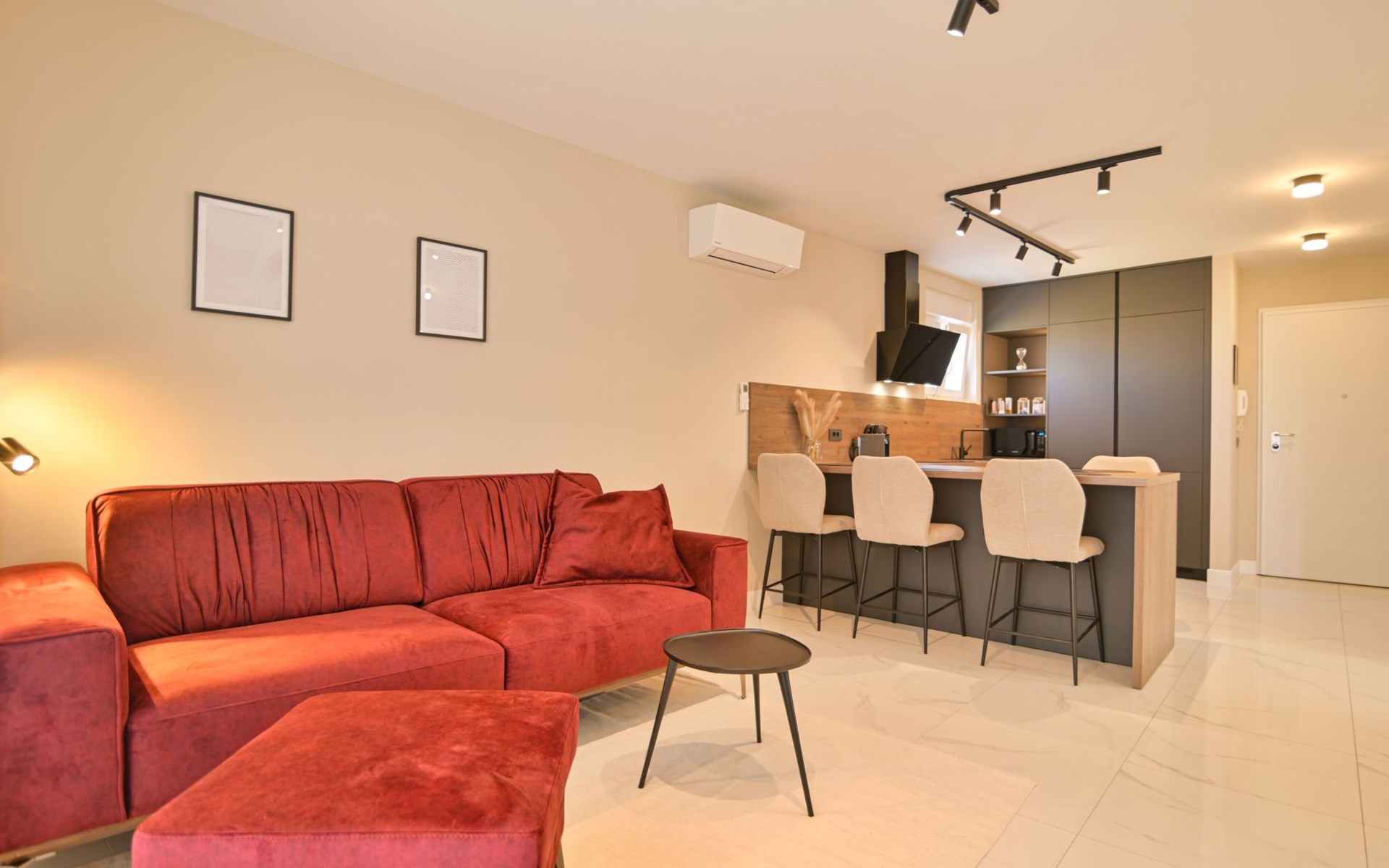 This apartment offers you free Wi-fi, air conditioning, a washing machine, a bathroom with a toilet, a separate toilet, two nice bedrooms with flat tv screens, a living room with a big flat tv screen and a fully equipped kitchen. Nice and cozy balcony for relaxing moments with lounge furniture. There is a free parking place in front of the apartment.