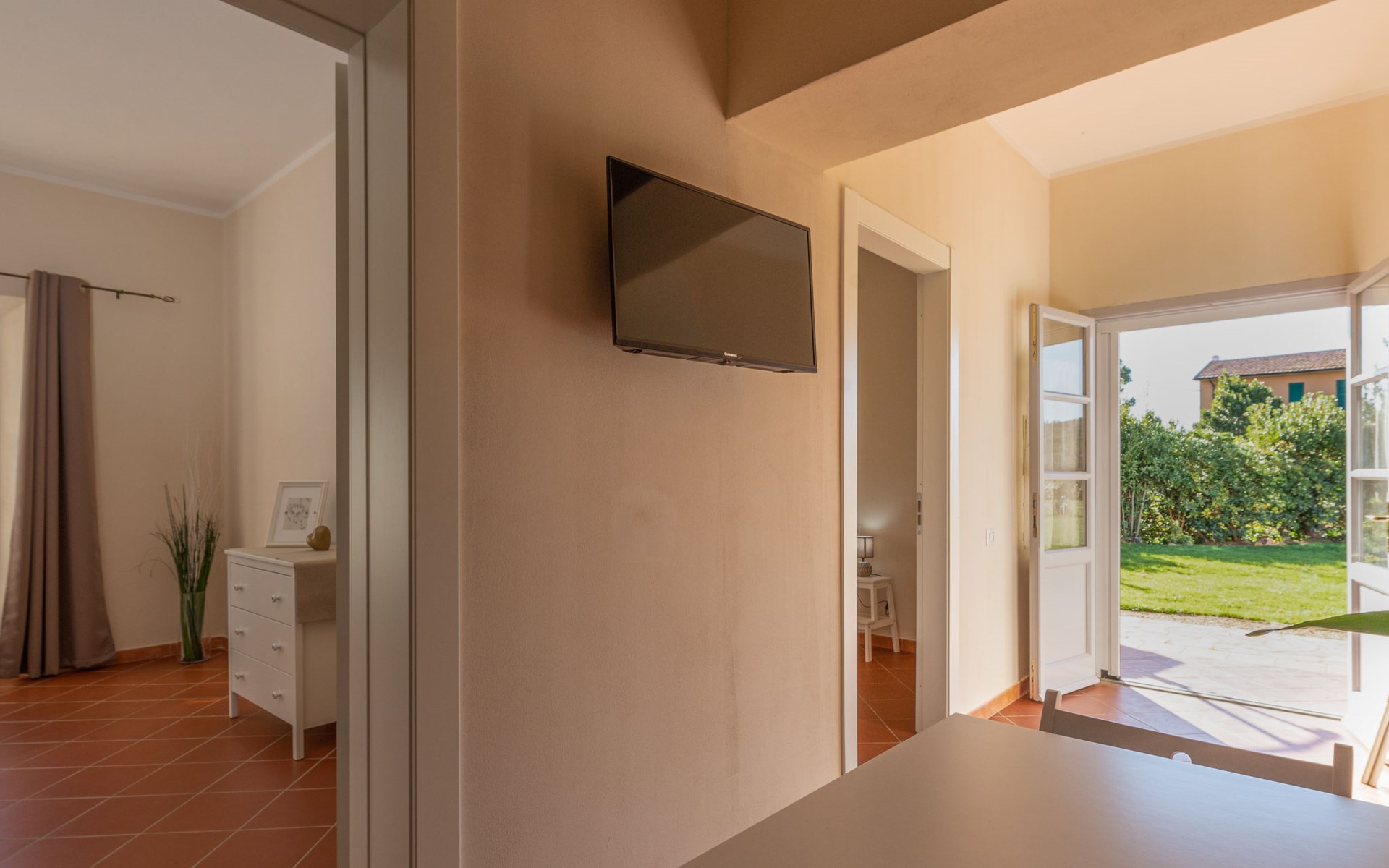 Agriturismo "Il Salicchio", renovated in 2021, surrounded by meadows and fields. 5 apartments in the residence. 2.5 km from the centre of Pian d“Alma, 8 km from the centre of Punta Ala, 13 km from the centre of Castiglione della Pescaia, in a quiet, sunny position, 2.5 km from the sea, in the countryside. For shared use: garden (not fenced) with lawn and flowers. Barbecue. In the complex: washing machine (extra). Parking on the premises. Shop 7 km, supermarket 8 km, restaurant 2.2 km, bar 2.2 km, bicycle rental 7 km, railway station "Follonica" 14 km, sandy beach "Casetta Civinini" 2.4 km. Sports harbour 9 km, golf course (18 hole) 8 km, surf school 9 km, sailing school 4 km, tennis 6 km, minigolf 6 km, riding stable 6.5 km, walking paths from the house 200 m, children's playground 3 km. Nearby attractions: Cala Violina 4.6 km, Follonica 12 km, Riserva Naturale Diaccia Botrona 16 km. Please note: baby equipment on request (included).