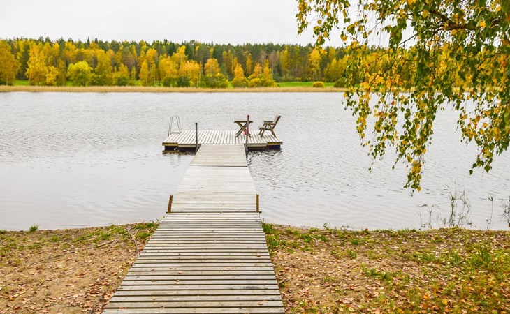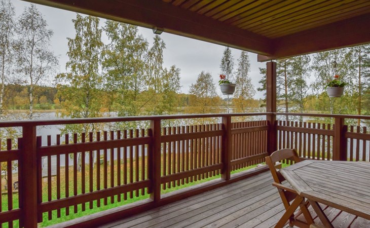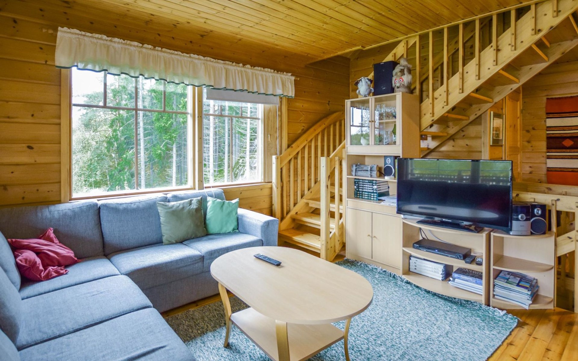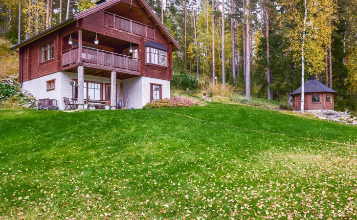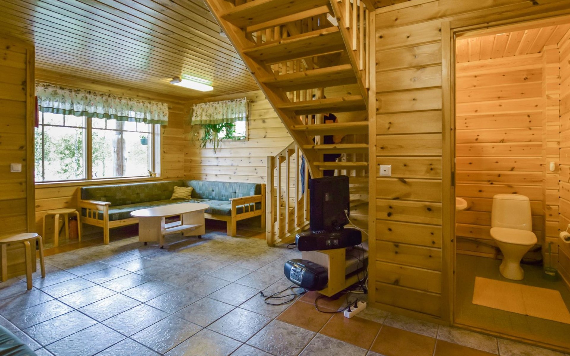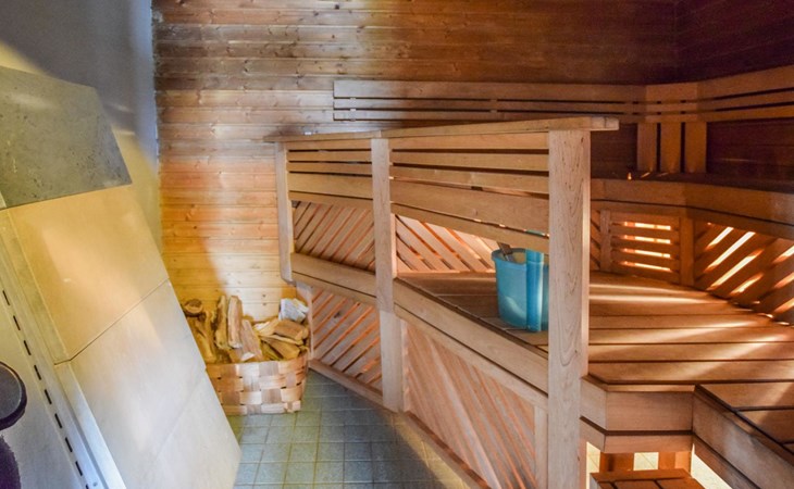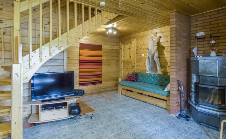 Ground floor: Living room with open fireplace 1 extra bed, dressing room, washroom, sauna, WC.