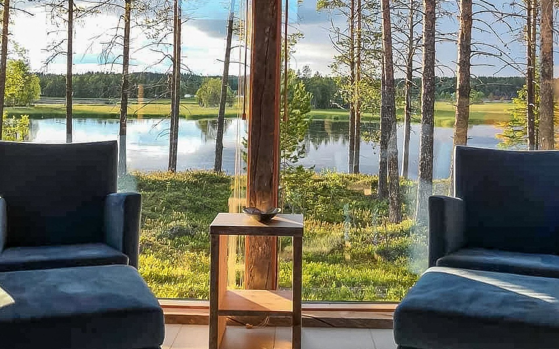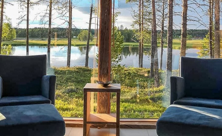 Jussi´s Chalet B kelo log villa is located by the lake Alajuumajärvi. The villa is bright, tastefully decorated and has an area of 150 m². Large living room with big windows to the lake and forest, high quality kitchen and 3 spacious bedrooms (all rooms are for two people). The villa has two saunas. One inside the cabin with electric sauna stove and another with wood-burning sauna stove in a separate building by the lake. The lakeside sauna has a hot tub, which is rented separately.