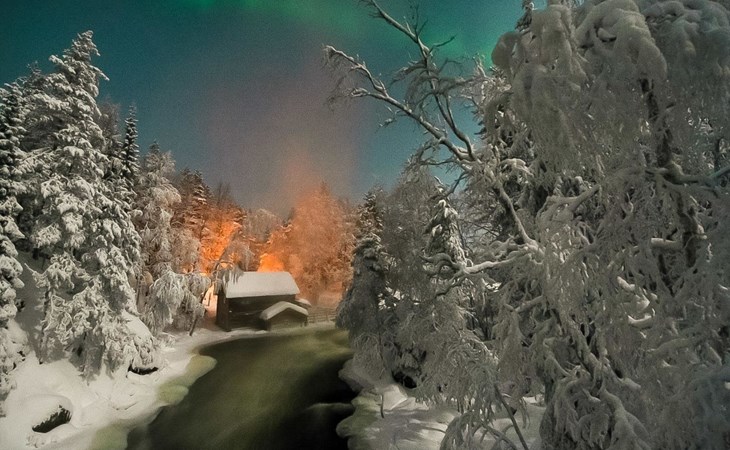 In summer, you can enjoy rowing and fishing on the lake Alajuumajärvi or barbecuing or smoking fish on the terrace. You can pick berries for desserts from the nearby forests or mires. In summer, you can also catch river Kitkajoki’s trout. The short Karhunkierros trail near the villa inspires you to hike even during a nightless night. Local program service companies offer rafting on the charming river Kitkajoki and rent equipment. Canoeing day on the river Oulankajoki is an enchanting experience. Visit to Oulanka National Park visitor center and to waterfall Kiutaköngäs are good ideas for day trips in both summer and autumn.