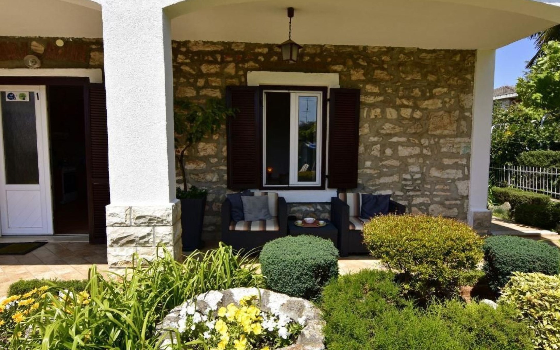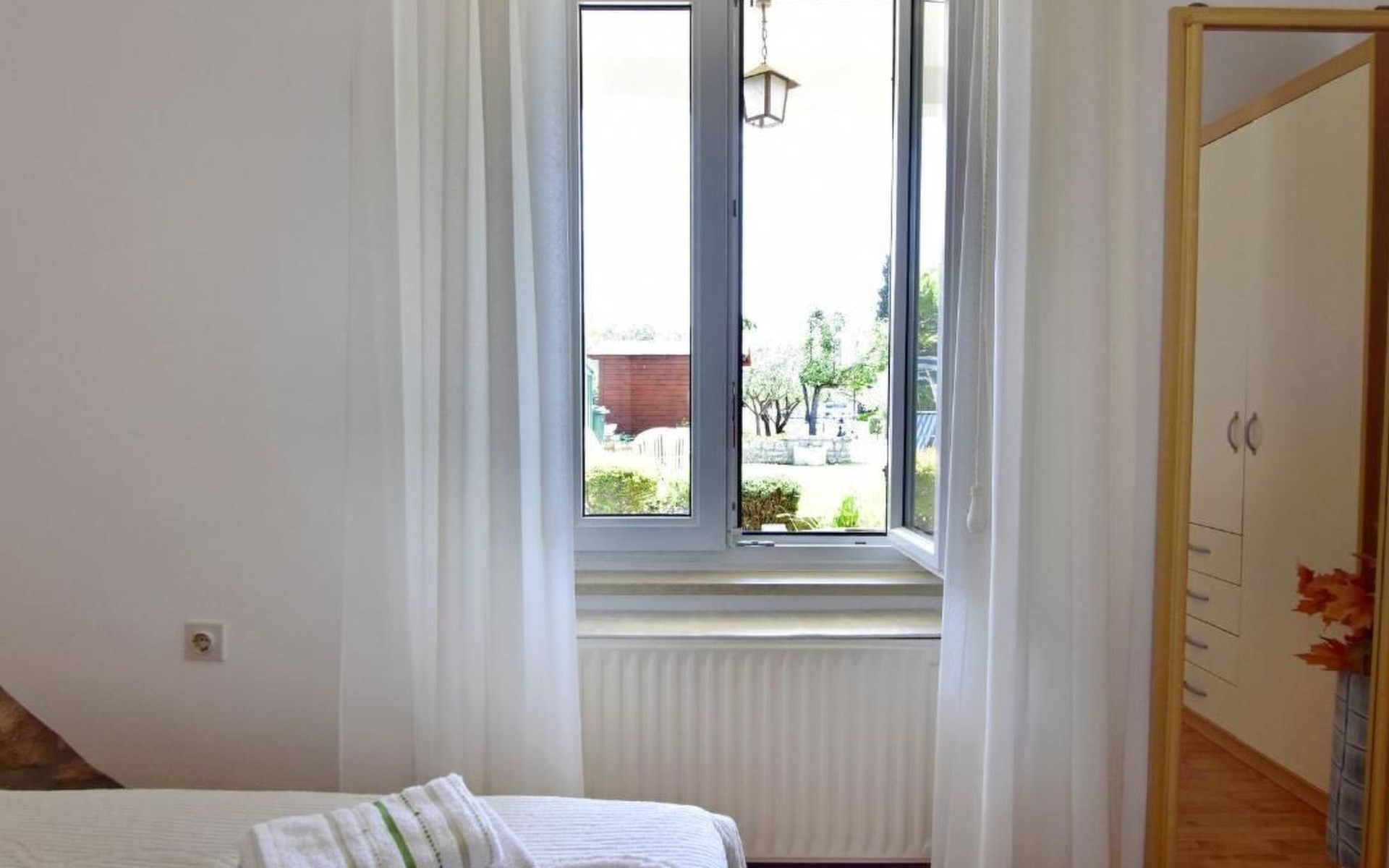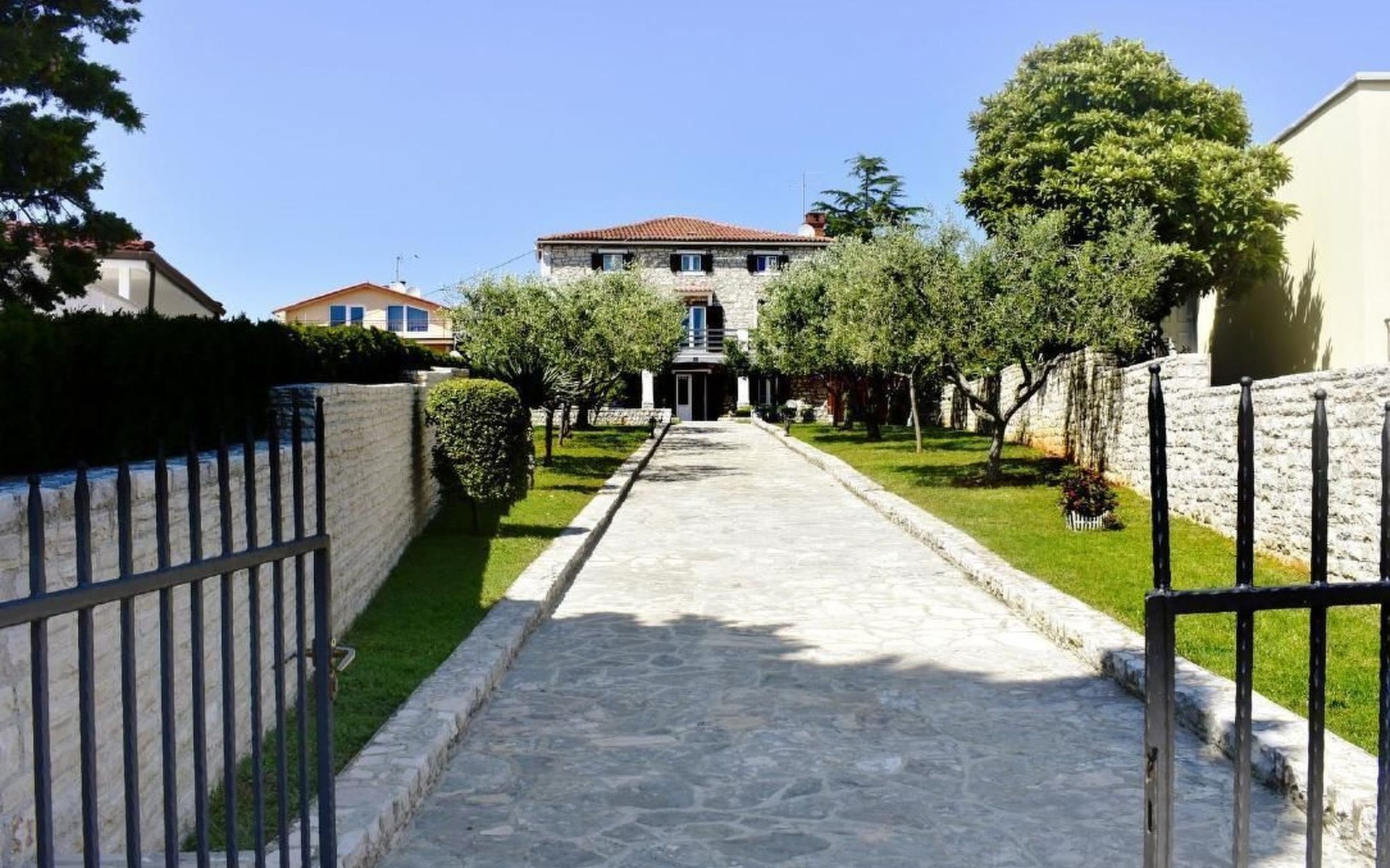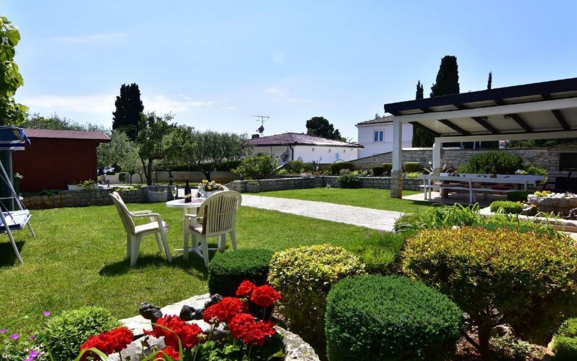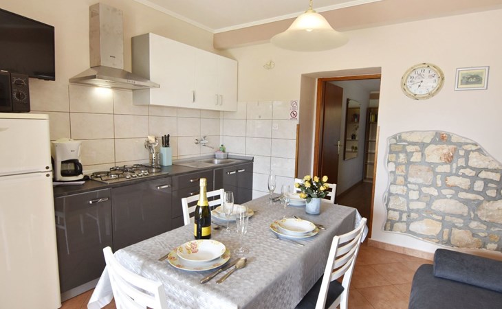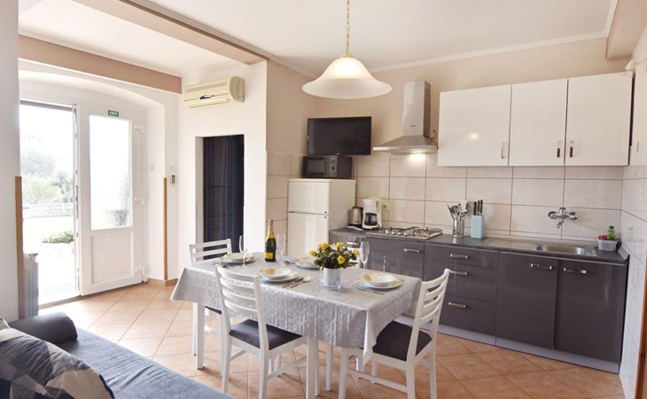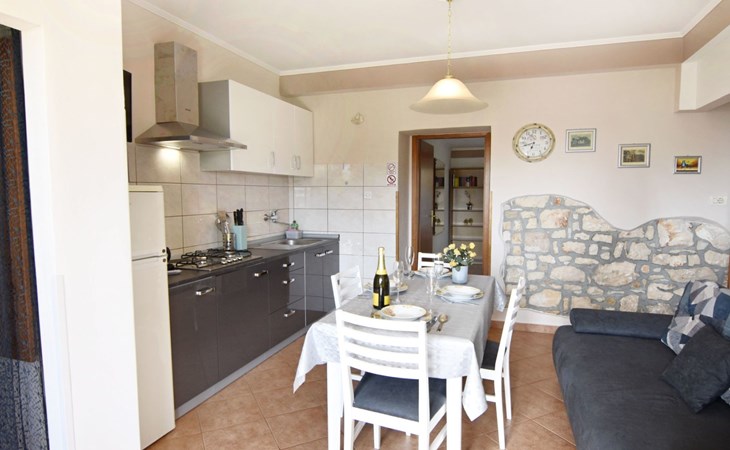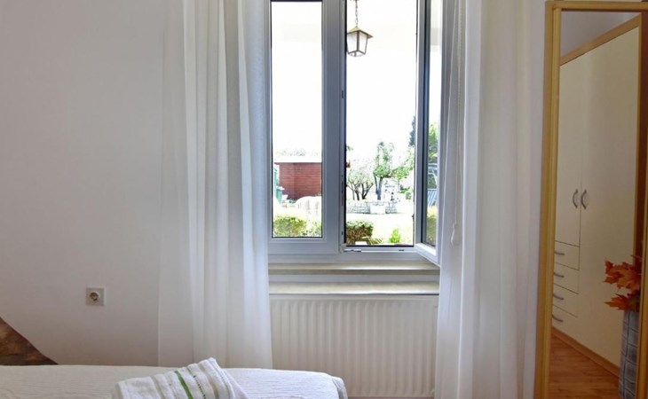 Comfortable 44 sqm apartment located on the ground floor of a family villa with a beautiful large enclosed garden for shared use. The location is perfect for families with children due to the proximity of the beaches. The bathing facilities are easily reachable on foot in a few minutes. The location is quiet, sunny surrounded by greenery, but still central.The house offers a beautiful fenced and well-kept garden, a small olive grove and two apartments for rent.The 47 sqm apartment located on the ground floor of a family house with a large garden and sea view. Located in the tourist area of Umag most loved by tourists for the variety of beaches, it will make your holiday unforgettable. The accommodation is ideal for families or small groups looking for comfort and tranquility. The comfortable apartment has two bedrooms, each with double bed (160x200), bed linen provided (changed weekly), two bedside tables with night lamps and wardrobe. The full bathroom has a shower, washing machine, sink with cabinet and mirror, hairdryer, two bath towels per person provided (changed weekly). The living area has a kitchen equipped with a stove with two gas and two electric burners, smoke extractor hood, oven, refrigerator, kettle, coffee machine, toaster, plates, cutlery, glasses and kitchen utensils. The living area has a sofa, dining table with 4 chairs, flat screen satellite TV, air conditioner and free Wi-Fi internet connection. At the entrance of the apartment there is a large covered terrace equipped with garden furniture with a wonderful sea view and garden decorated with flowers and plants. In the courtyard available for shared use the garden swing and the barbeque area with stone table and benches to spend summer evenings in the company of the outdoors.The area is quiet surrounded by greenery, the beach can be reached on foot in a few minutes. The nearby beaches are varied to satisfy every need, sandy, rocky, pebbly, equipped, with the possibility of renting deck chairs and umbrellas. These beaches make unique the wonderful Mediterranean vegetation along the coast that allows you to shelter from the sun during the hottest hours of the day. To find the beach you prefer, just move a few hundred meters, as the structure of the beaches changes. For those who love the gym, outdoor gym equipment is available for free on the seafront.The nearest beach at 600 m, the grocery store at 800 m, the restaurant at 250 m.In the vicinity of the apartment there are a couple of restaurants and pizzerias. Only 100 m away is the station of the tourist train which leaves from the tourist village of Katoro and along the coast arrives in the center of Umag and vice versa. The center of Umag can be reached on foot in 20 minutes or can be reached by tourist train. In the center of Umag to visit the museum, the aquarium, the cathedral, a walk along the famous Umag Dam is recommended, to explore the narrow and interesting alleys of the old town, or visit the stalls and to the delight of children the playground on the waterfront. To buy a larger quantity of food it is better to walk a few kilometers to the largest and most convenient supermarkets such as Lidl, Spar, Kaufland or Plodine.Nearby there are various leisure possibilities: tennis courts, the Adriatic Golf Club with 18 holes, horse riding, water sports, night clubs, adrenaline park, mini golf course, fishing. It is also possible to take various organized trips by boat or by bus. The area is full of renowned restaurants, simple restaurants, pizzerias, fast food restaurants, bars. We recommend visiting the Istrian hinterland for days off the beach or to spend the evenings. Very interesting is the artists' village Grožnjan, Motovun the typical medieval town located on a hill and known for the film festival which takes place every year at the end of July, the village of Livade very well known for its white truffle. For cave lovers to visit the Baredine cave. Don't miss the chance to visit Hum the smallest city in the world just 60 km from Umag. Also interesting are the places on the coast such as the NP Brijuni, Pula, Rovinj and Poreč. Organize various fish picnic boat trips during which you will have the opportunity to visit Rovinj and Poreč or Novigrad. The day trip by hydrofoil to Venice (if it is possible due to COVID). To visit the Istralandia water park 20 km from Umag to the delight of children and the Dinopark in Vrsar, fun is guaranteed there. For gourmets various possibilities of tasting wines, cheeses, olive oil, typical Istrian ham and much more. For organized trips we recommend the Trevitours agency which, after a telephone consultation or with the owner, also brings the tickets to your home* Registration only on the first day, to be paid on arrival in cash* Guests are kindly requested to use the appliances with care.* It is forbidden to smoke indoors but you can smoke on the terrace.* For any damage caused, guests are kindly requested to inform the owner or the agency that after a careful assessment of the damage, the cost of the damage will be charged on the spot.Short descriptionOther : Non-smoking houseShort description 1Number of kitchens : 1SurroundingNearby sports facilities : Basketball, Bike tours, Diving, Fishing, Football area, Golf course, Hunting facilities, Mountainbiking, Riding possibilities, Sailing, Sport center, TennisRental Facilities : Bicycle rental service, Boat rental service, car rentalGarden and outdoorGarden facilities : Garden furniture provided, Grill