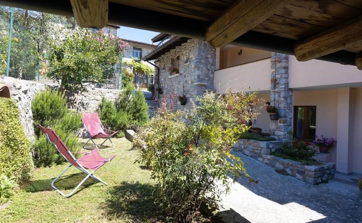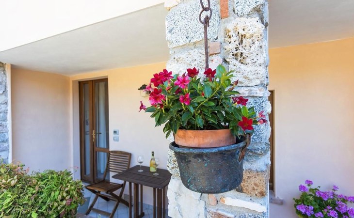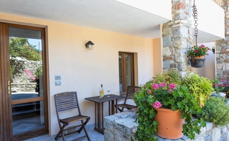 Outside terrace - courtyard with small private garden, outdoor wooden porch with space suitable for outdoor breakfasts and lunches.