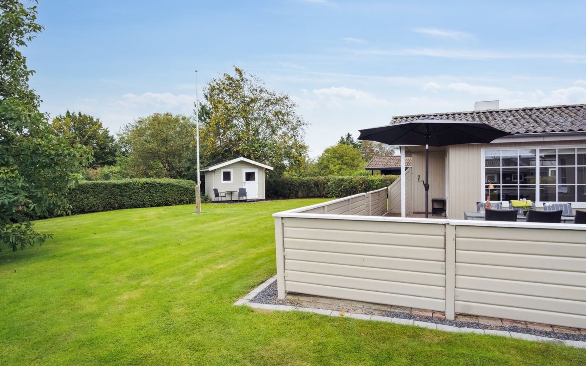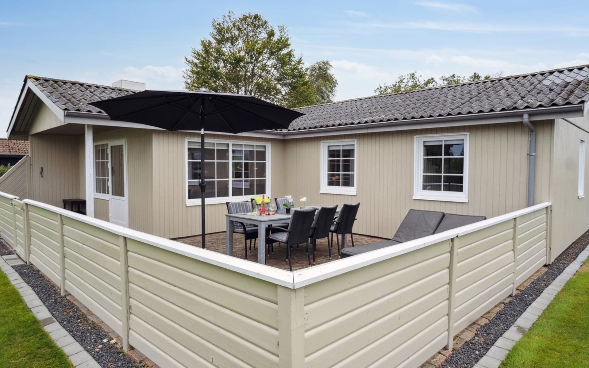 Single-family house, built in 1978. 300 m from the sea. Private: property 982 m2, well-kept garden. Terrace (30 m2), children's playground. In the house: washing machine, tumble dryer. Carport. Grocery 250 m. The owner does not accept any youth groups.