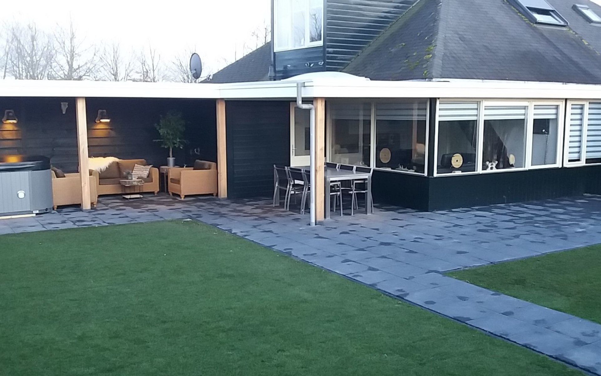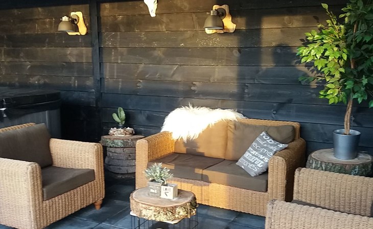 The large sunny garden is fully fenced (ideal for dogs and small children) and offers a lot of privacy in a green environment. The house has a large veranda with lounge set. Jacuzzi for 5 people and a fixed barbecue. There is also an outside tap handy for divers.