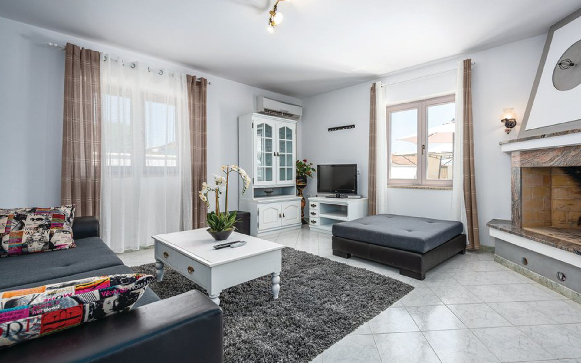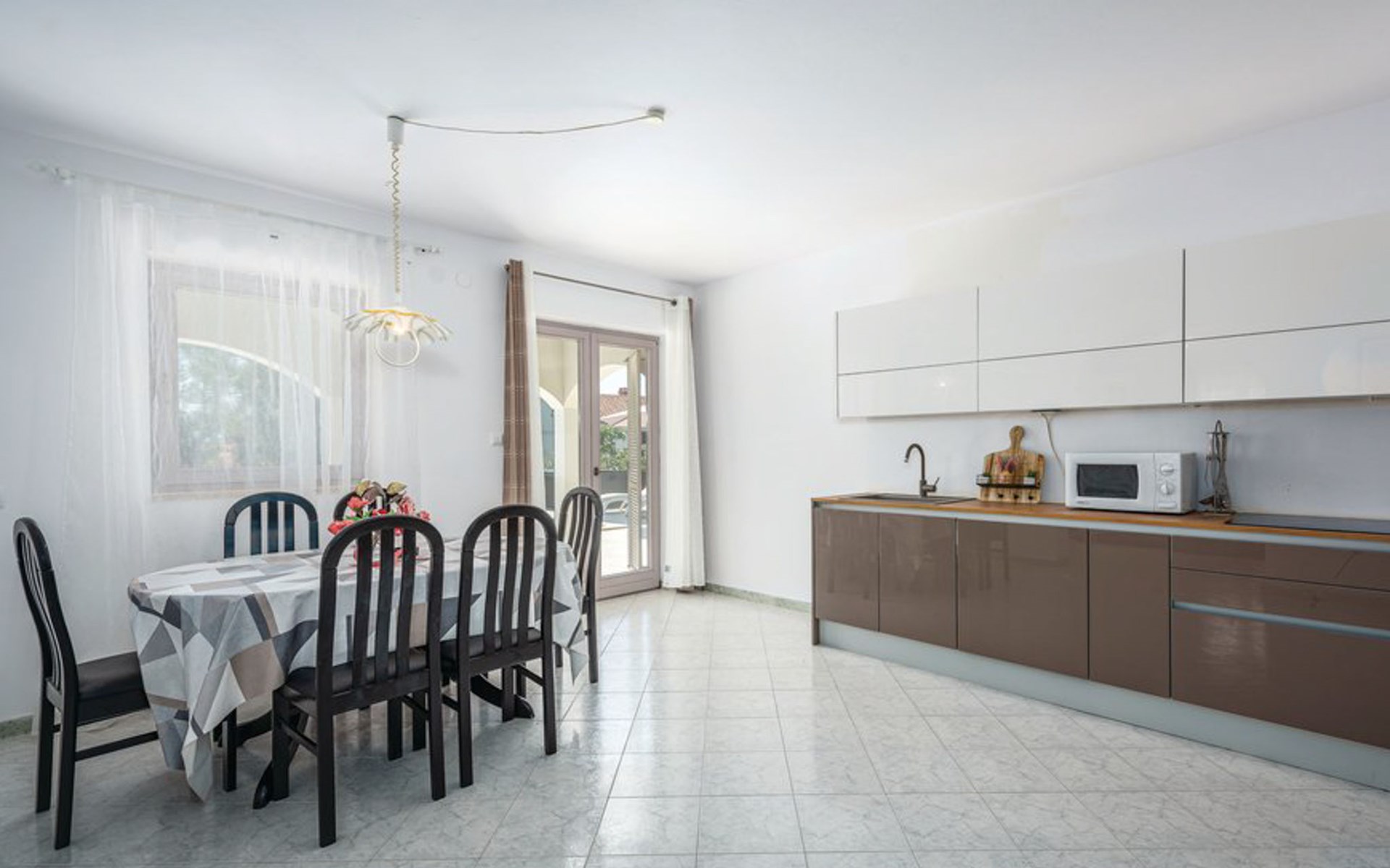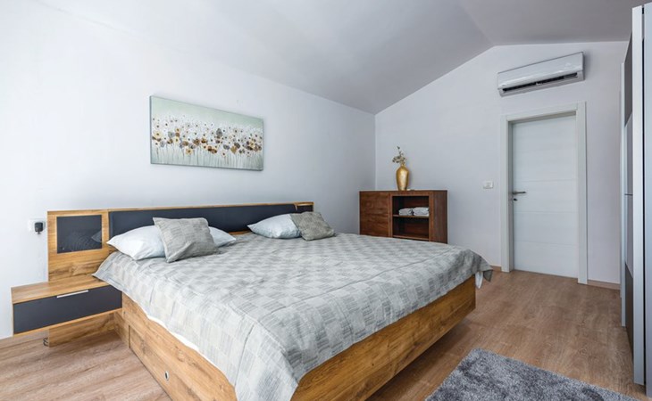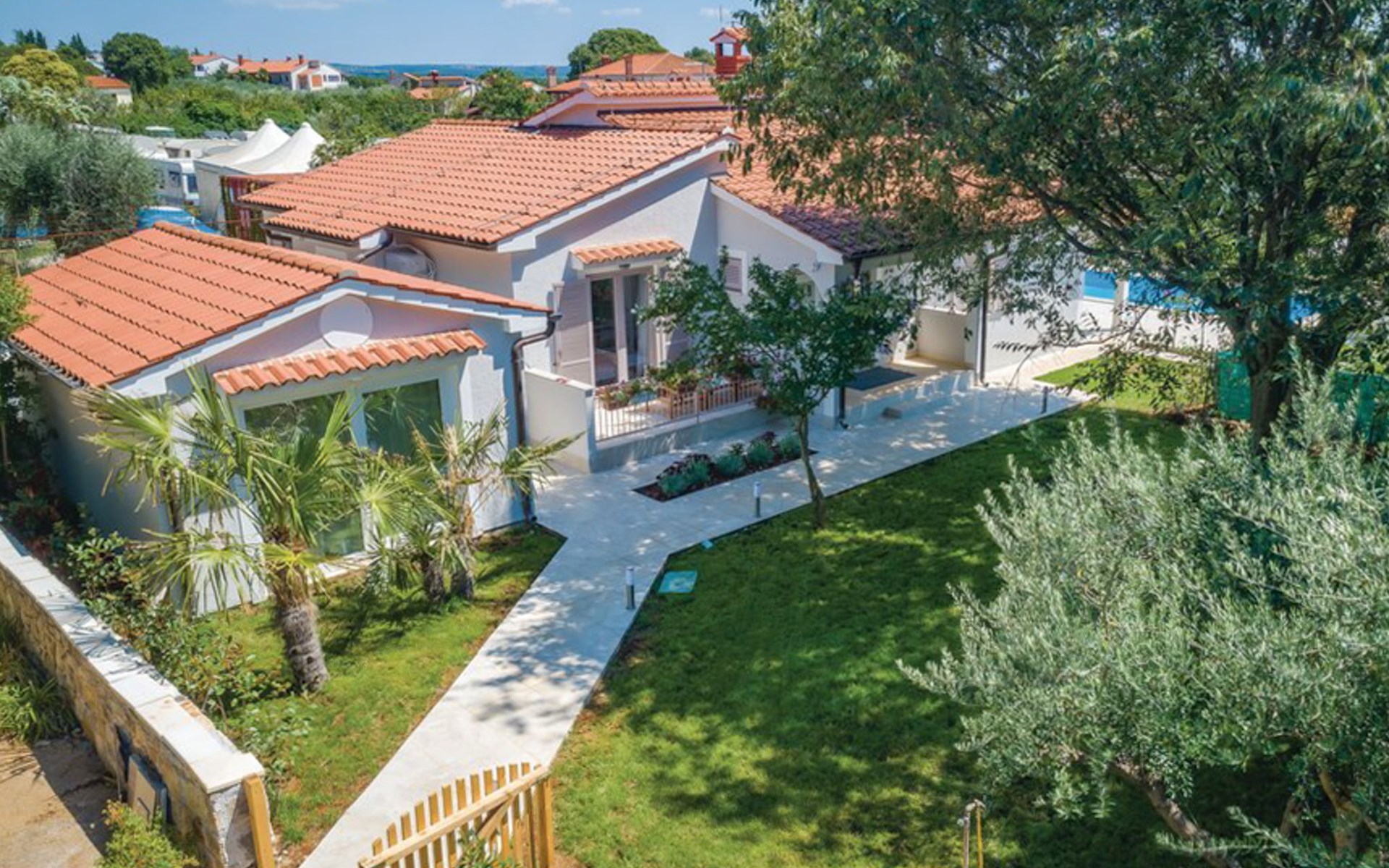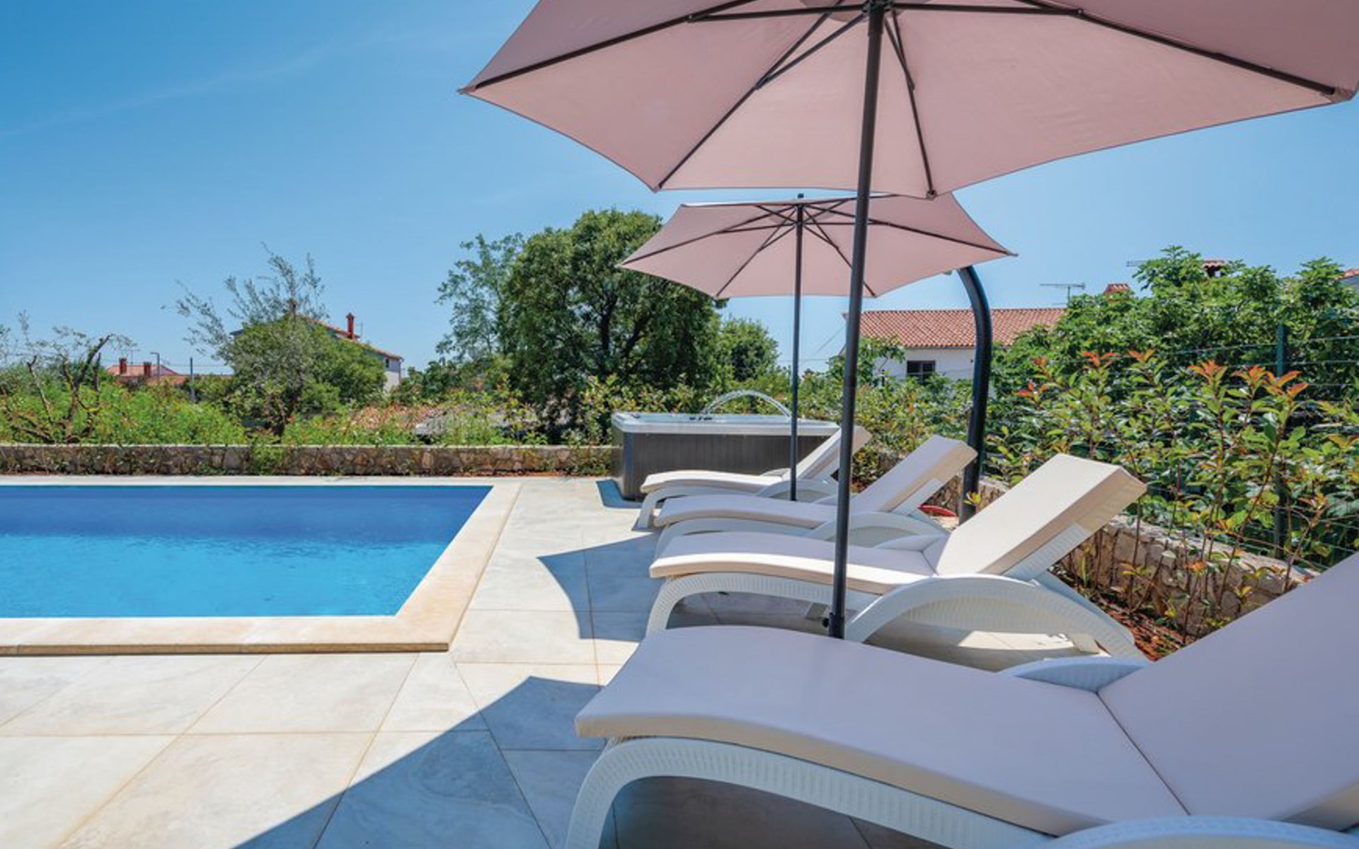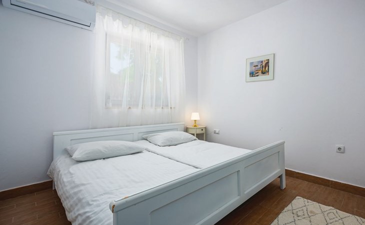 Tar 7 km from Poreč: Single-family house "Alice". In the hamlet Vabriga 1 km from the centre of Tar, in a quiet position, 4 km from the sea, 4 km from the beach, in a cul-de-sac. Private: property 800 m2 (fenced), lawn 200 m2 flowers, natural garden, swimming pool angular (4 x 8 m, depth 135 cm, seasonal availability: 01.May. - 30.Sep.) with internal staircase. Outdoor shower, hot tub, garden furniture, barbecue. In the house: internet access, washing machine. Parking at the house on the premises. Shop 50 m, supermarket 100 m, restaurant 50 m, pedestrian zone 100 m, bus stop 1 km, pebble beach 4 km, shingle beach 4 km, rocky beach 4 km. Please note: suitable for families. The owner does not accept any groups.