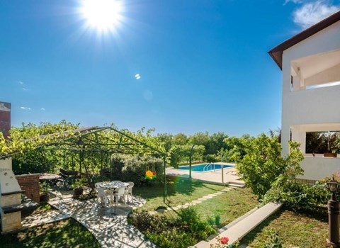 Shared with the neighbouring house on the same property is a 25 m² swimming pool with sun loungers, parasol and seating, as well as a 70x50 cm stone barbecue for guests' use. The garden plot can be separated via a 1.2 metre high movable fence, making the two sections completely independent. There is also enough space with play equipment for children.
