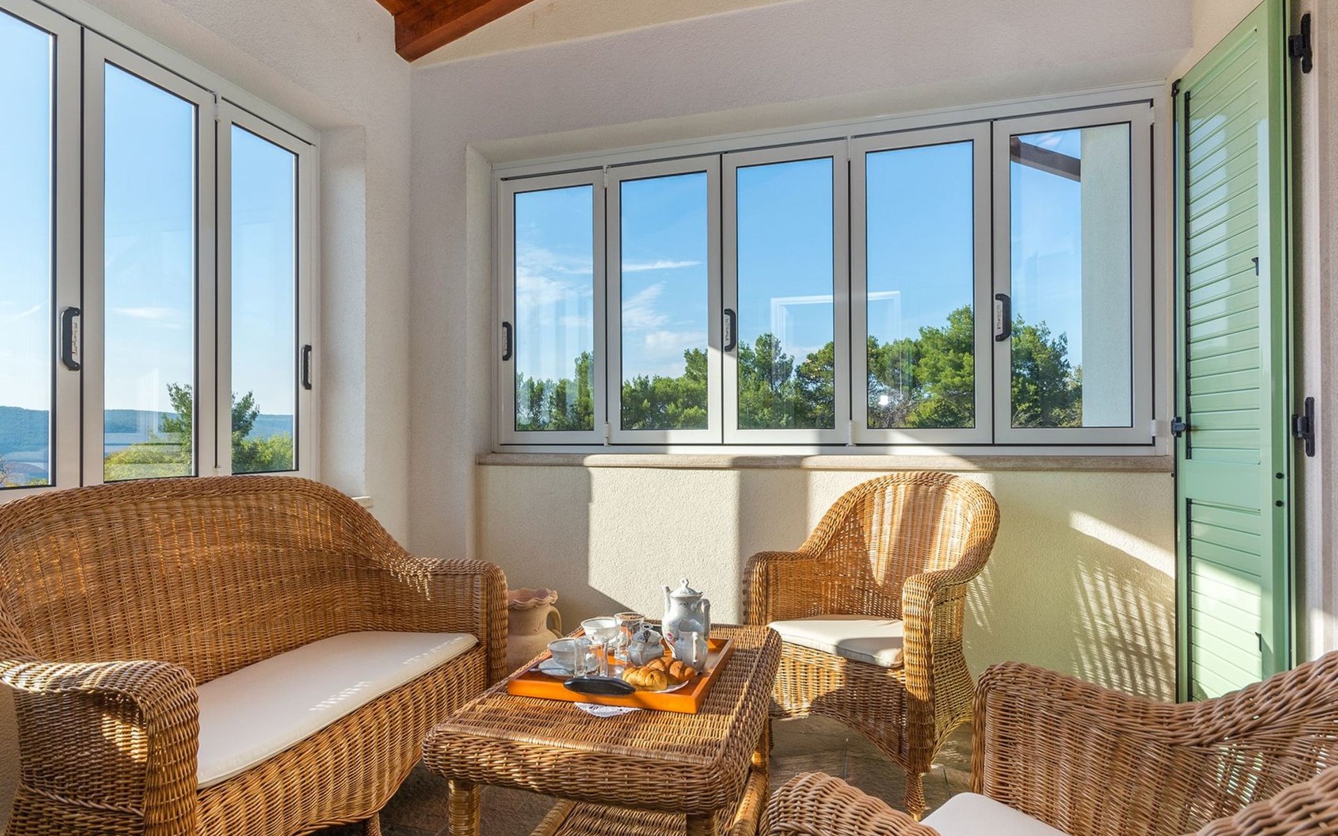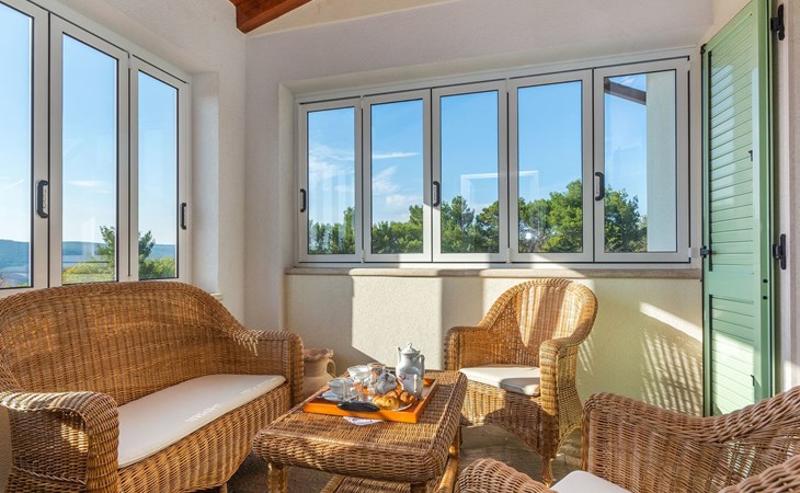 The interior of Villa Mare offers all the comforts of home. The two flats are elegantly furnished and include living rooms with cable/satellite TV, air conditioning and a fireplace for cooler evenings, as well as a second living room equipped with a stereo and DVD player. The bedrooms, four in total, offer a mix of double and single beds, all with wardrobes, linen and air conditioning. The kitchen is fully equipped with a cooker, oven, microwave, toaster, kettle, coffee maker, dishwasher, refrigerator and freezer. Three well-equipped bathrooms complete the interior, providing convenience and practicality for guests.