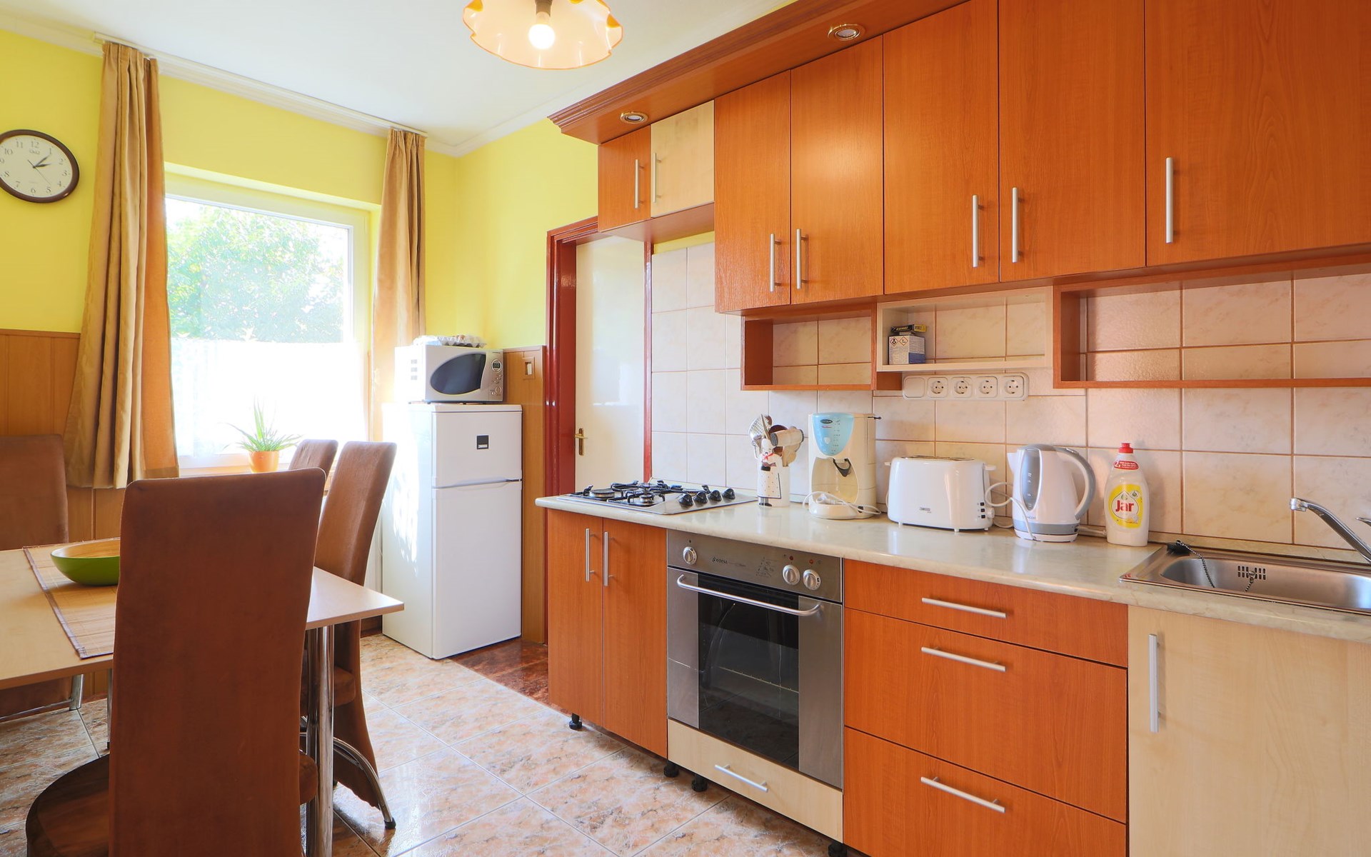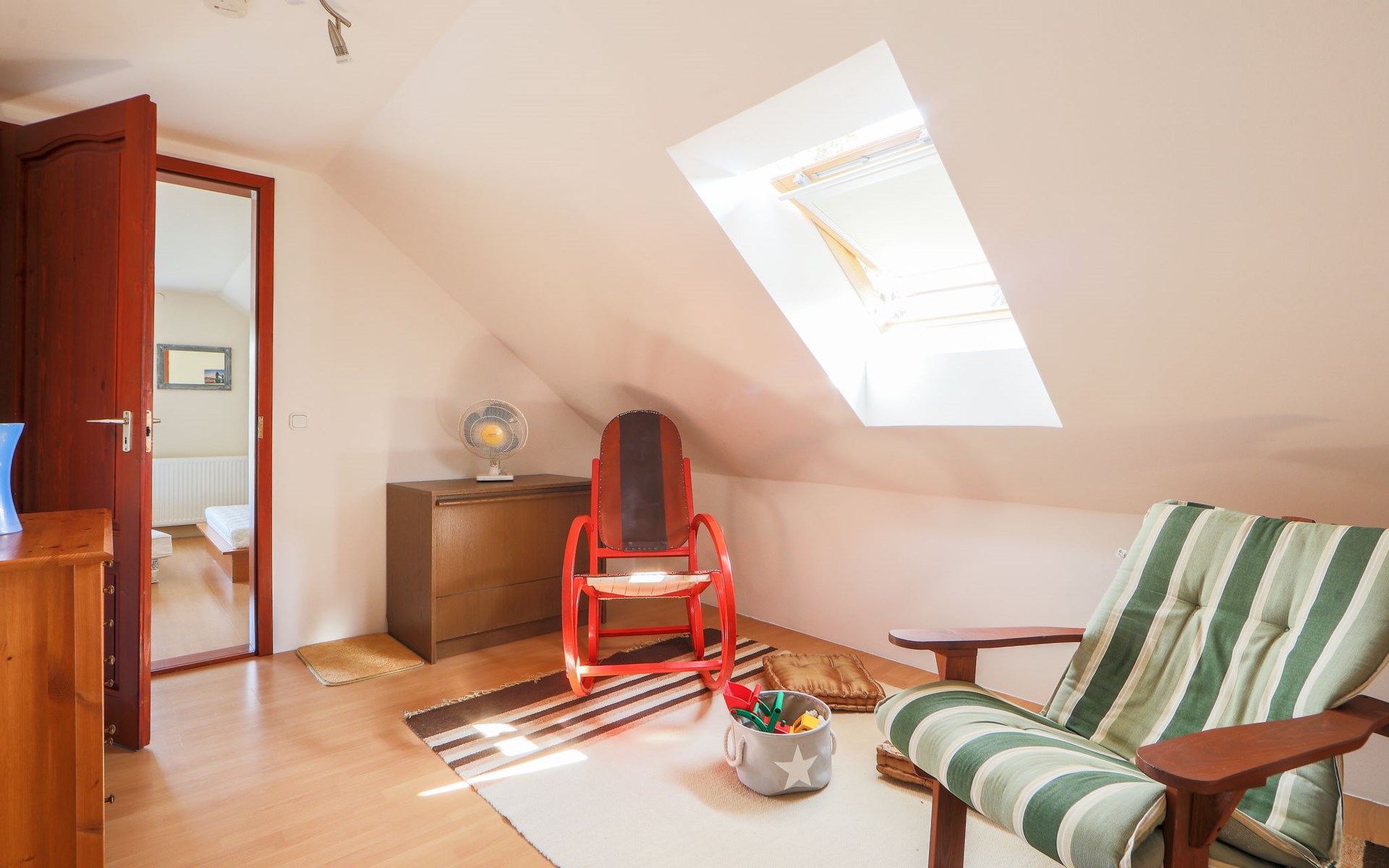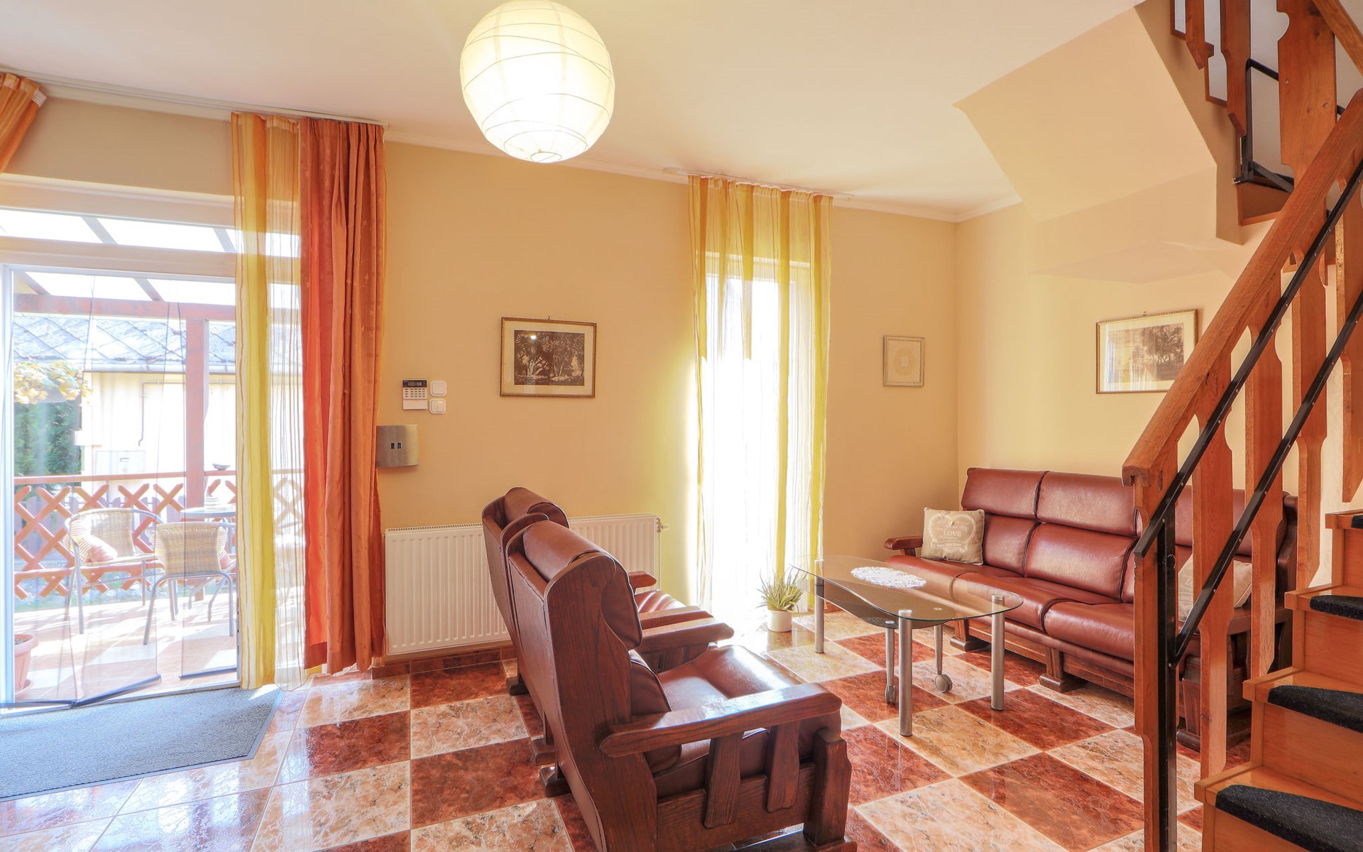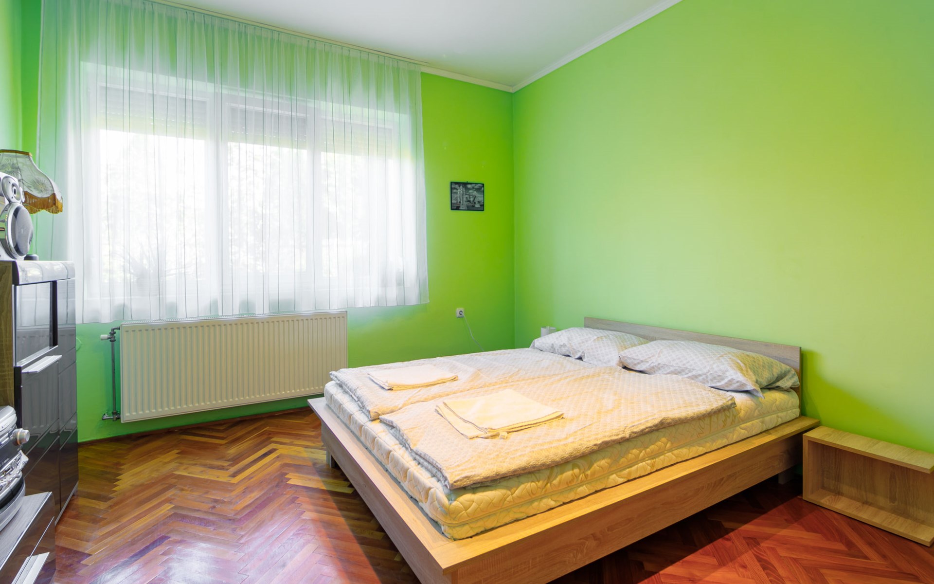 Kőröshegy 3 km from Balatonföldvár: Cosy single-family house "Beata", 2 storeys, renovated in 2020. In the resort, 3.5 km from the lake, 3.2 km from the beach. Private: large garden (fenced) with lawn and trees, orchard. Patio, barbecue (sandbox). In the house: WiFi, air conditioning, washing machine. Parking (for 3 cars) at the house. Grocery 1 km, supermarket 2.3 km, shopping centre 2.3 km, restaurant 1 km, café 2.5 km, bus stop "Szántód" 2.3 km, railway station "Szántód-Kőröshegy" 2.5 km, ferry "Szántód-Tihany" 4.5 km, grass beach "Balatonföldvár" 3.4 km, thermal baths "Igal Thermal Bath" 36 km. Marina 3.8 km, sailing school 4 km, tennis 4.8 km, cycle lane 2.5 km, children's playground 3.4 km. Nearby attractions: Kőröshegy Lavender Farm 2.6 km, Balatonföldvár Look-out Tower 5 km, Shipping History Exibition 5 km, Balaton Sound Festival 6.4 km. Please note: baby equipment on request (included).