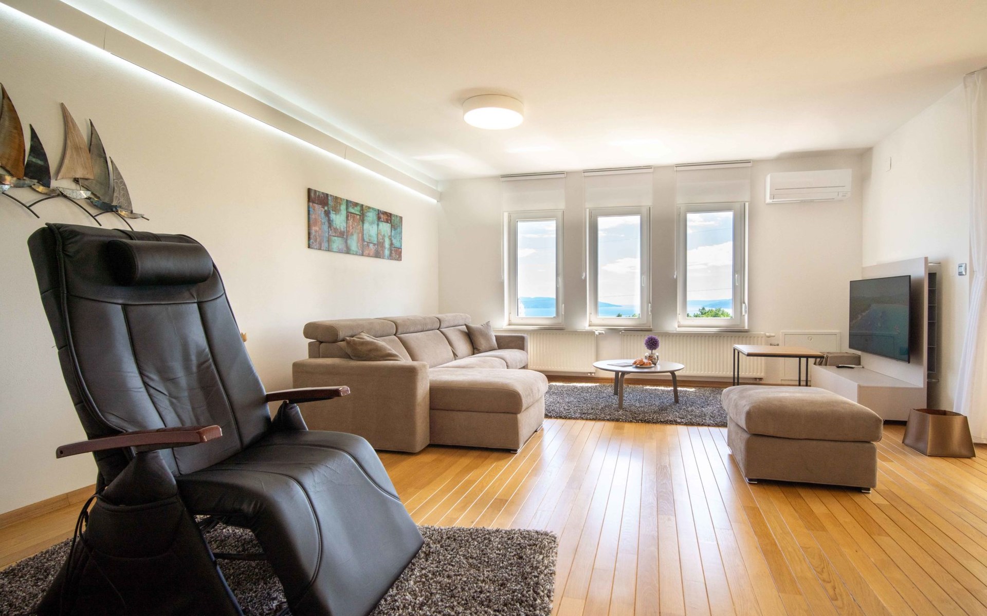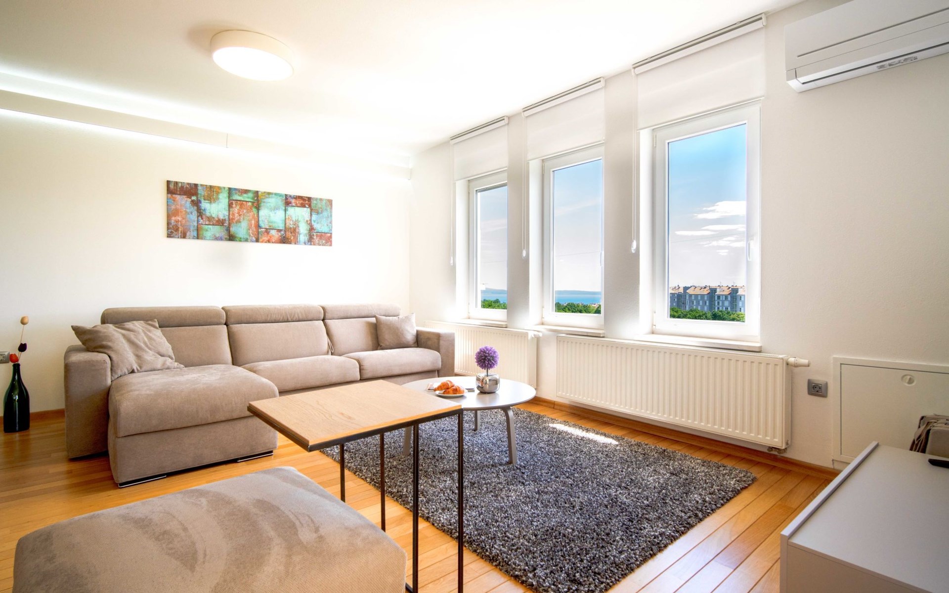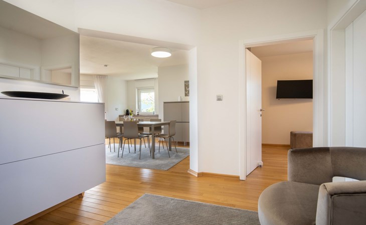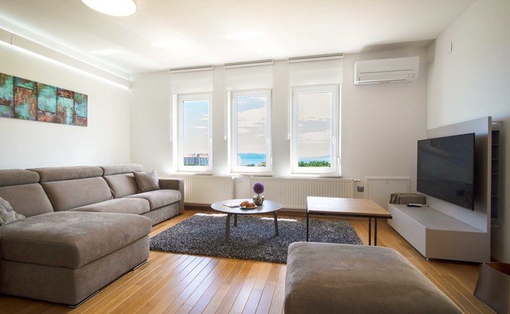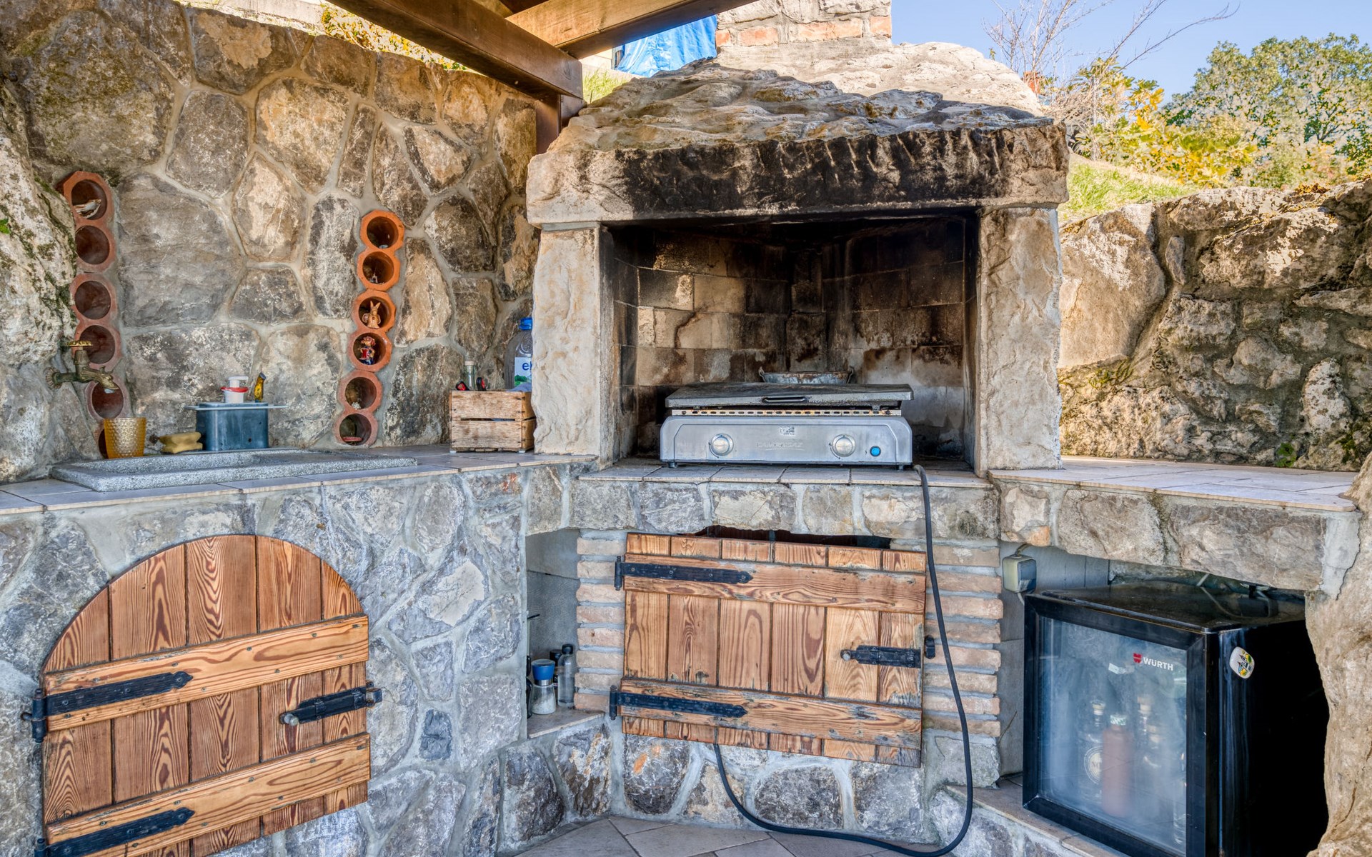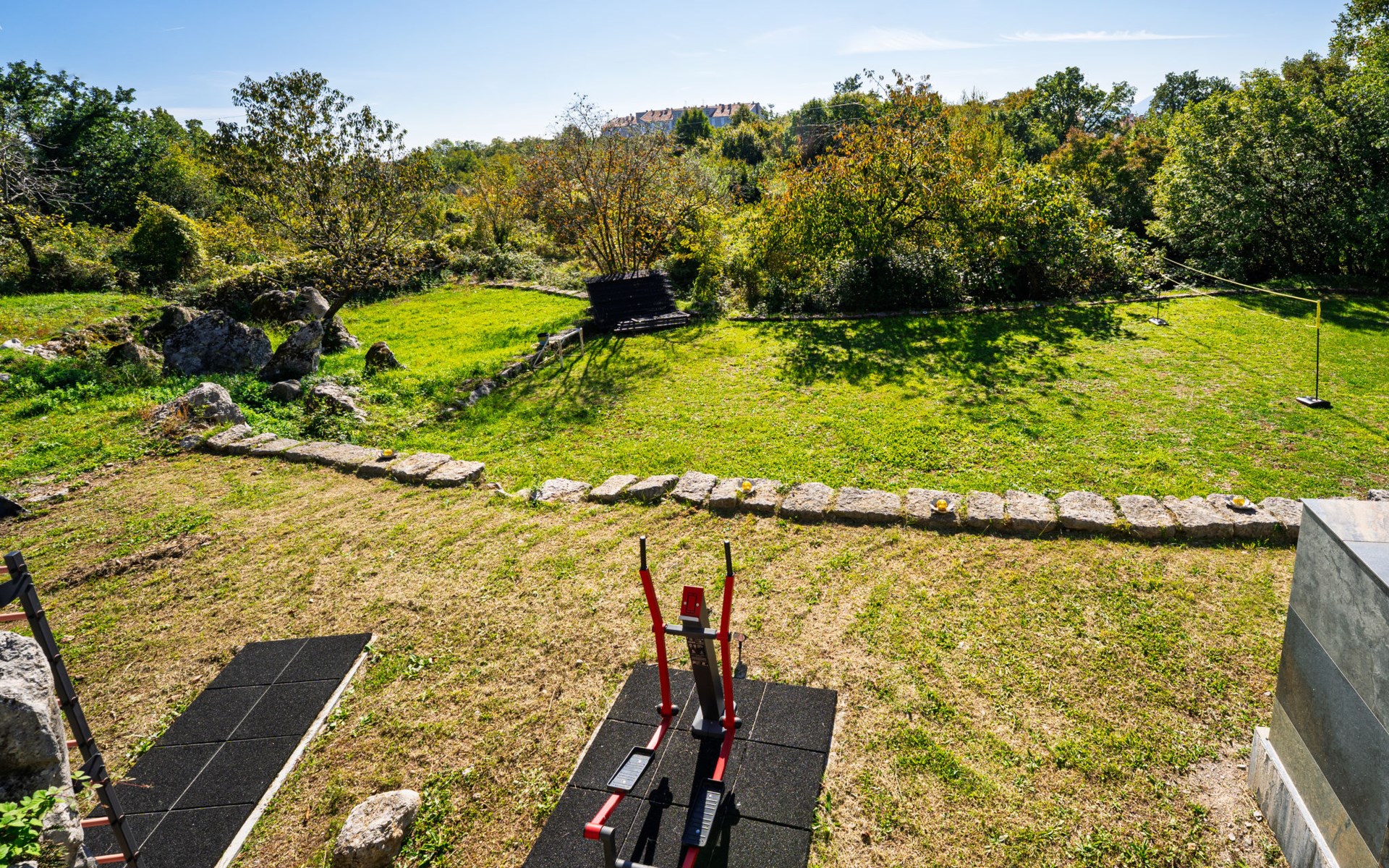 Kastav 7 km from Opatija: 3-family house "Kvarner house". 850 m from the centre of Kastav, 9.5 km from the centre of Rijeka, in a quiet, sunny, elevated position, 5.5 km from the sea. For shared use: property 2'000 m2 with lawn and plants, swimming pool angular (7 x 4 m, depth 150 cm, seasonal availability: 01.May. - 01.Oct.) with internal staircase and salt-electrolysis pool-cleaning system. Outdoor shower, hot tub, terrace (30 m2), garden furniture, barbecue. In the house: internet access. Parking at the house on the premises. Shop, supermarket 650 m, restaurant 850 m, bus stop 500 m, pebble beach 5.5 km, concrete beach 5.5 km. ,The hot tub can be used all year round.