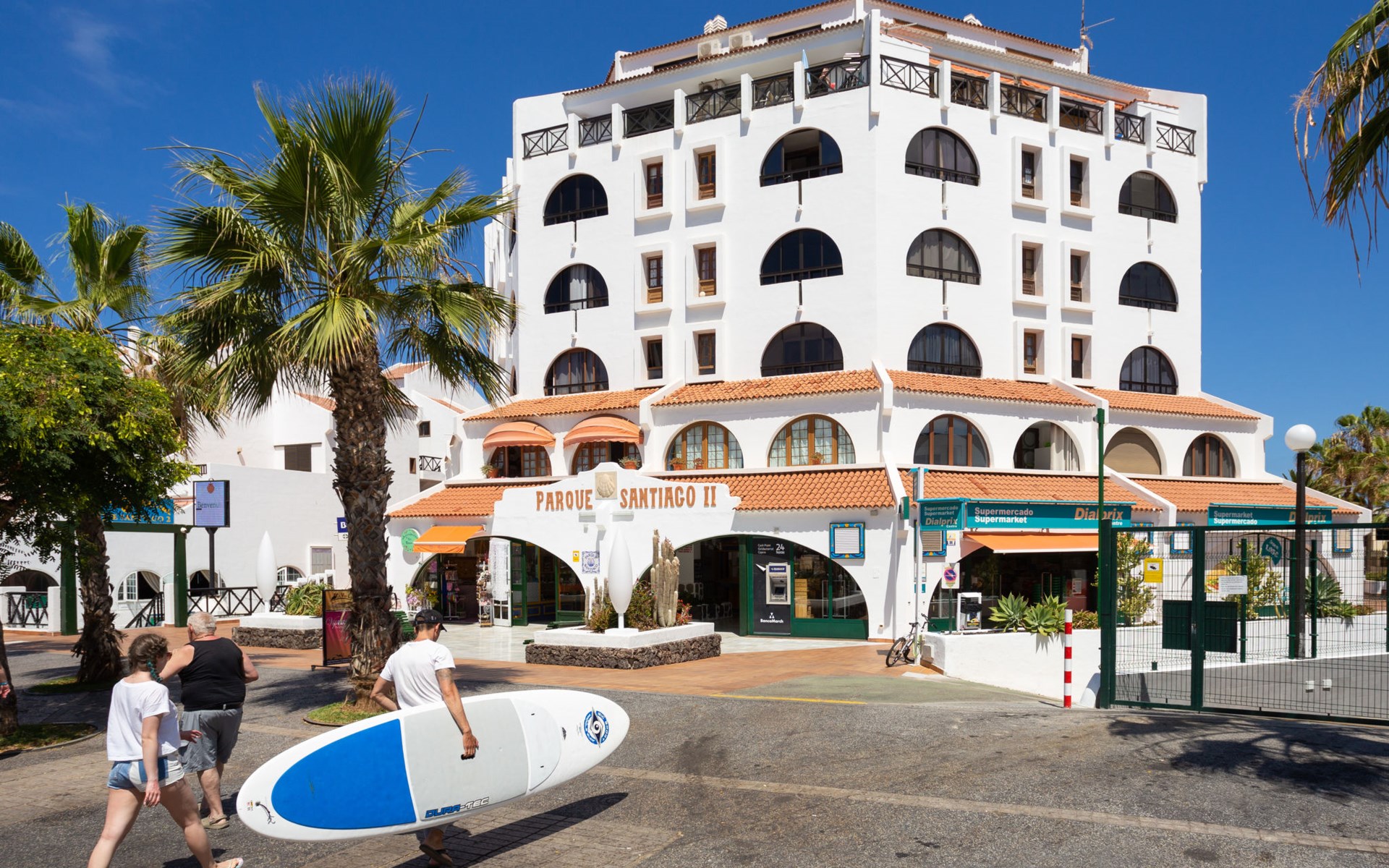 POOL PRICES: SUNBEDS 3,50 E CUSHIONS 1,50 E UMBRELLA 1,50 E aparthotel "Parque Santiago II". In the centre of Playa las Américas, 200 m from the sea. For shared use: swimming pool fenced (depth 100 - 250 cm, seasonal availability: 01.Jan. pool opening hours: 09:30-19:00 and 09:30-17:30). WC in the pool area, shower/WC in the pool area, children's pool. In the complex: restaurant, bar. Supermarket 30 m, restaurant 40 m, bar 30 m, café, pedestrian zone 20 m, bus stop 550 m, sandy beach 200 m. Golf course (18 hole) 2.4 km, surf school, sailing school 20 m, minigolf 550 m, children's playground 30 m. Nearby attractions: Shopping Center Oasis and Safari 800 m, Playa de las Américas 200 m, Siam Mall 2.6 km, Siam Park 2.3 km. Please note: baby equipment on request. The owner does not accept any youth groups.