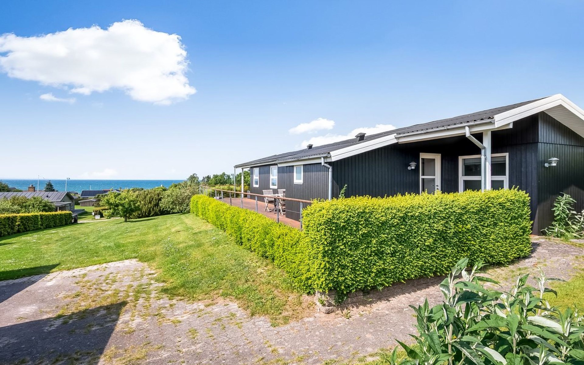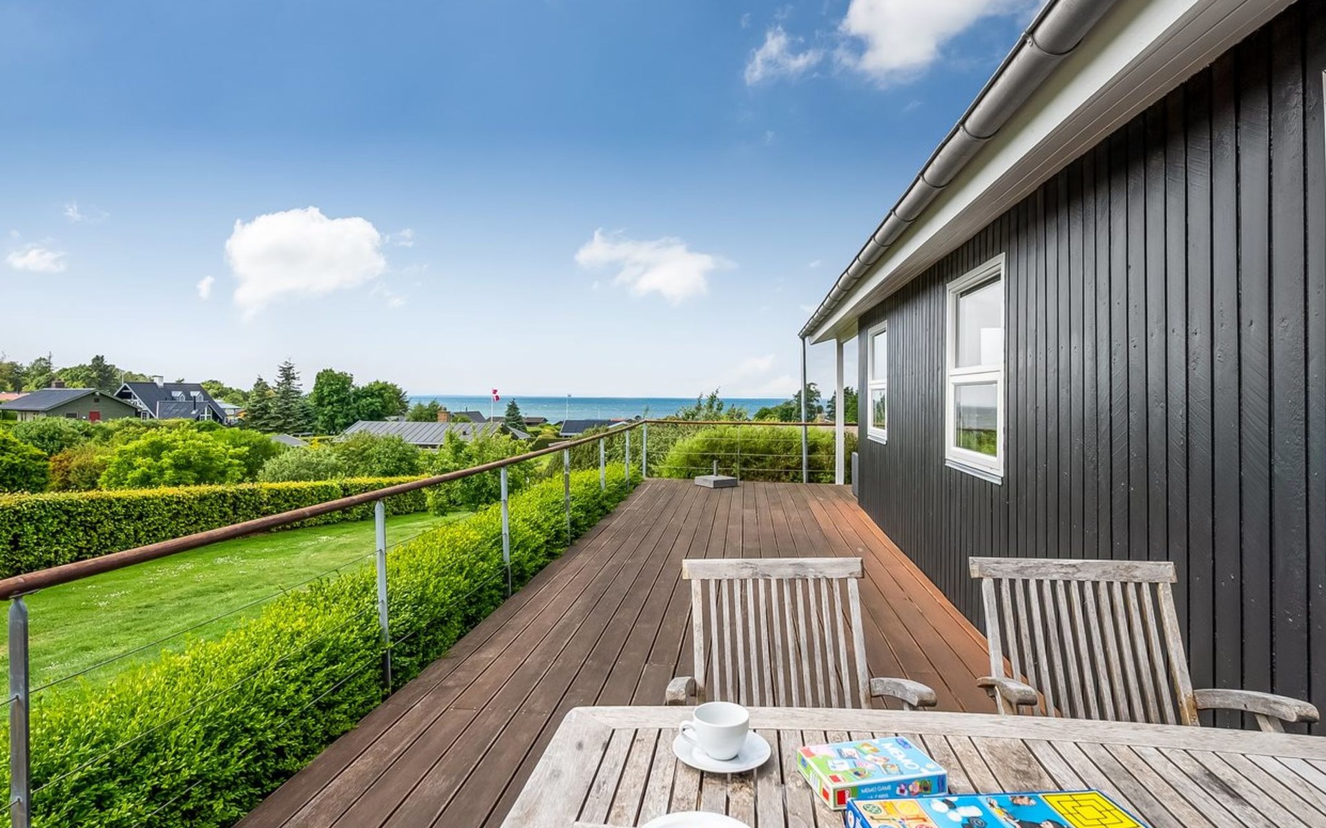Single-family house, built in 1979. 250 m from the sea. Private: property 1'214 m2, well-kept garden. Children's playground (slide, swing). In the house: washing machine, tumble dryer. Parking at the house. Grocery 3.5 km. The owner does not accept any youth groups.