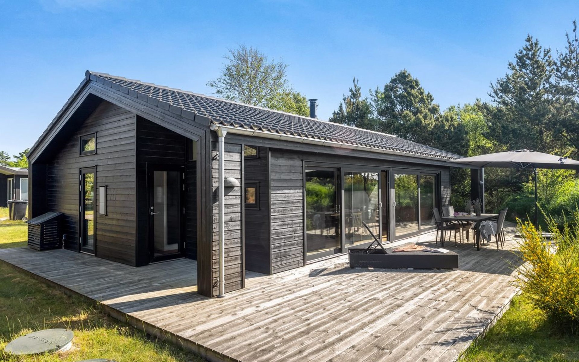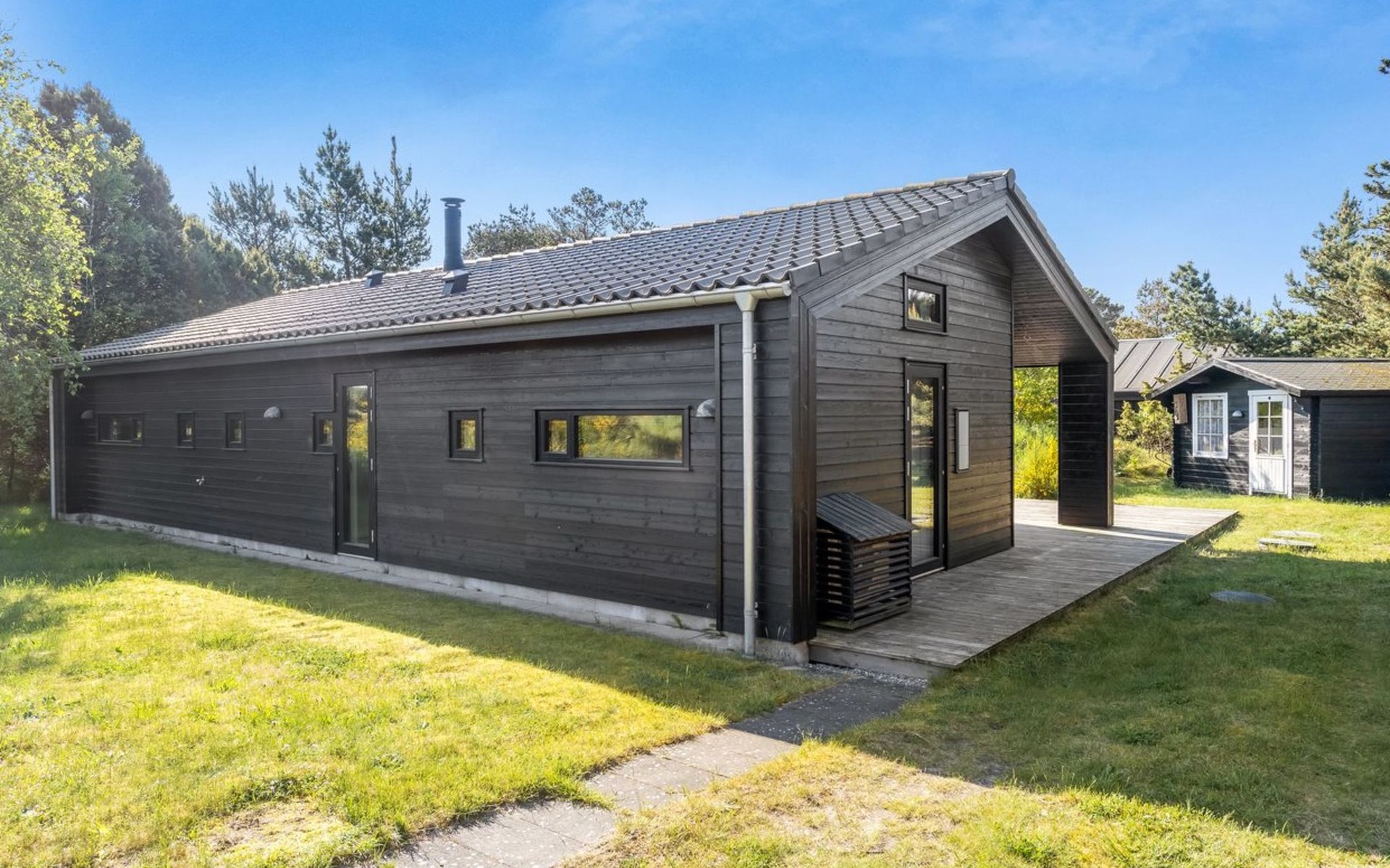 Single-family house, built in 2017. 100 m from the sea. Private: natural state property 1'000 m2. Barbecue. In the house: washing machine. Parking at the house. Grocery 6.2 km. Golf course 9.2 km. The owner does not accept any youth groups.