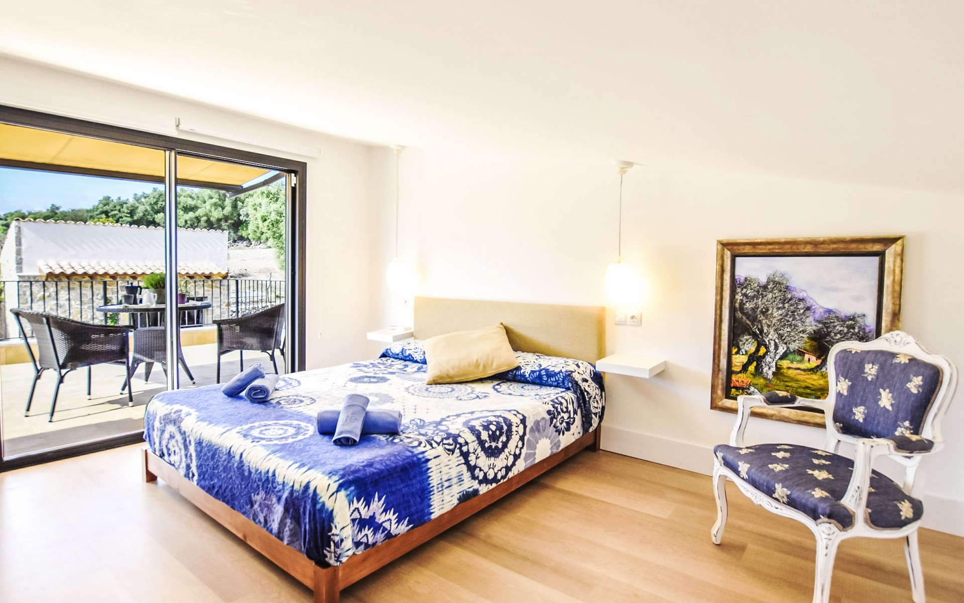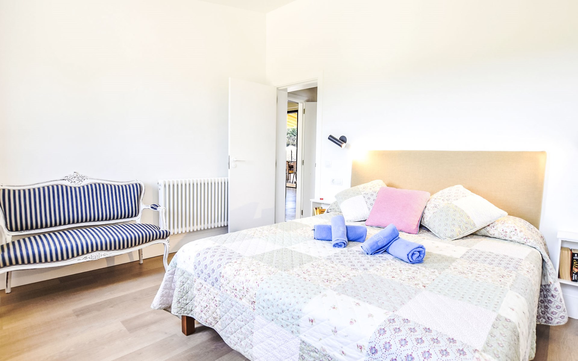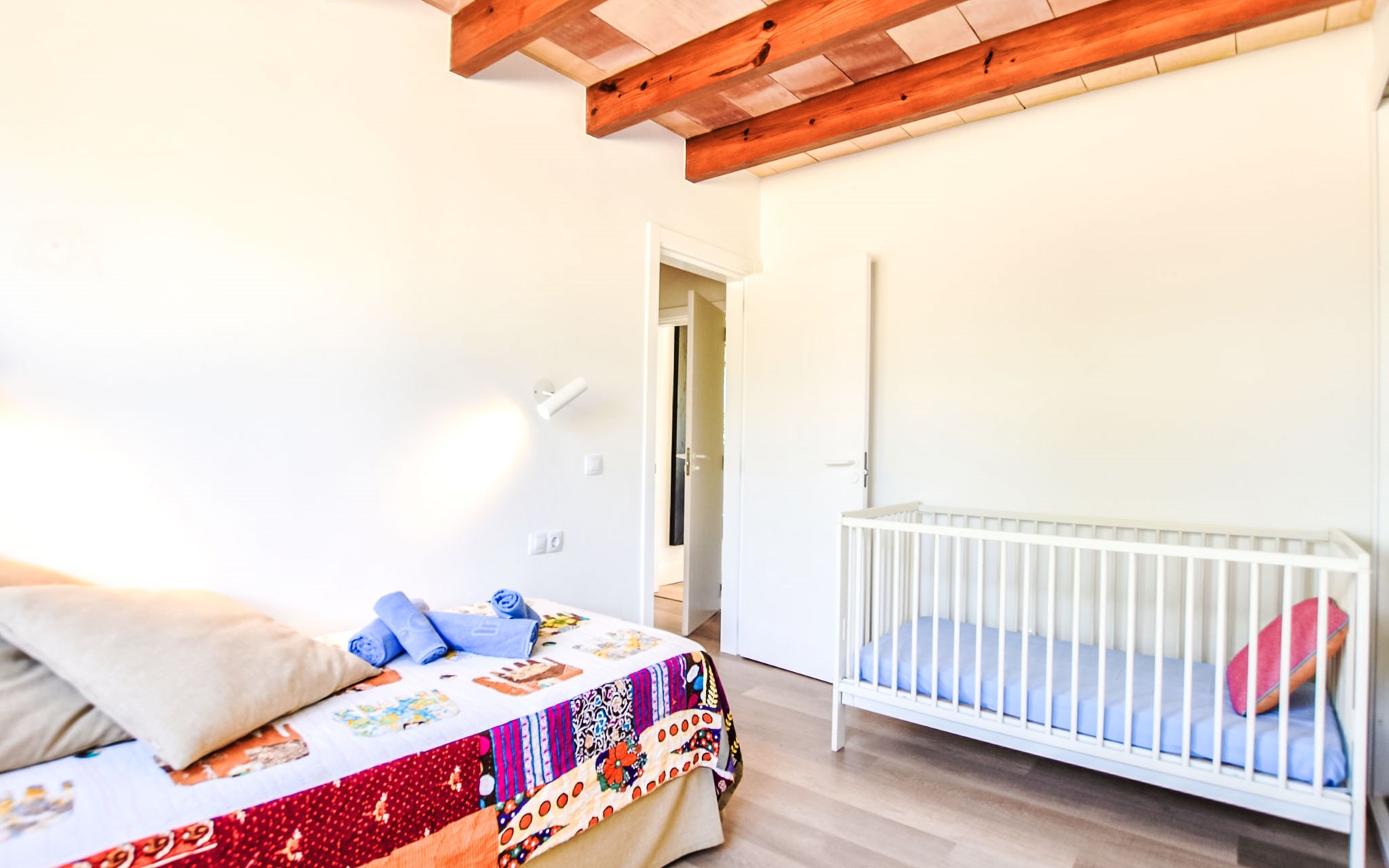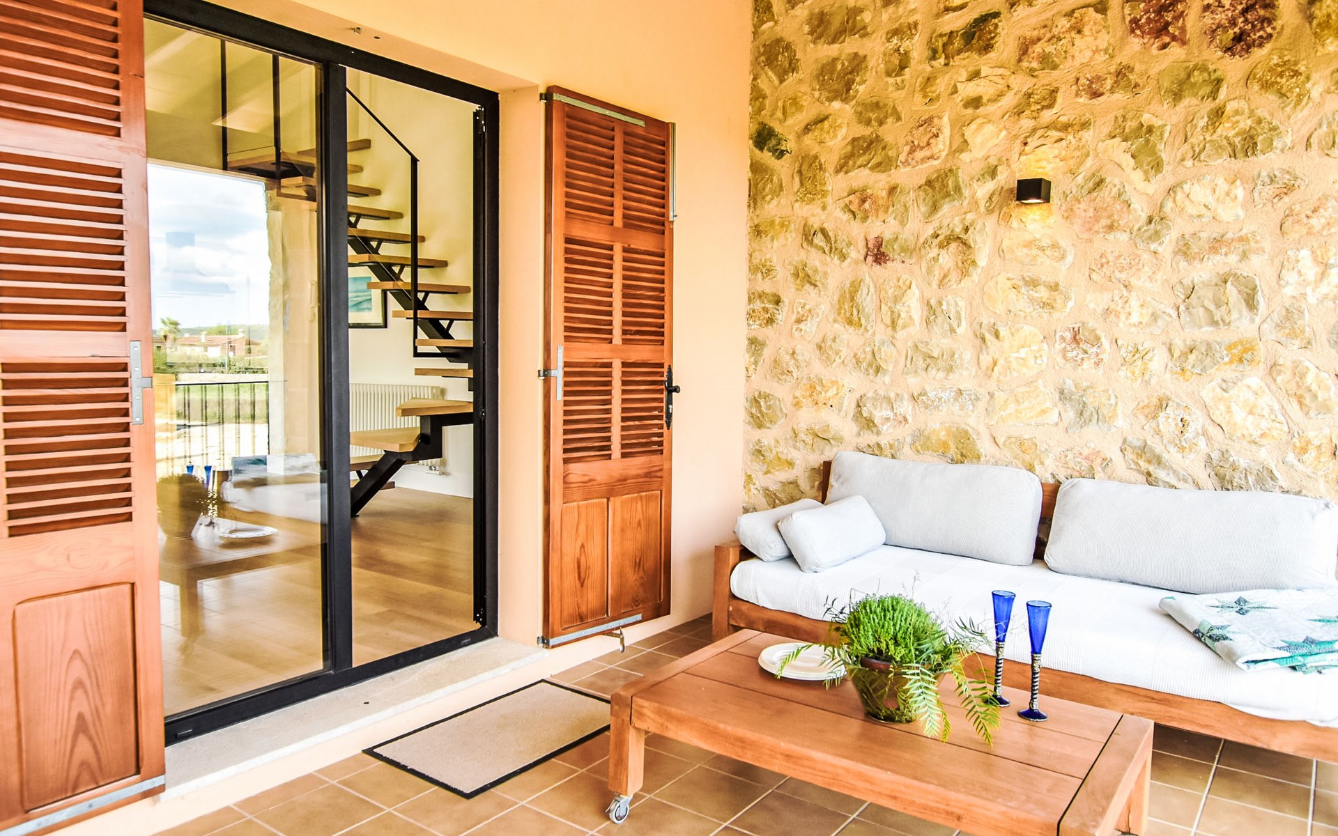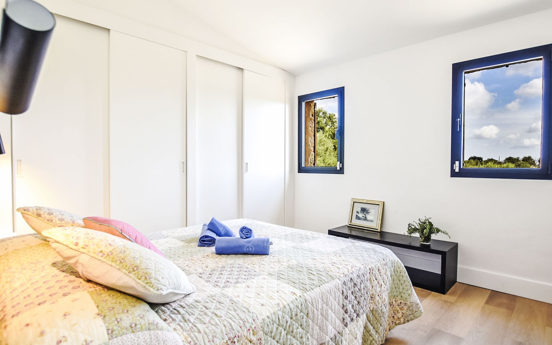 4 km from Sineu: It is an ecological and self-sufficient house, that means that you can not make a misuse of water, heating and electricity to avoid deficiencies in these services. No parties or events are allowed on the farm. Very beautiful, comfortable farm estate "Son Tey", 2 storeys, built in 2017, surrounded by fields. Outside the resort, 4.5 km from the centre of Sineu, in a quiet, sunny position, 1 km from the edge of the forest, 27 km from the sea, 27 km from the beach. Private: garden with lawn and wildlife garden, swimming pool angular (8 x 4 m, depth 120 - 170 cm, seasonal availability: 01.Jan. - 31.Dec.). Patio, arbour, pergola, garden furniture, barbecue. In the house: internet access, WiFi, central heating system, air conditioning, burglar alarm system, washing machine. Parking at the house on the premises. Shop 4.5 km, grocery 4.5 km, supermarket 4.5 km, restaurant 4.3 km, bar 4.3 km, bakery 4.5 km, café 4.2 km, bicycle rental 4.5 km, 50 minute walk to the centre, bus stop 4.5 km, railway station 4.5 km, sandy beach 27 km, rocky beach 27 km. Sports harbour 27 km, golf course (18 hole) 35 m, tennis 5.5 km, walking paths from the house 1 km, cycle lane 900 m. Nearby attractions: Local Market Sineu, Petra, Sineu, Sant Joan, Sencelles. Ruta Arqueológica de Costitx, Observatorio Astronómico de Mallorca. Ciudad de Inca. Hiking paths: Ermita de Bonany, Petra. Serra de Tramuntana. Please note: car recommended. Suitable for families, suitable for seniors. Object suitable for 6 adults groups of teenagers on request only. Loading and unloading of baggage is possible at the holiday house. Airfield 40 km from the property.