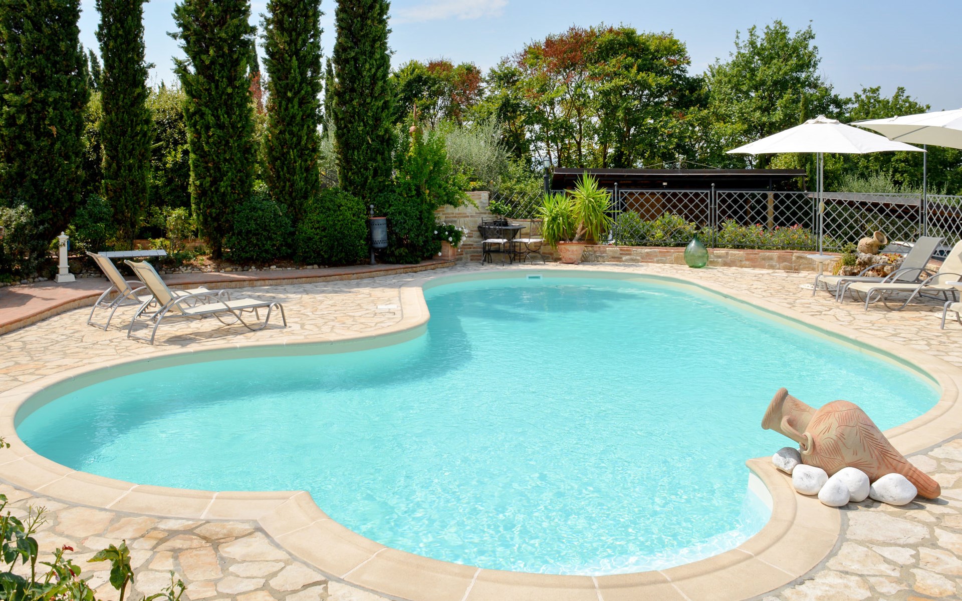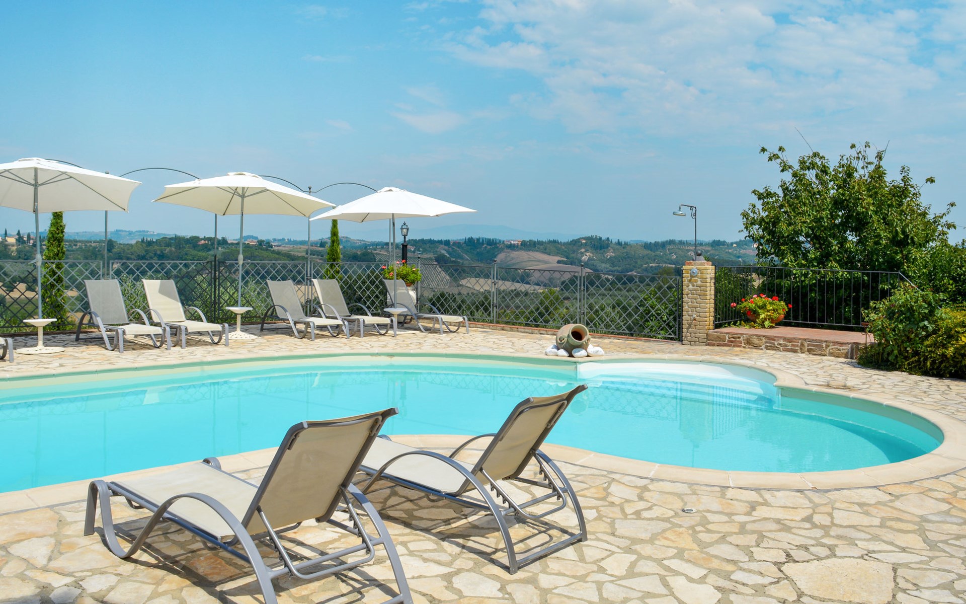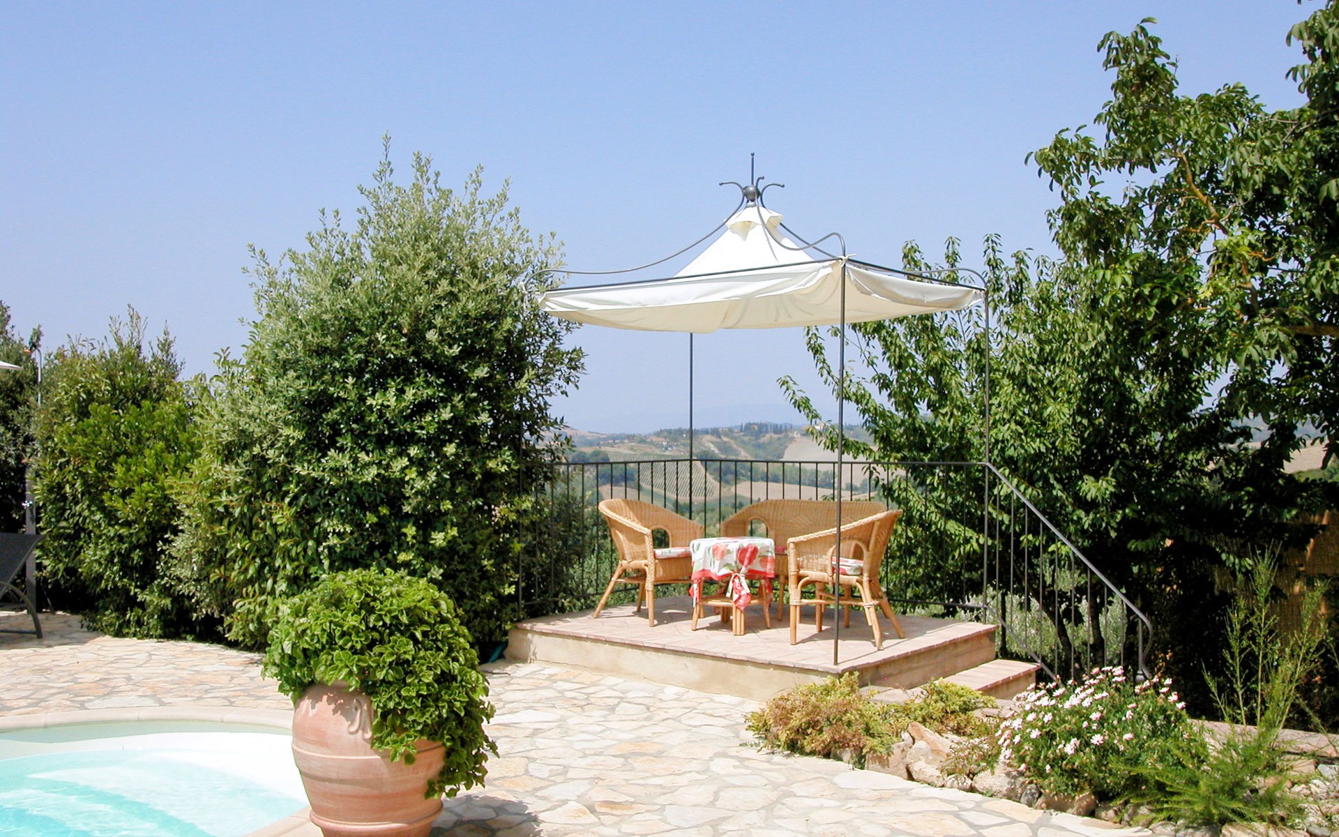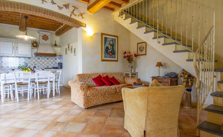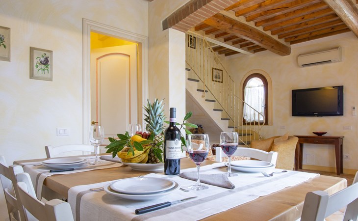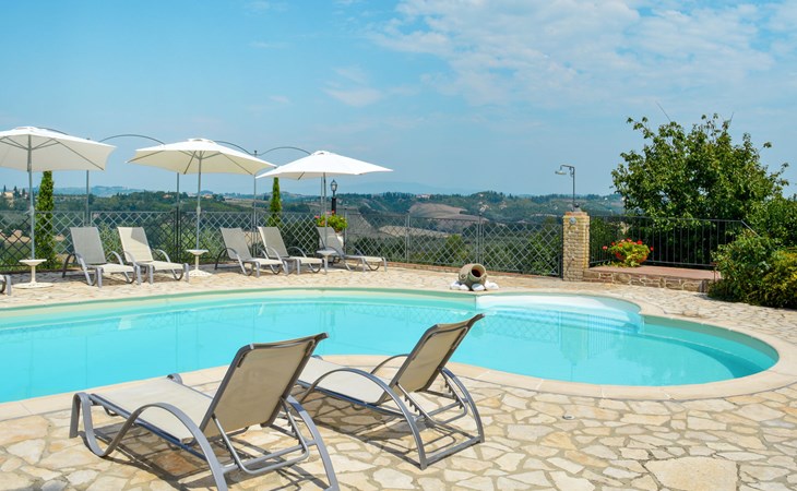 House "L'Ulivo". 3 km from the centre of Castelfiorentino, 11 km from the centre of San Miniato, 40 km from the centre of Florenz. For shared use: property 16'000 m2, terraced garden with plants, orchard, swimming pool (14 x 4 m, depth 120 - 180 cm, seasonal availability: 27.Mar. - 23.Oct.). Outdoor shower, table tennis. In the house: table tennis, washing machine (for shared use, extra), heating available only from 01.Nov. - 31.Mar.. Roofed, parking on the premises. Supermarket 3 km, bus stop 4 km.