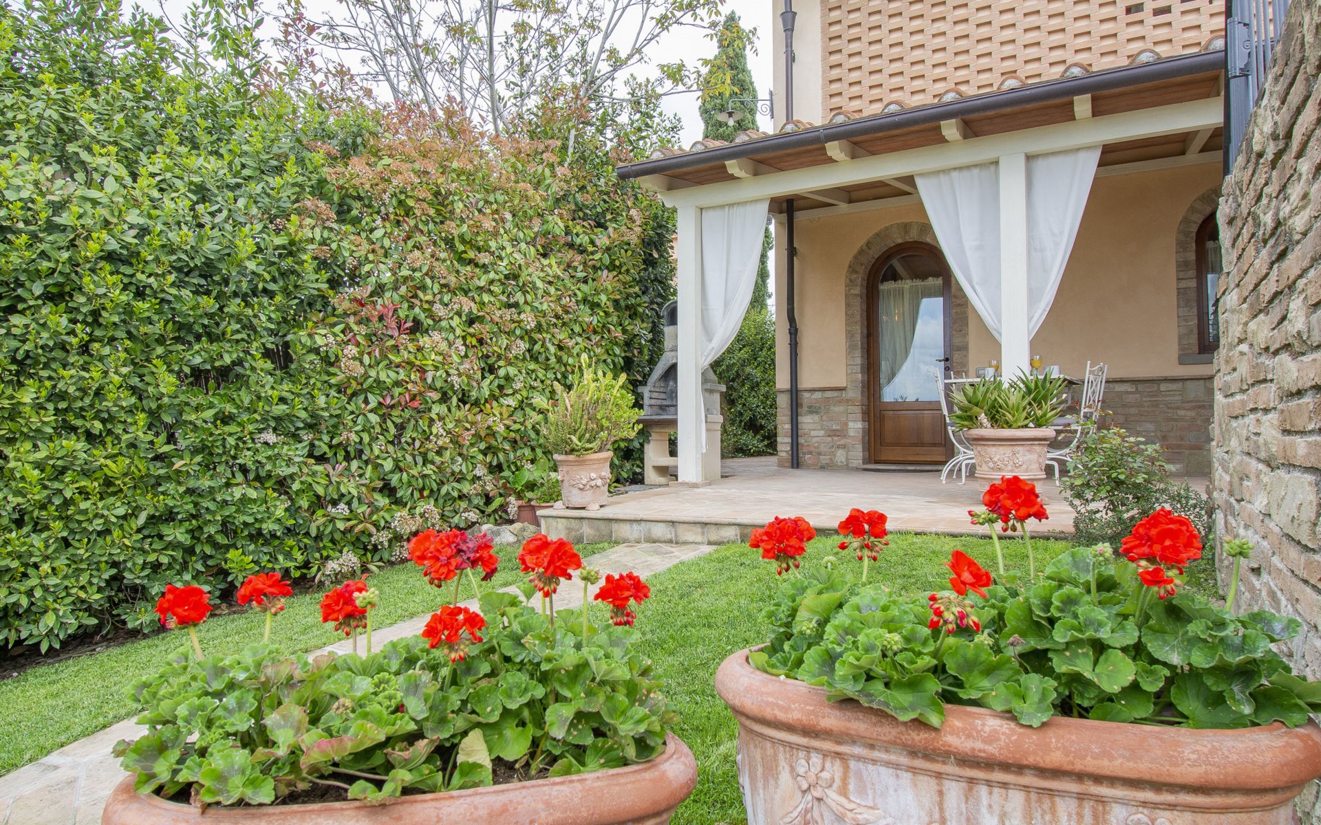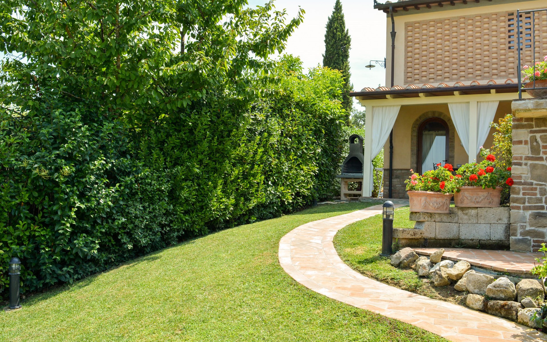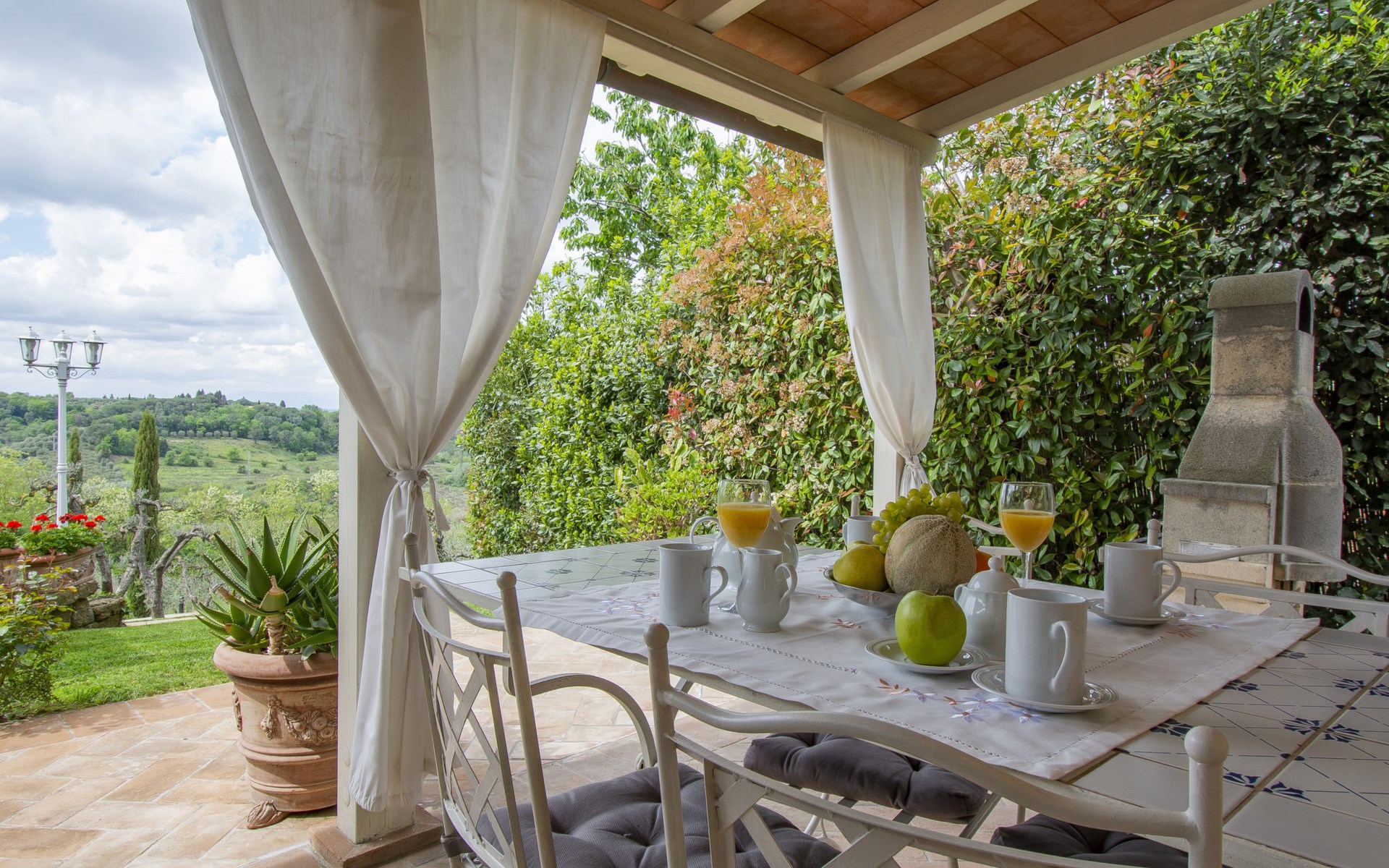 House "L'Ulivo". 3 km from the centre of Castelfiorentino, 11 km from the centre of San Miniato, 40 km from the centre of Florenz. For shared use: property 16'000 m2, terraced garden with plants, orchard, swimming pool (14 x 4 m, depth 120 - 180 cm, seasonal availability: 27.Mar. - 23.Oct.). Outdoor shower, table tennis. In the house: table tennis, washing machine (for shared use, extra), heating available only from 01.Nov. - 31.Mar.. Roofed, parking on the premises. Supermarket 3 km, bus stop 4 km.