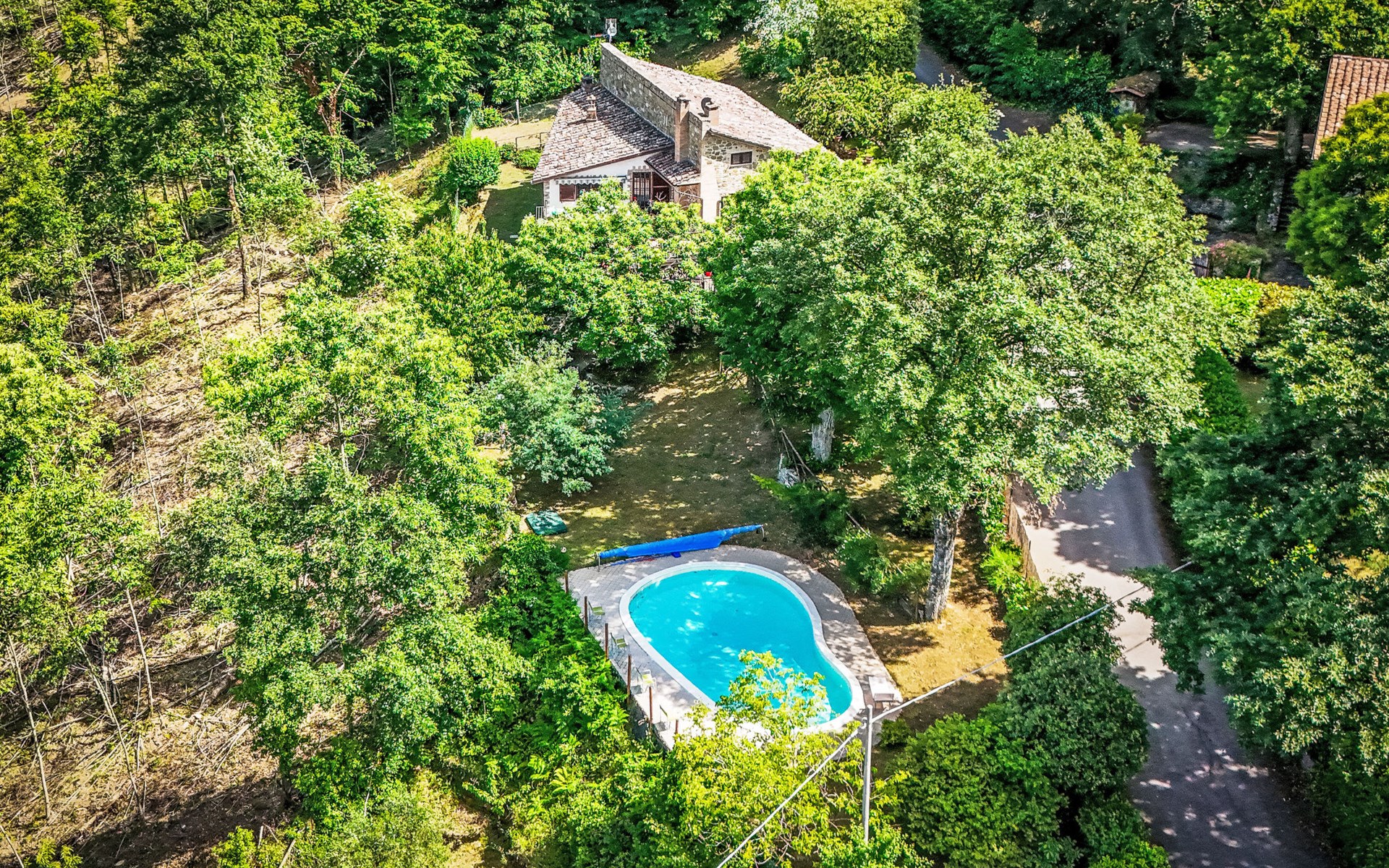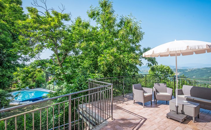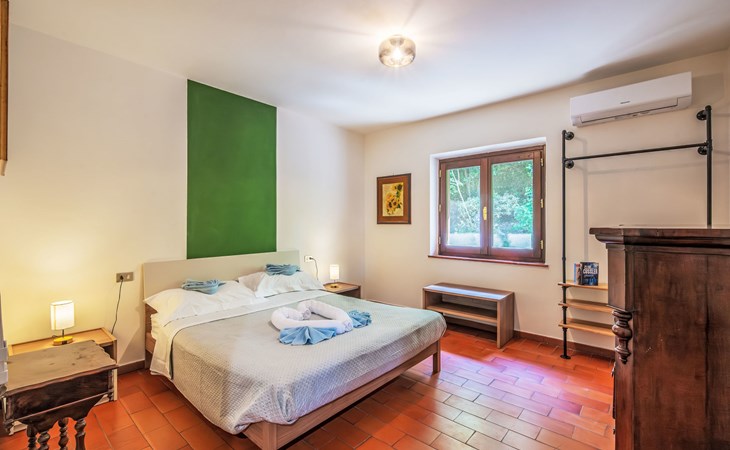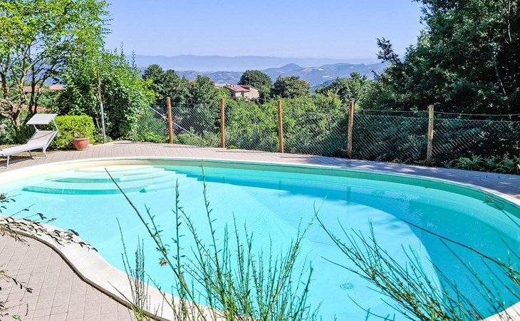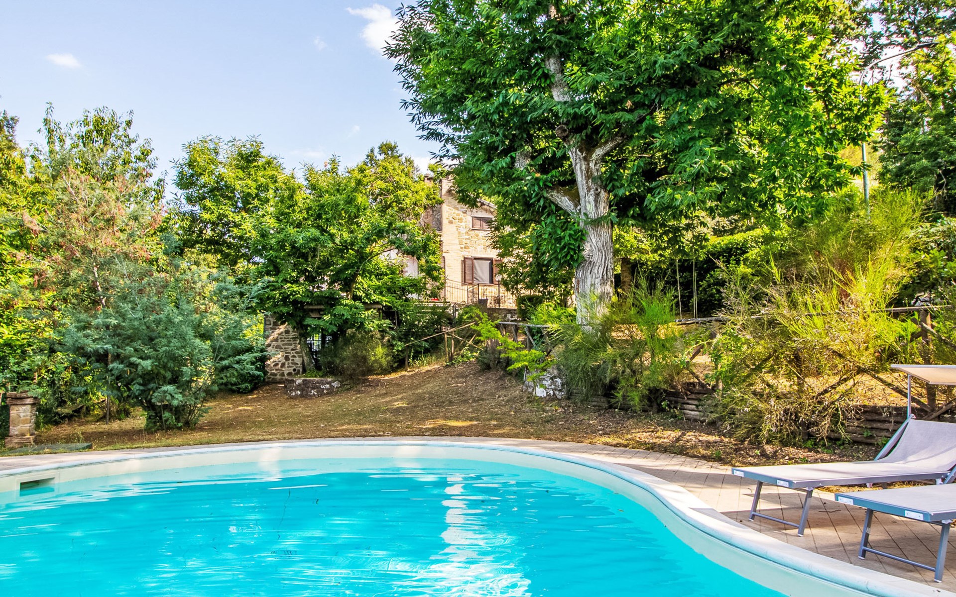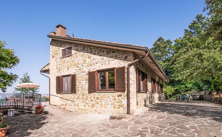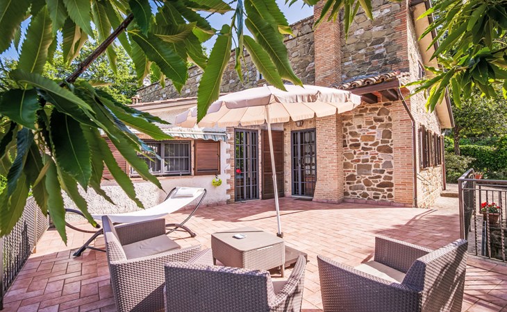 Cosy, comfortable country house "I Tre Castagni", detached, renovated in 2025, surrounded by trees. Private: park 2'000 m2 (fenced), swimming pool (4 x 10 m, depth 120 - 200 cm, seasonal availability: 19.May. - 30.Sep.). Outdoor shower, garden furniture, barbecue, parking on the premises. Supermarket 9 km, restaurant 5 km, thermal baths "Trasimeno" 26 km. Nearby attractions: Piegaro 4 km, Città Della Pieve 14 km, Panicale 15 km, Perugia 36 km, Montepulciano 40 km, Pienza 50 km. Please note: car recommended. The owner does not accept any youth groups.