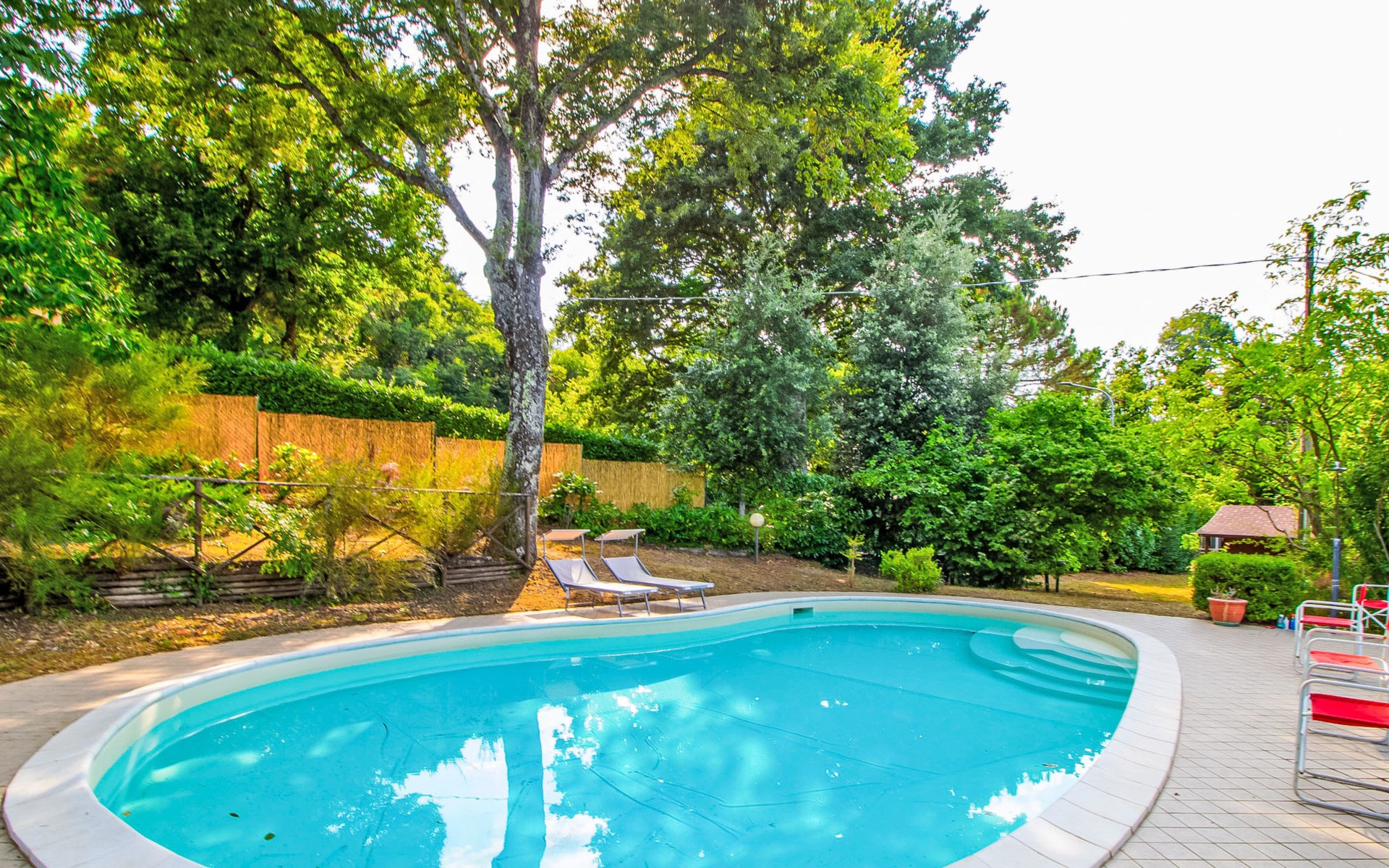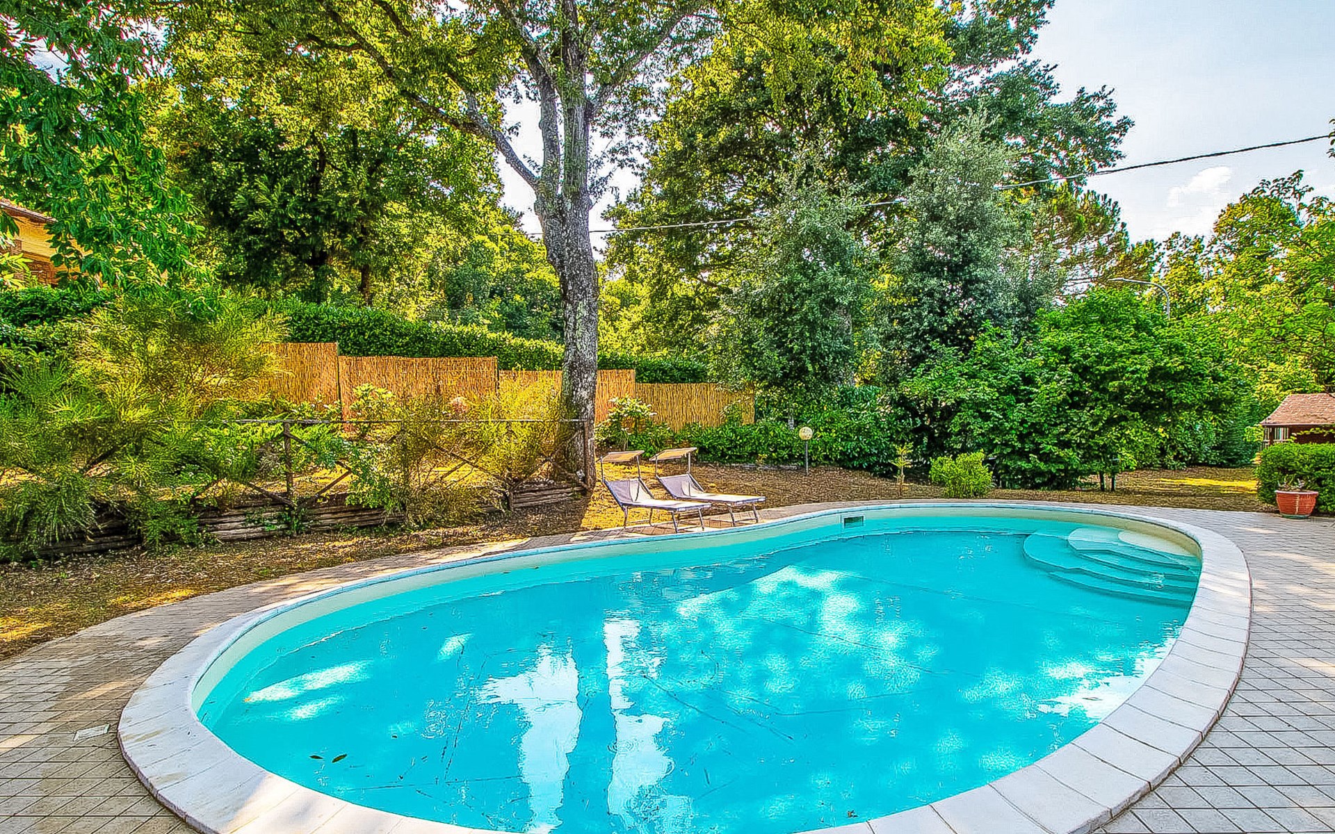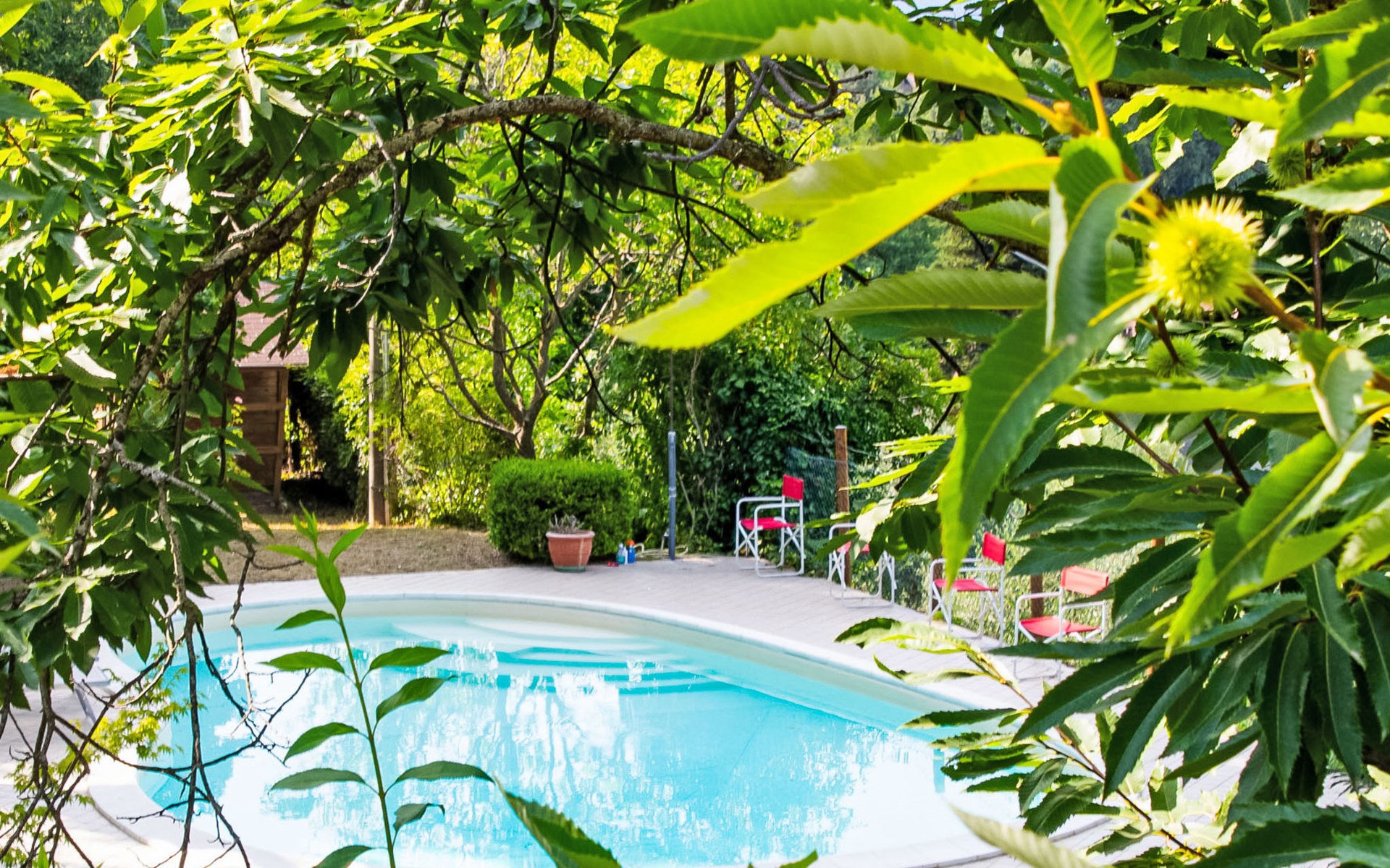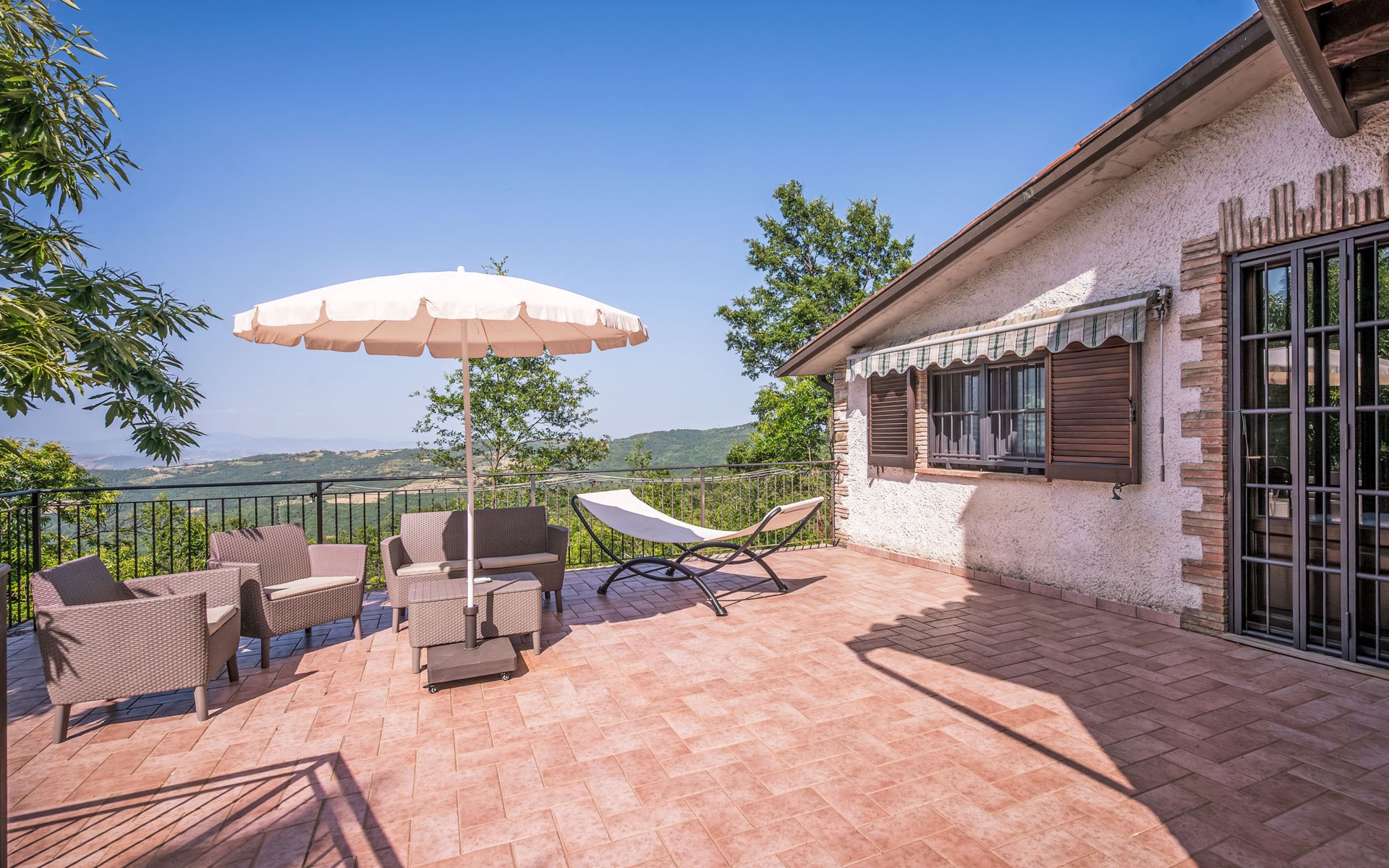 Cosy, comfortable country house "I Tre Castagni", detached, renovated in 2025, surrounded by trees. Private: park 2'000 m2 (fenced), swimming pool (4 x 10 m, depth 120 - 200 cm, seasonal availability: 19.May. - 30.Sep.). Outdoor shower, garden furniture, barbecue, parking on the premises. Supermarket 9 km, restaurant 5 km, thermal baths "Trasimeno" 26 km. Nearby attractions: Piegaro 4 km, Città Della Pieve 14 km, Panicale 15 km, Perugia 36 km, Montepulciano 40 km, Pienza 50 km. Please note: car recommended. The owner does not accept any youth groups.