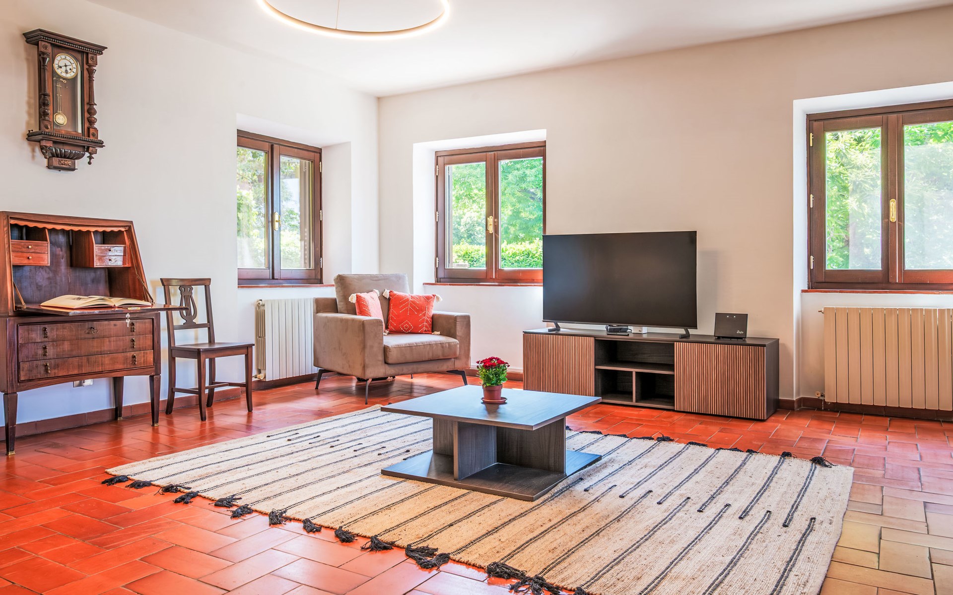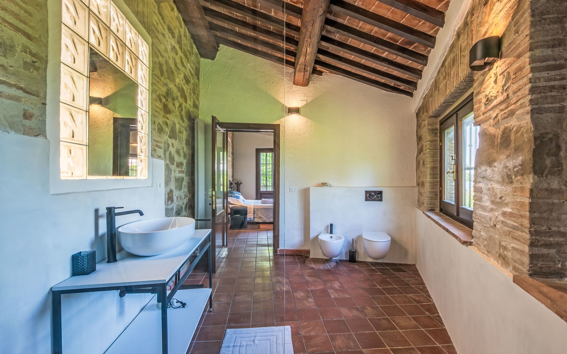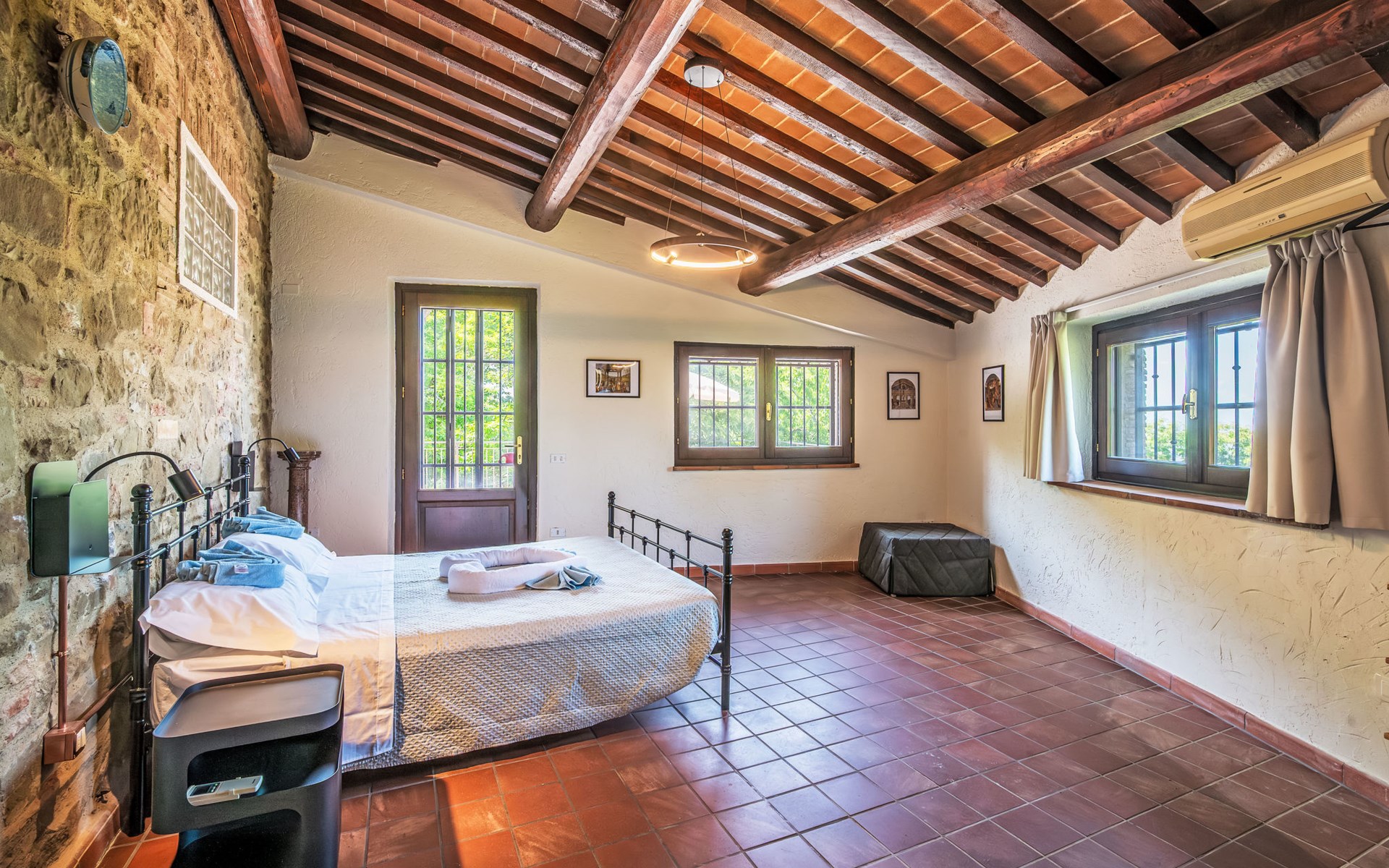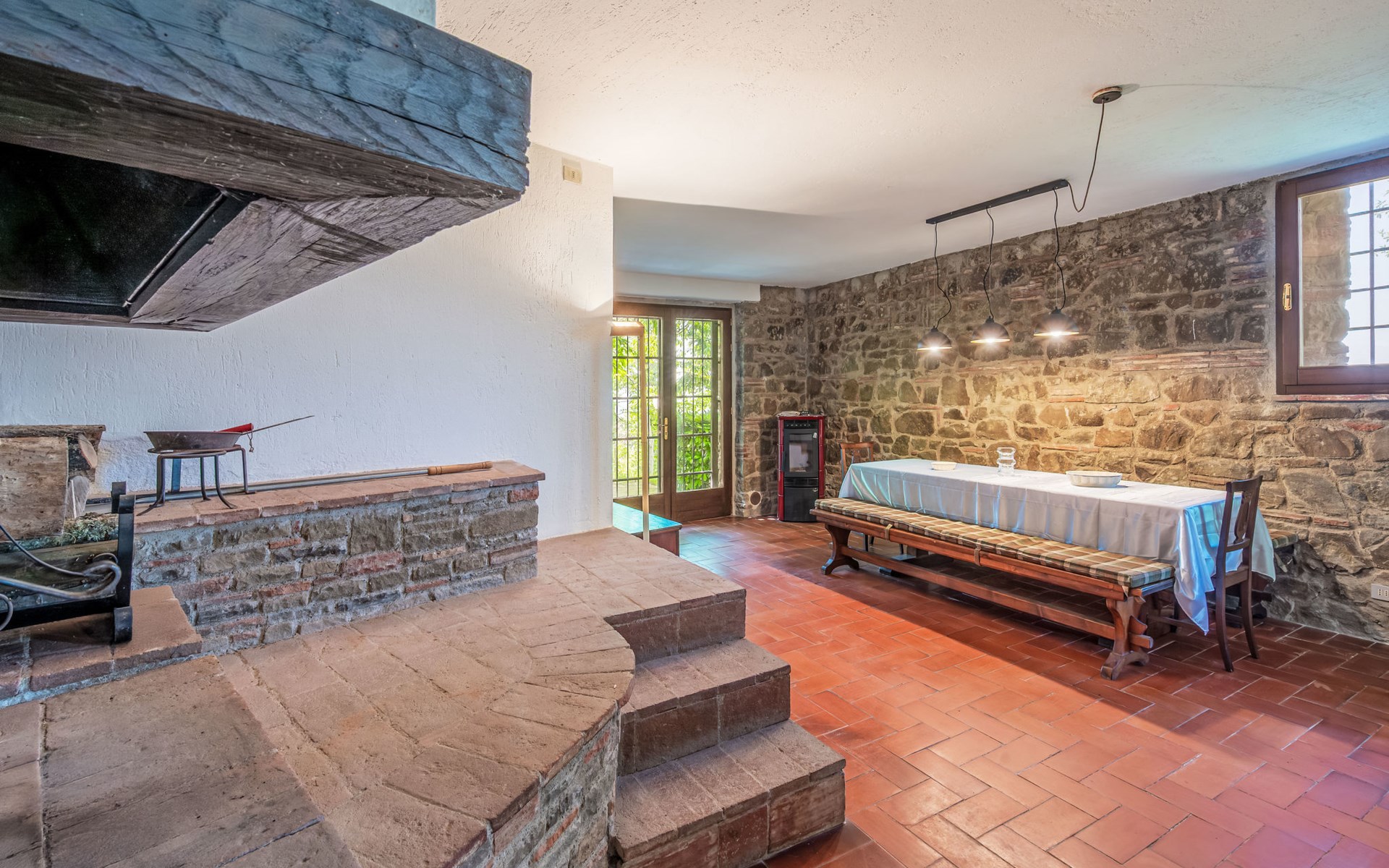 Cosy, comfortable country house "I Tre Castagni", detached, renovated in 2025, surrounded by trees. Private: park 2'000 m2 (fenced), swimming pool (4 x 10 m, depth 120 - 200 cm, seasonal availability: 19.May. - 30.Sep.). Outdoor shower, garden furniture, barbecue, parking on the premises. Supermarket 9 km, restaurant 5 km, thermal baths "Trasimeno" 26 km. Nearby attractions: Piegaro 4 km, Città Della Pieve 14 km, Panicale 15 km, Perugia 36 km, Montepulciano 40 km, Pienza 50 km. Please note: car recommended. The owner does not accept any youth groups.
