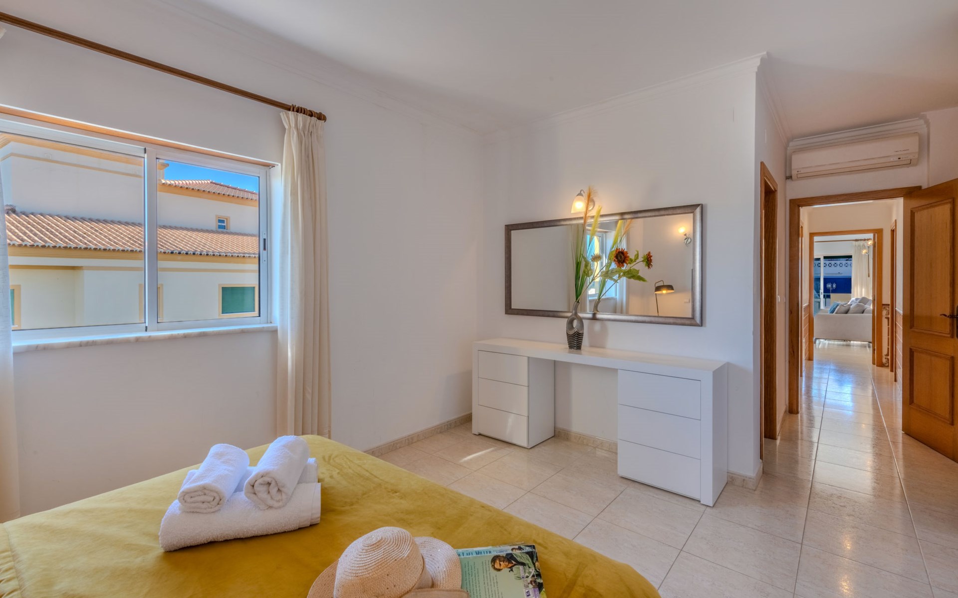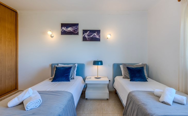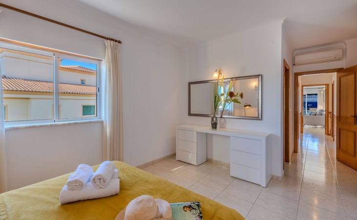 Albufeira: Very cosy apartment block "Sunny Escape". Residential area (villas), 1.1 km from the sea. For shared use: swimming pool kidney-shaped (4 x 9 m, depth 90 - 190 cm, seasonal availability: 01.Jan. - 31.Dec.). In the house: WiFi, air conditioning. Parking at the house. Grocery 1.2 km, supermarket 1.2 km, shopping centre 1.6 km, restaurant 900 m, bar 1.4 km, bakery 1.2 km, café 850 m, bicycle rental 3.1 km, bus stop 300 m, sandy beach "Praia de Albufeira" 1.1 km. Marina 6 km, golf course (18 hole) 7.3 km, surf school 9.5 km, tennis 7.1 km, riding stable 11.1 km, children's playground 4.2 km. Nearby attractions: Zoomarine 13.6 km, Aqualand 19.8 km, Krazy World 17.5 km, Sand City 25.1 km, Algarve Shopping 11 km, Parque Aventura Albufeira 2.5 km. Please note: car recommended, no lift. Suitable for families. The owner does not accept any groups. All groups of young people under 25 years old must pay an extra deposit in cash on arrival.