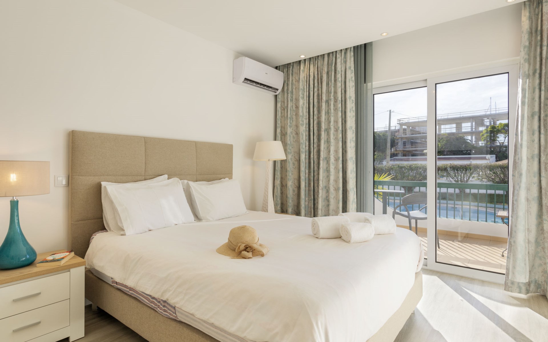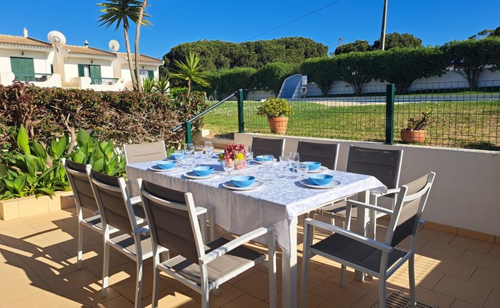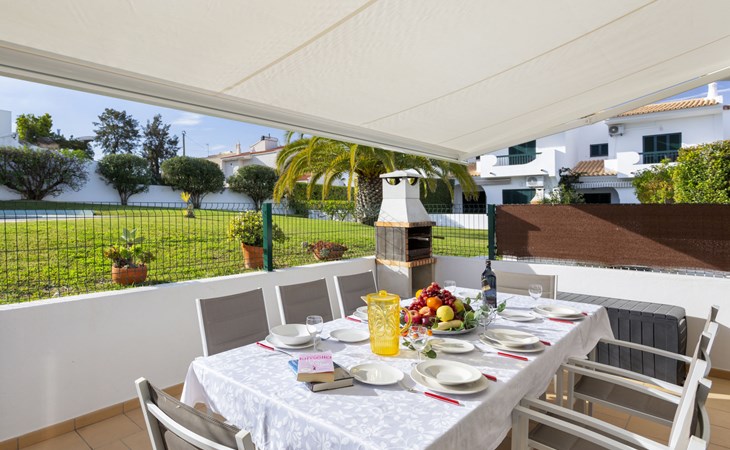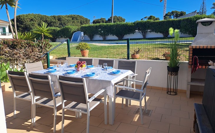 Modern, cosy terraced house "Pierre". In the district of Galé - Sesmarias, residential area (villas), 1.1 km from the sea. For shared use: swimming pool angular (4 x 8 m, depth 70 - 250 cm, seasonal availability: 01.Jan. - 31.Dec. pool opening hours: 09:00-20:00). Outdoor shower. Private: terrace, garden furniture, barbecue. In the house: WiFi, air conditioning, washing machine, tumble dryer. Parking at the house. Grocery 900 m, supermarket, shopping centre 6.8 km, restaurant 400 m, bar 50 m, bakery 1.3 km, café 1.3 km, bicycle rental 5.5 km, bus stop 450 m, railway station "Ferreiras - Albufeira" 9.7 km, sandy beach "Do Castelo" 1.1 km, diving center 3.7 km. Marina 3.1 km, golf course (18 hole) 3.8 km, surf school 1.9 km, minigolf 7.5 km, riding stable 3.9 km, children's playground 6.8 km. Nearby attractions: Adventure Mini Golf Park 7.5 km, Zoomarine 7.9 km, Algarve Shopping in Guia 8.7 km, Zebra Safari Tours 9.4 km, Krazy World 14.6 km, Faro Airport 46.1 km. Well-known lakes can easily be reached: Lagoa dos Salgados 7.6 km. Please note: Loading and unloading of baggage is possible at the holiday house. Young groups under 25 y.o. will be charged an extra deposit per person on spot.