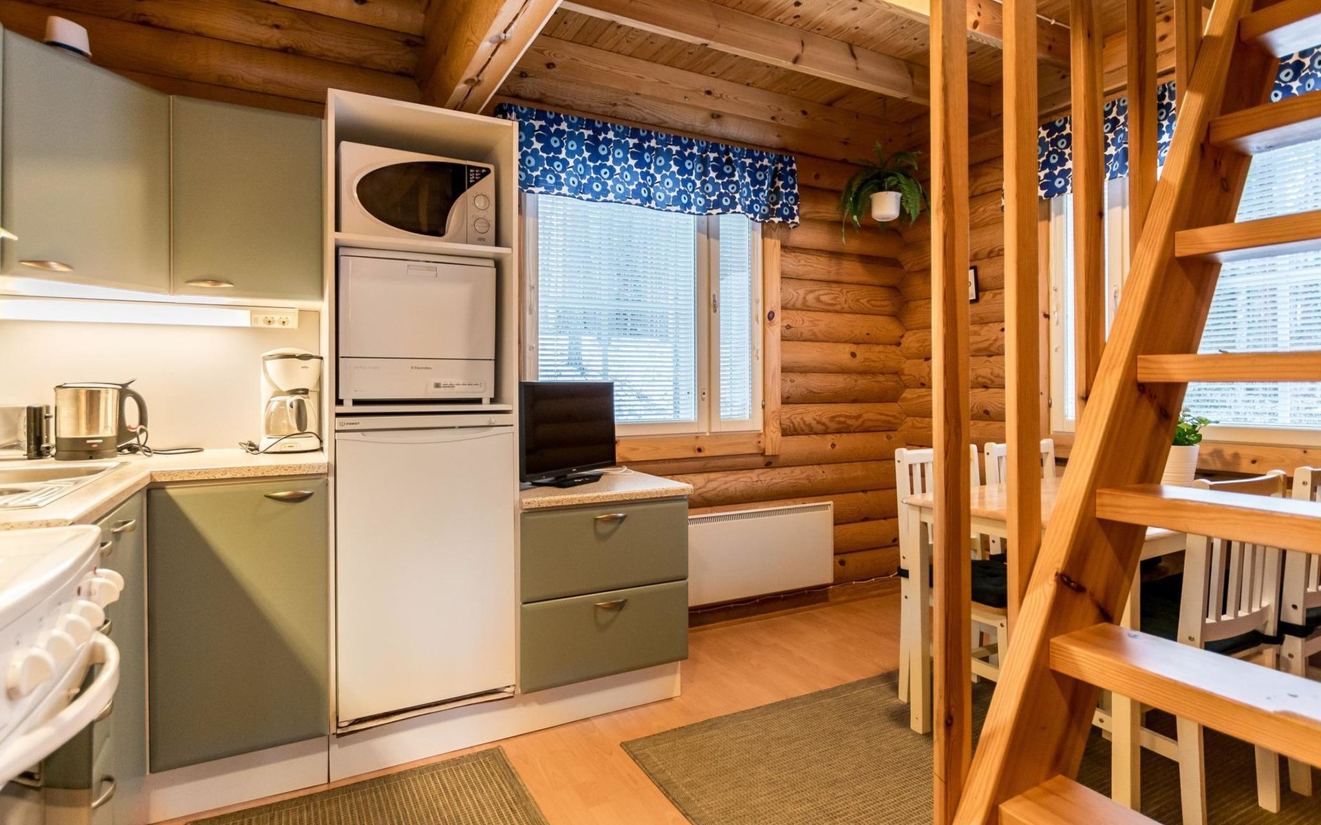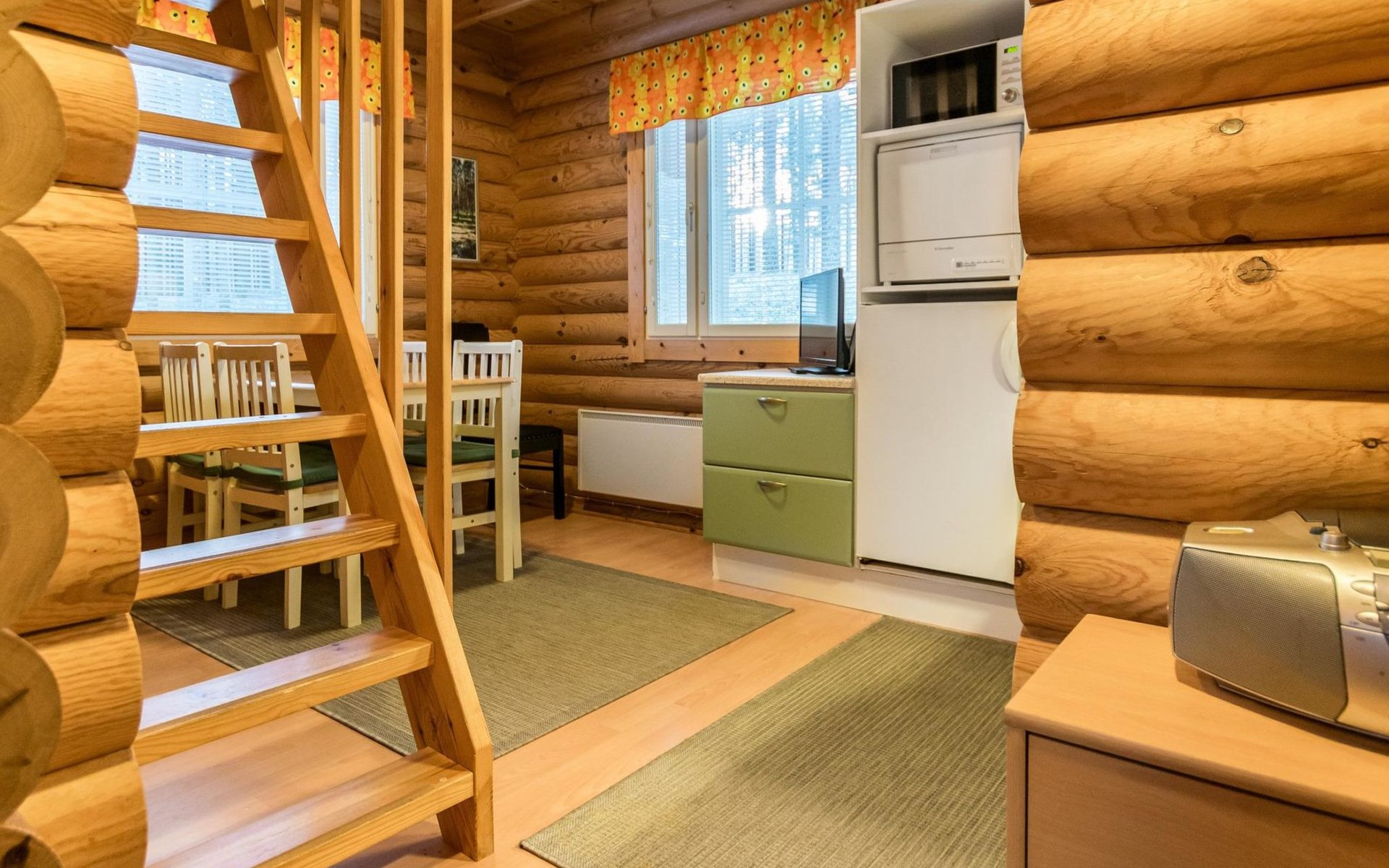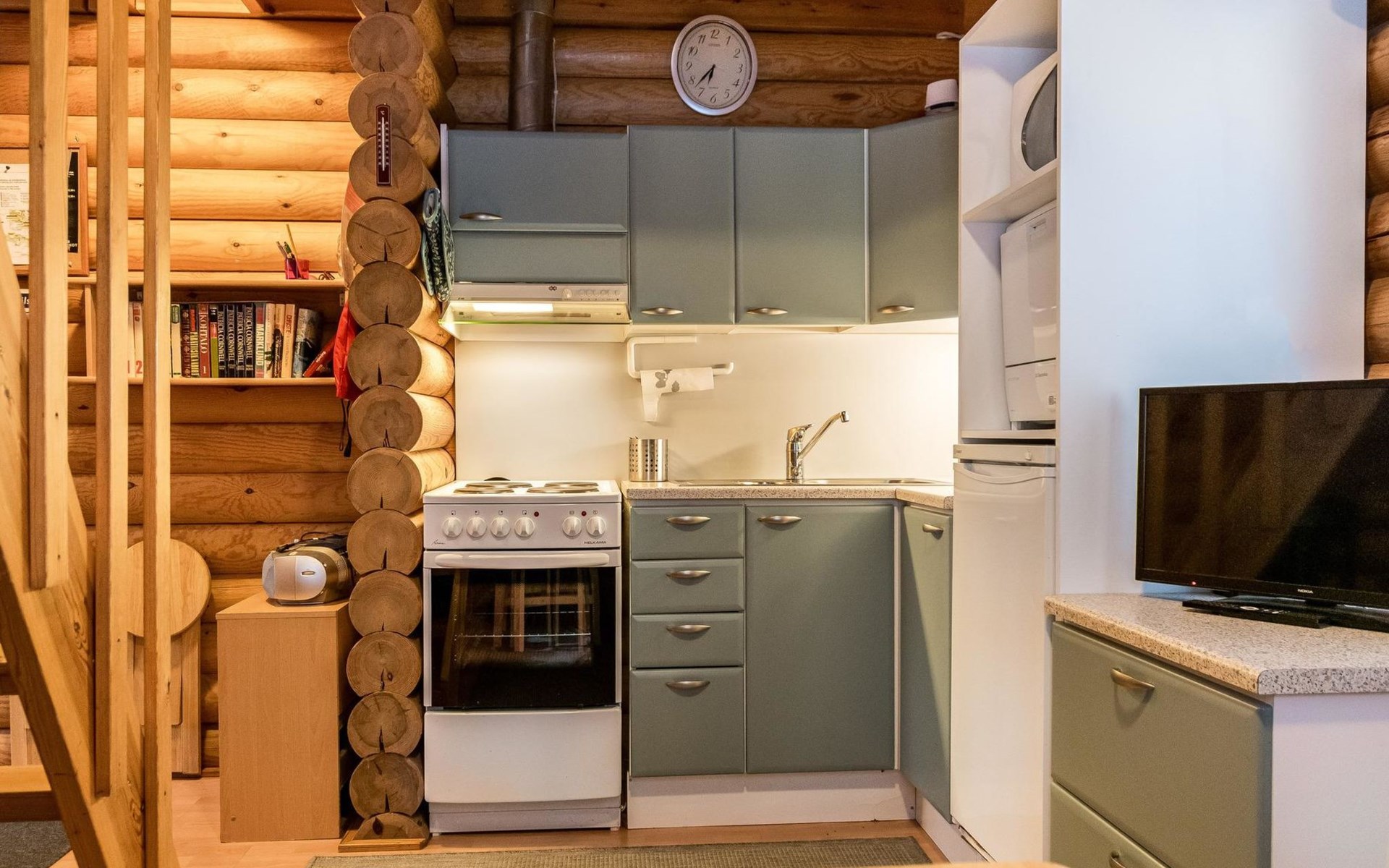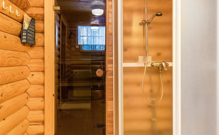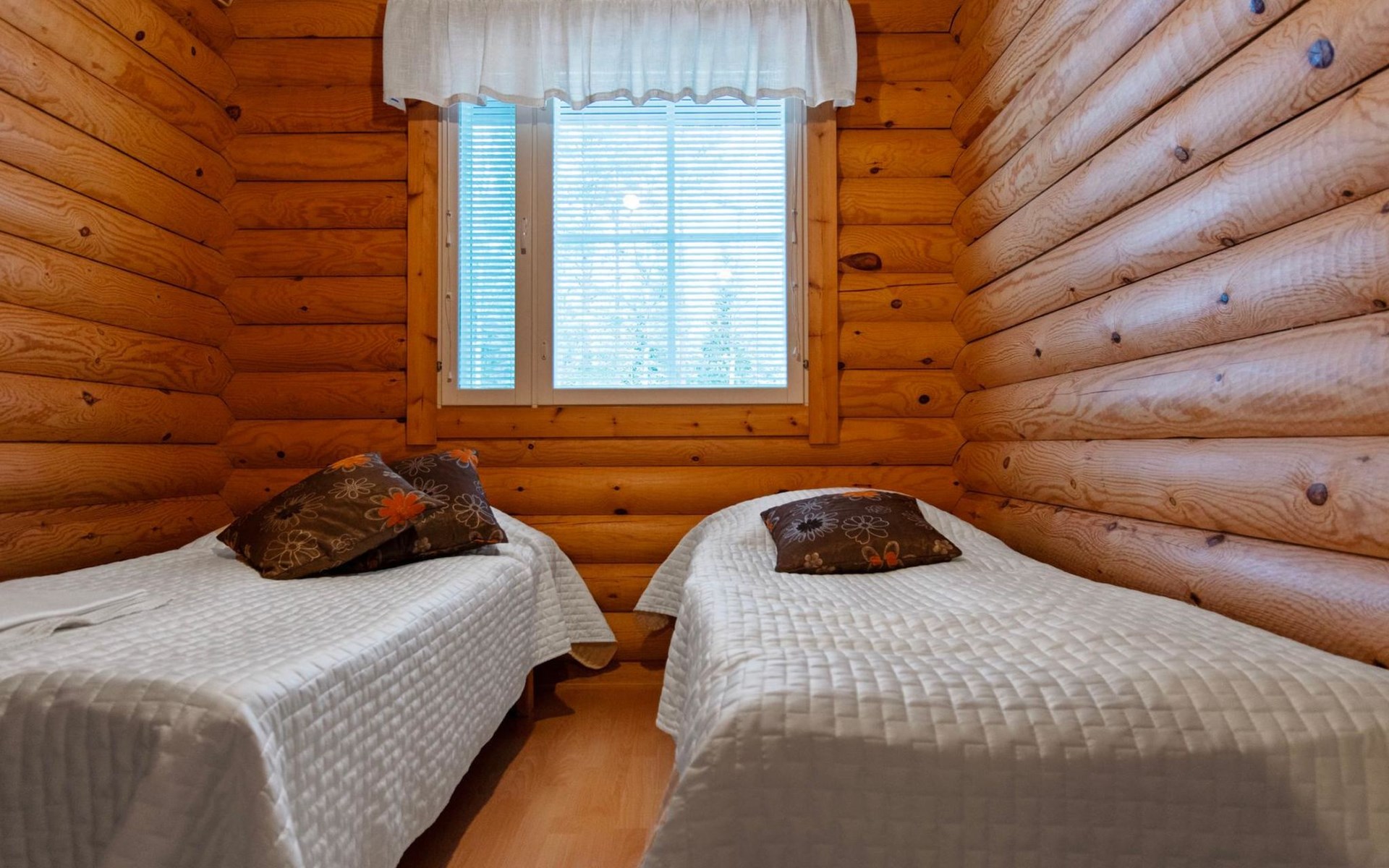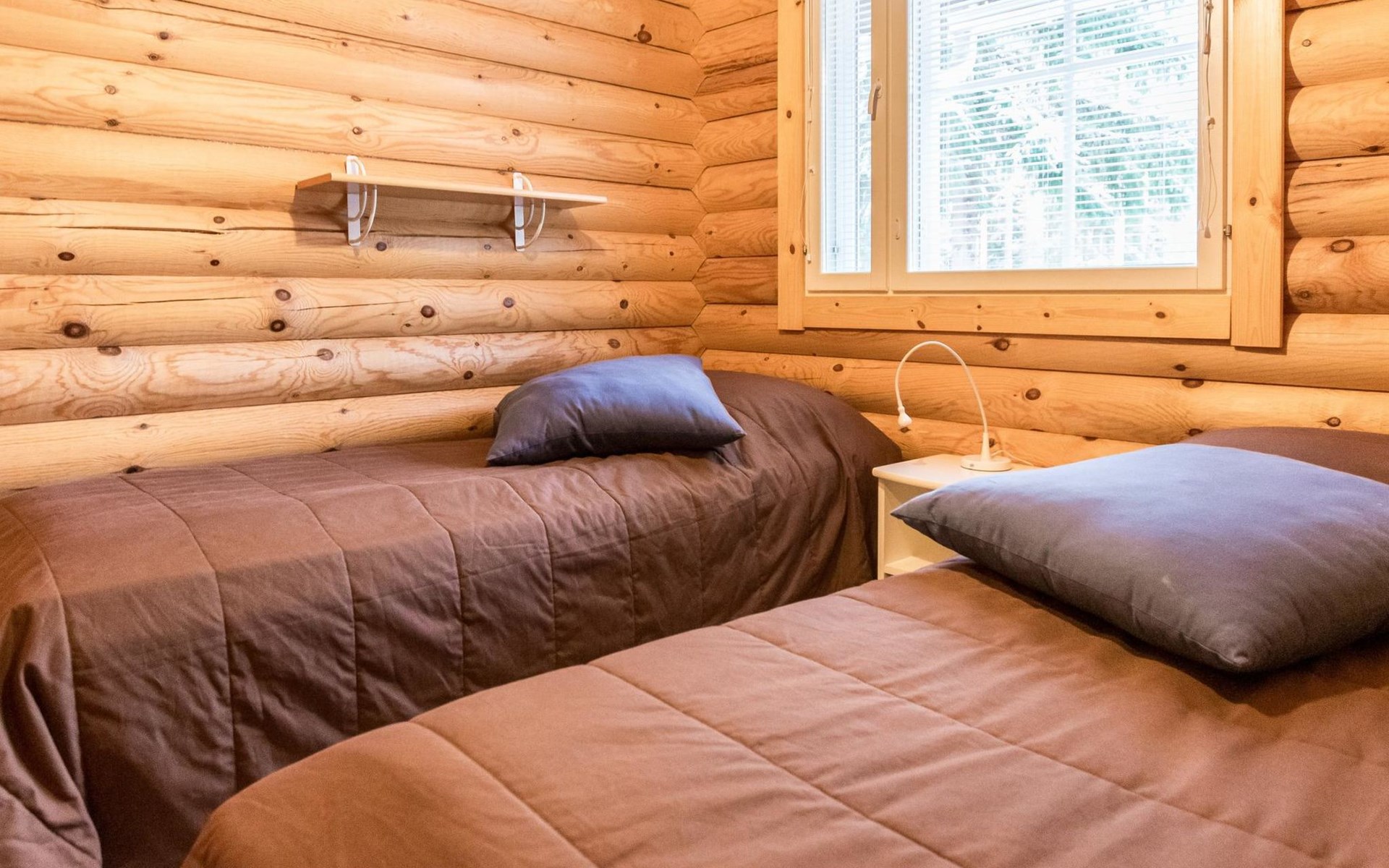 Orvokki apartment 78 m² (middle): a cozy apartment for 5 people on two levels. The ground floor has a living room with kitchen, bedroom, bathroom / toilet and sauna. The loft also has a living area and beds for three. The soapstone fireplace downstairs creates a cozy atmosphere. The downstairs bedroom has 2 beds, the loft has 3 beds and a cot.
