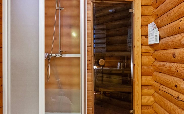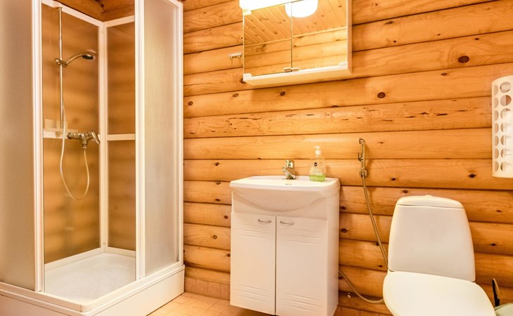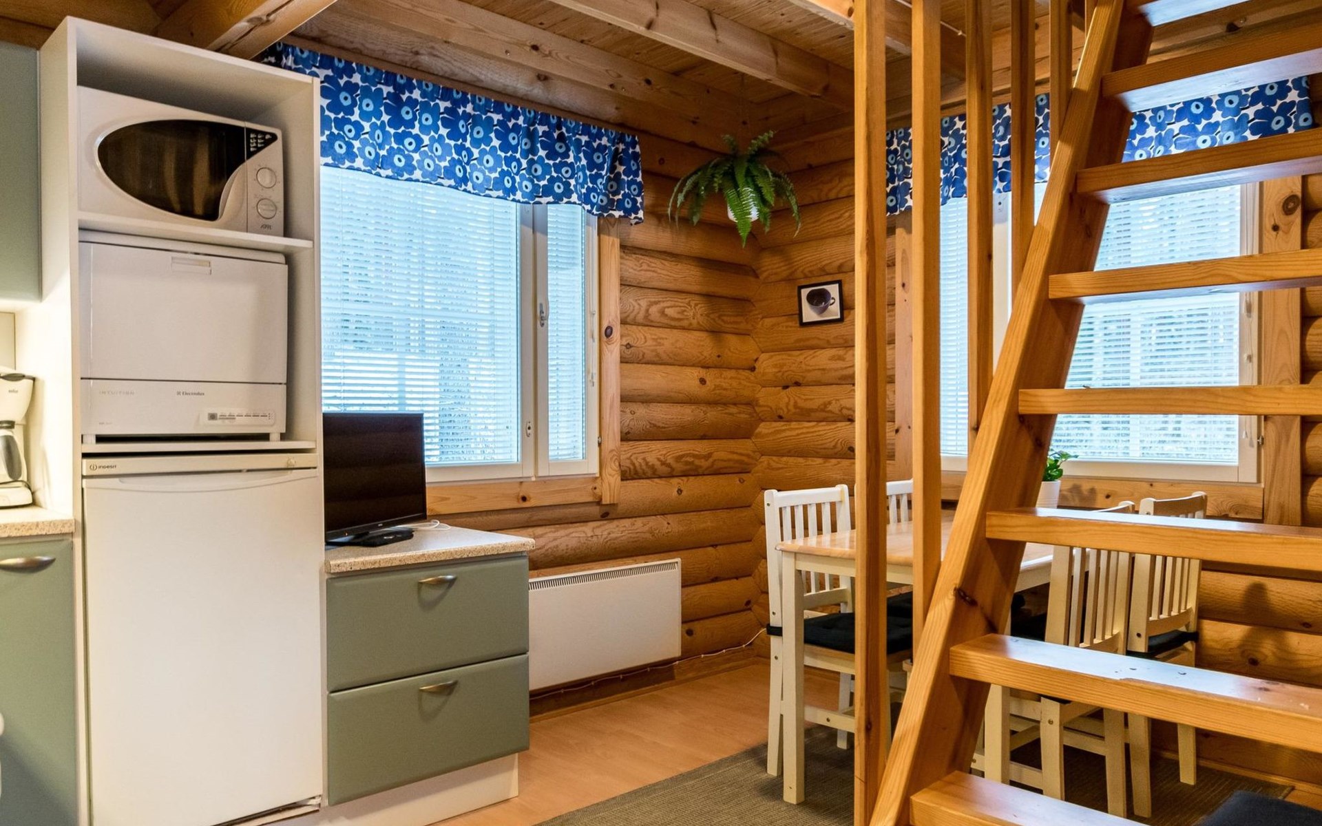 Pauliina and Karoliina apartments 66 m² per apartment, at the ends of the building: cozy 5-person apartments on two levels. The ground floor of both apartments has a living room with kitchen, bedroom (2 beds), bathroom / toilet and sauna. The loft of both apartments has living and sleeping areas (3 beds).