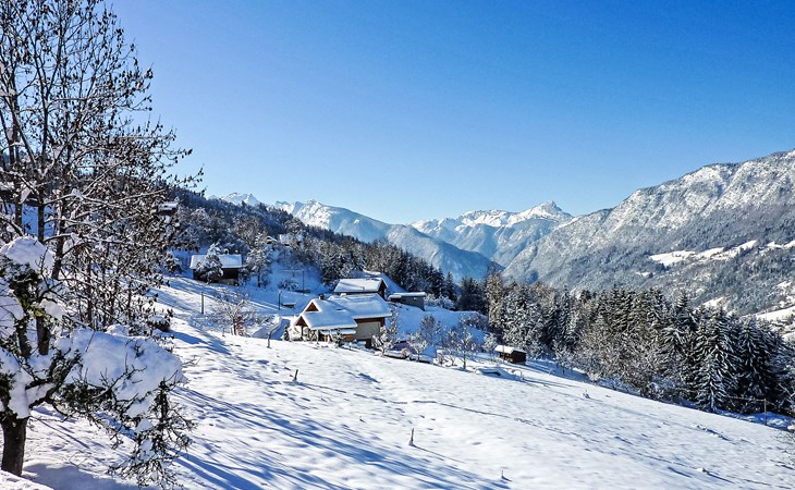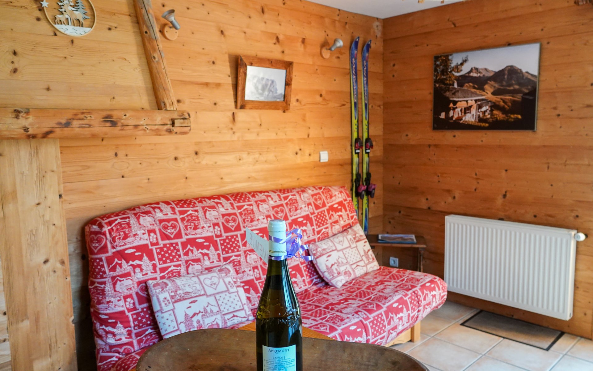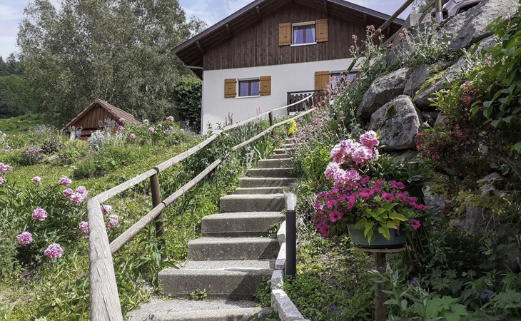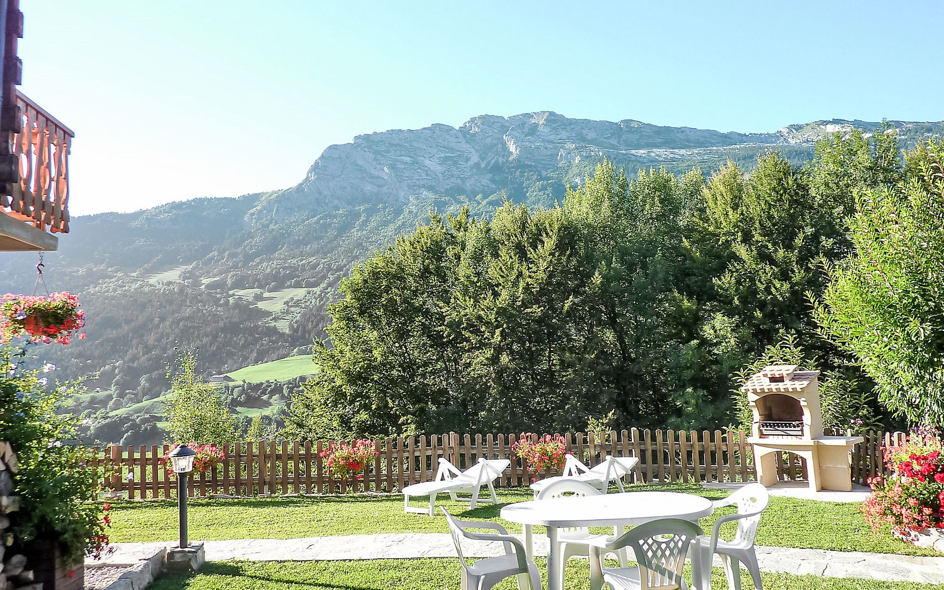Villards sur Thônes 7 km from Grand Bornand/Clusaz: Chalet "Namasté". Outside the resort, 2 km from the centre, in a quiet, sunny position. In Winter: please take snow chains. (20 steps). Parking at the house. Supermarket 1 km, restaurant 2 km, bar 2 km, bus stop "La clairiere" 6 km. Golf course (18 hole) 20 km, slopes 7 km. Nearby attractions: Thônes centre ville 4.6 km, Saint Jean de Sixt centre ville 3.5 km, Crêt 2 station de ski 2.8 km, Aiglons station de ski 3.5 km, Crêt du Merle station de ski 4.1 km, Crête Blanche station de ski 4.2 km. Well-known ski regions can easily be reached: Grand-Bornand 7 km, la Clusaz 7 km. Well-known lakes can easily be reached: Lac d'Annecy 20 km. Hiking paths: les Aravis 100 m. Please note: car recommended. The owner lives in the same residence.
