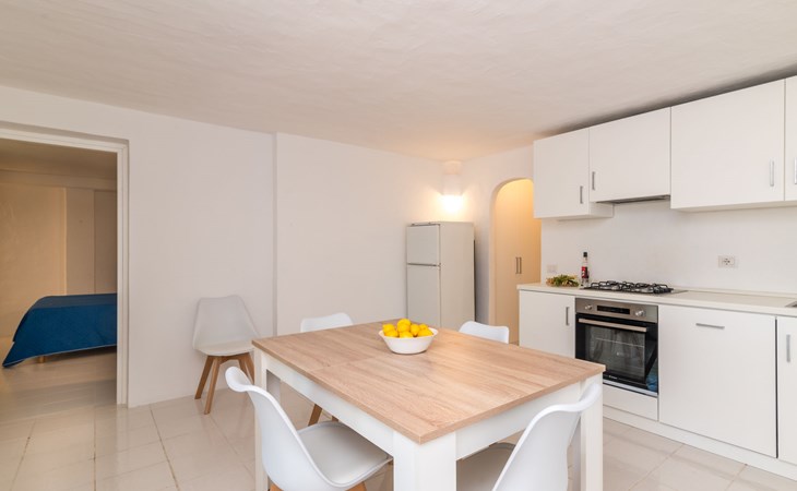 Cosy, comfortable 3-family house "Li Mucchi Bianchi", 2 storeys. 1.5 km from the centre of Baja Sardinia, in the residential district, 1 km from the sea, in a cul-de-sac. 60 m long narrow motor access to the house. Parking on the premises. Supermarket 1 km, restaurant 1 km, bar 1 km, bus stop 2 km, sandy beach "Baja Sardinia" 1 km. Nearby attractions: Aquapark Aquadream 750 m, Porto Cervo 6 km, Cannigione 10 km, Arzachena 13 km, San Pantaleo 13 km. Please note: car recommended. Animals in the neighbourhood.