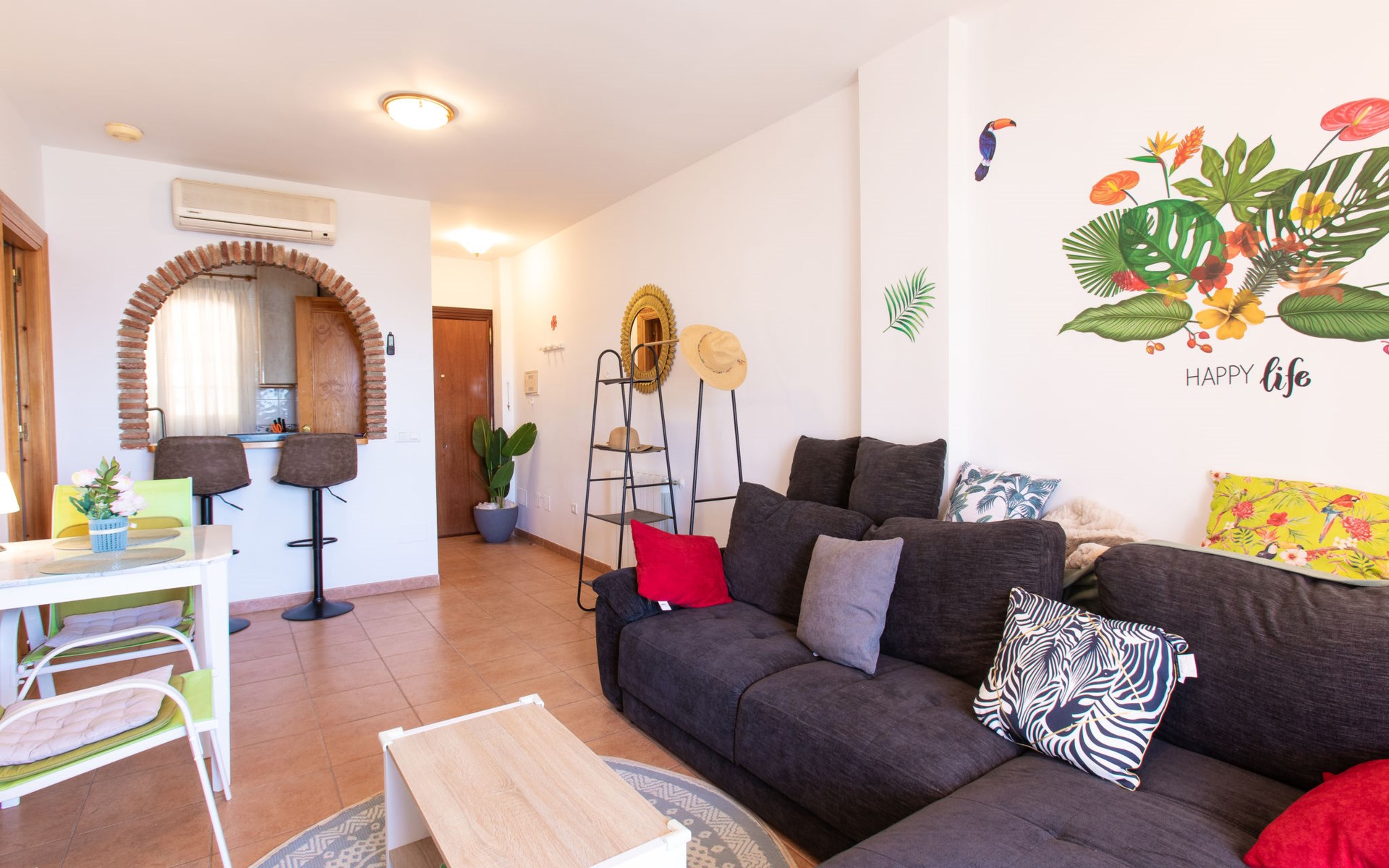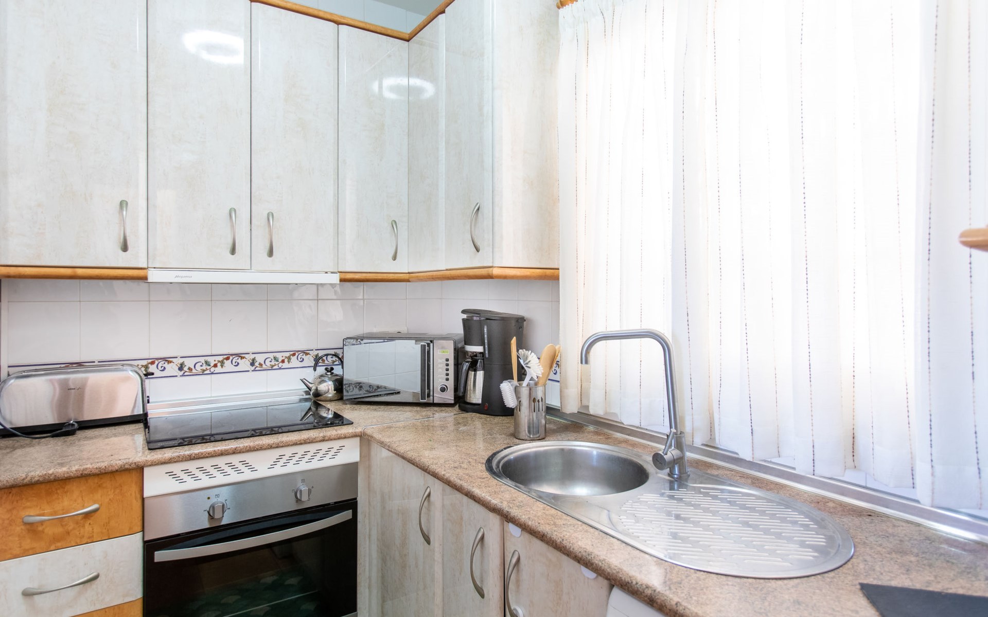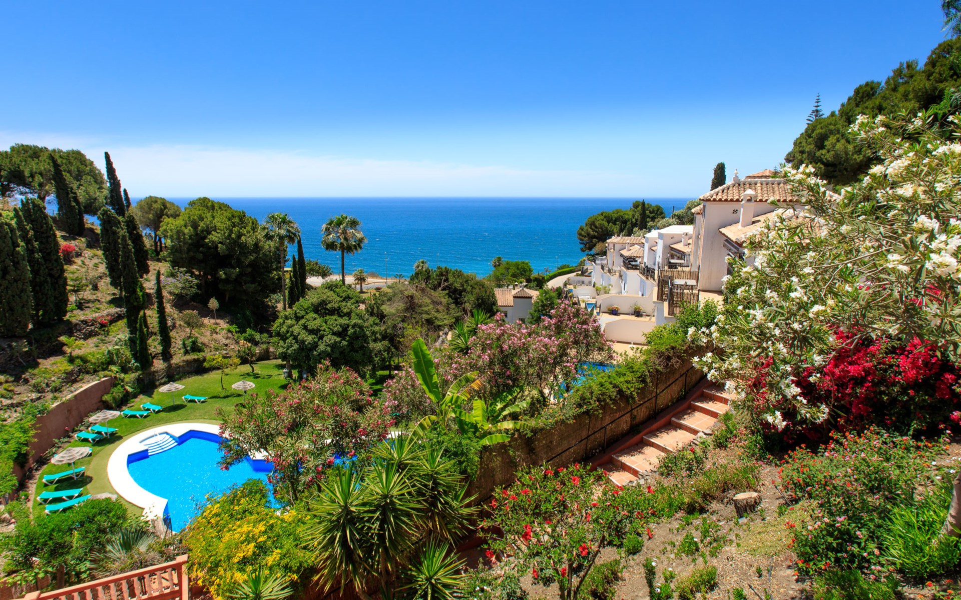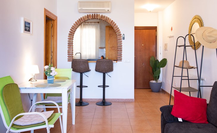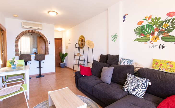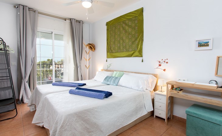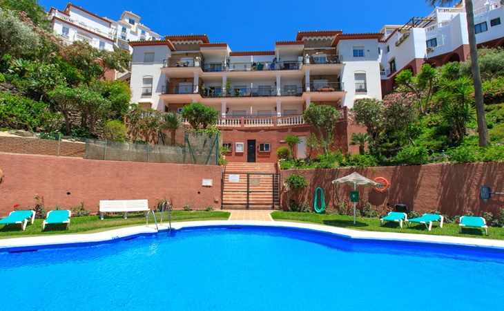Apartment block "Ladera del Mar". Outside the resort, 3.5 km from the centre, 500 m from the sea, from the beach. For shared use: garden, swimming pool secured (depth 100 - 180 cm, seasonal availability: 01.Apr. - 31.Oct.). Shower/WC in the pool area, patio. In the house: restaurant, bar. Shop 500 m, shopping centre 25 km, restaurant 500 m, bakery 500 m, bus stop 300 m, railway station "Málaga" 50 km, pebble beach "El Playazo". Sports harbour 19 km, golf course (18 hole) 20 km, surf school 19 km. Nearby attractions: Frigiliana, Malaga, Granada, La Herradura, Almuñecar, Maro. Well-known ski regions can easily be reached: Sierra Nevada. Hiking paths: Sierra Tejeda, Sierra Almijara. Please note: suitable for families, baby equipment (included). Groups of teenagers on request only. On request: airport transfer to the holiday accommodation. The owner does not accept any youth groups. Neighbourhood highly sensitive to noise. Quietness and good behaviour expected.