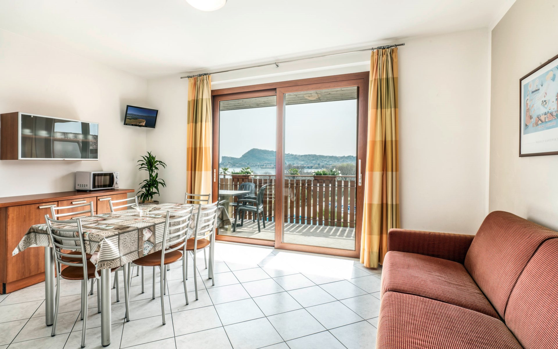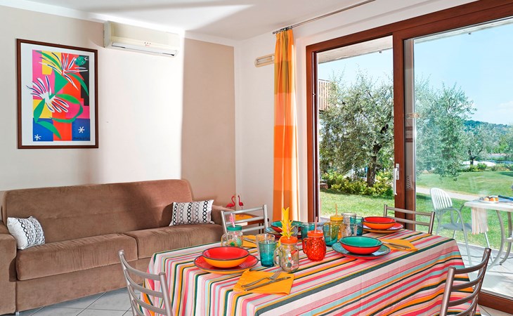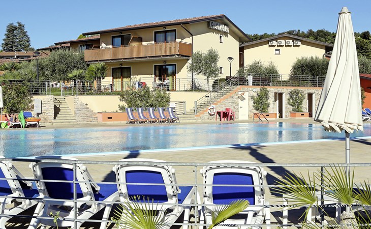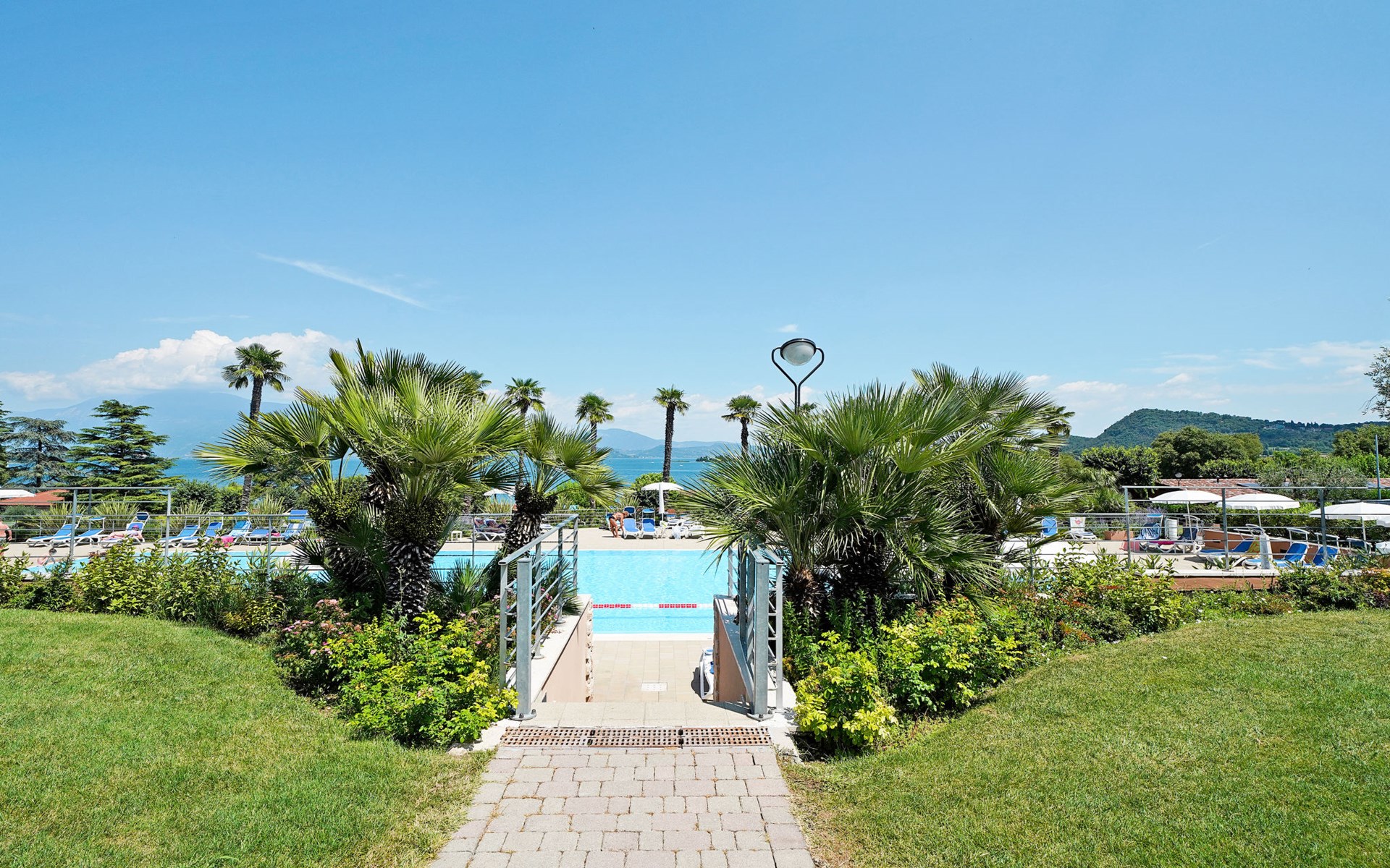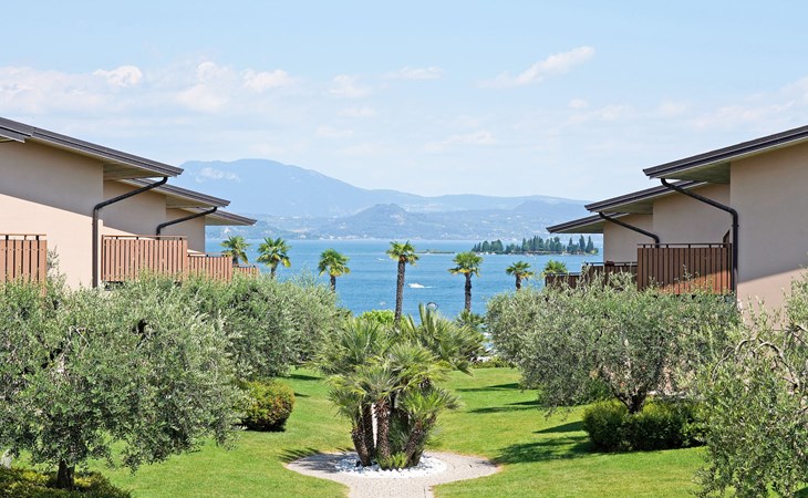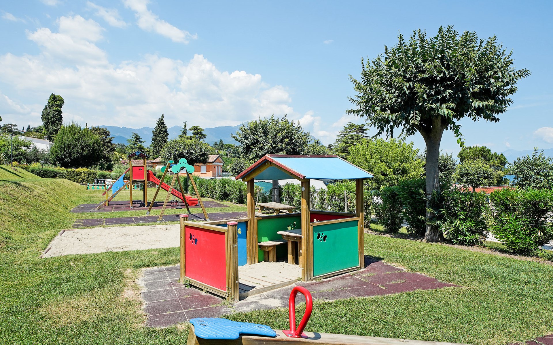 Modern resort "Onda Blu", 2 storeys. 32 houses in the resort. 80 apartments in the residence. On the outskirts, 800 m from the centre of Pieve di Manerba, 200 m from the lake, 200 m from the beach, direct access to the beach. For shared use: property 30'000 m2 (fenced), well-kept terraced garden lawn and trees, swimming pool (25 x 10 m, seasonal availability: 01.Jan. - 31.Dec.). WC in the pool area, children's pool, outdoor shower, children's playground. In the complex: reception, restaurant, bar, WiFi (extra). Table tennis (extra). Washing machine (for shared use, extra), bicycle rental. Breakfast and half board possible on request (extra). Parking (limited number of spaces) on the premises. E-charging station. Shop 800 m, bus stop 230 m, railway station "Desenzano del Garda" 16 km, pebble beach 200 m. Golf course (27 hole) 6 km. Nearby attractions: Porto Torchio 2 km, Manerba del Garda 3 km, Salò 9 km, Desenzano 14 km, Brescia 40 km. Please note: suitable for families. Private mooring (extra) on request.